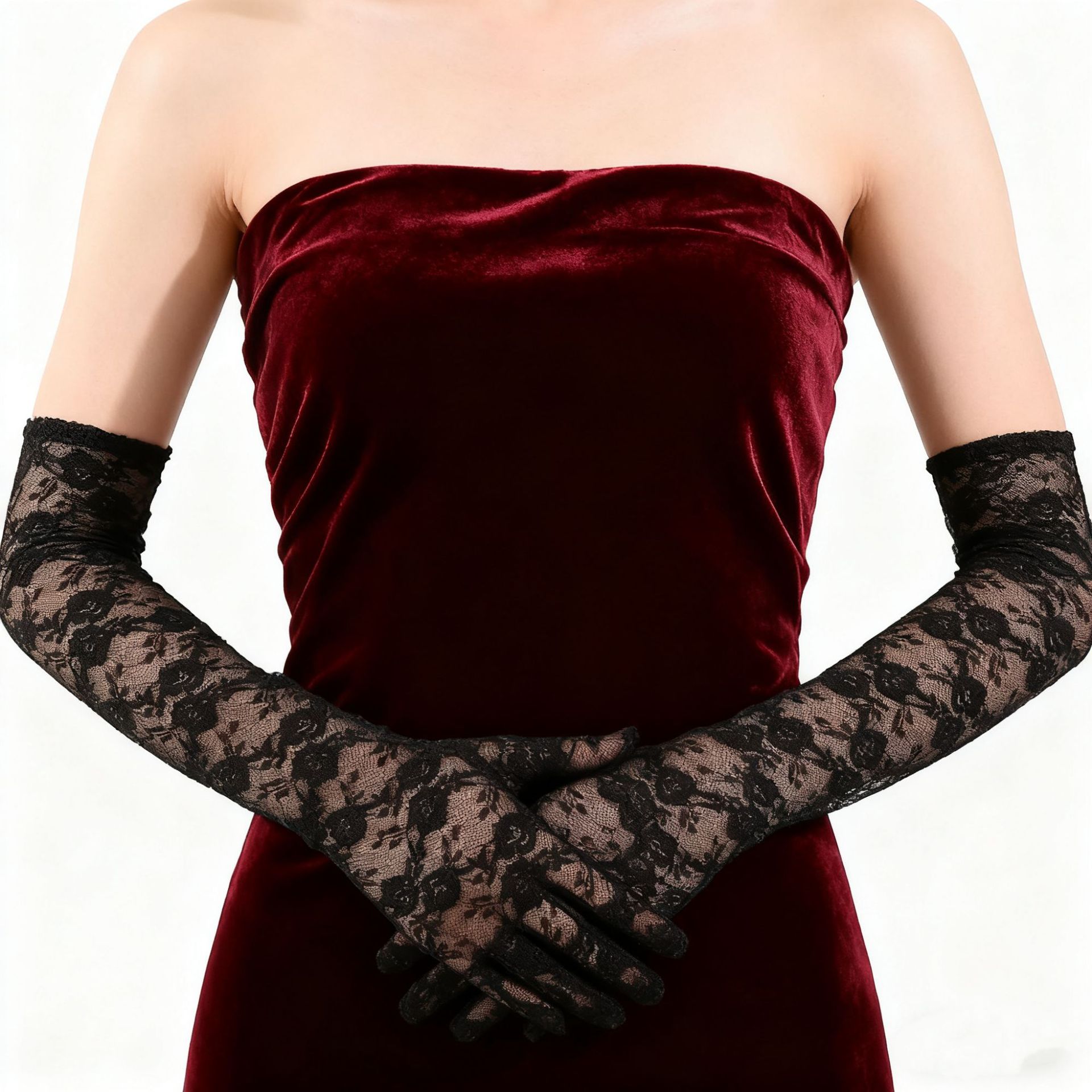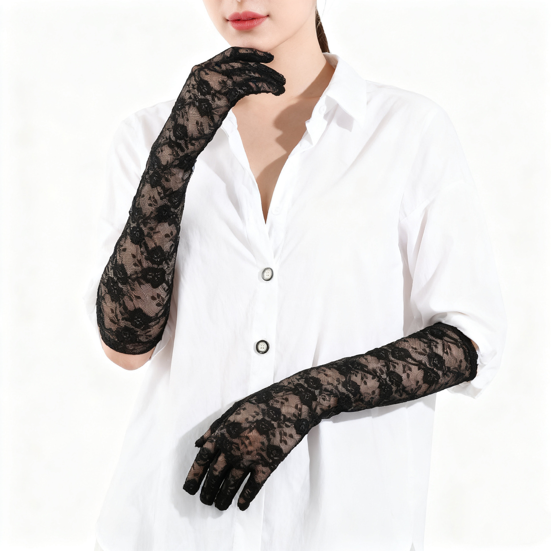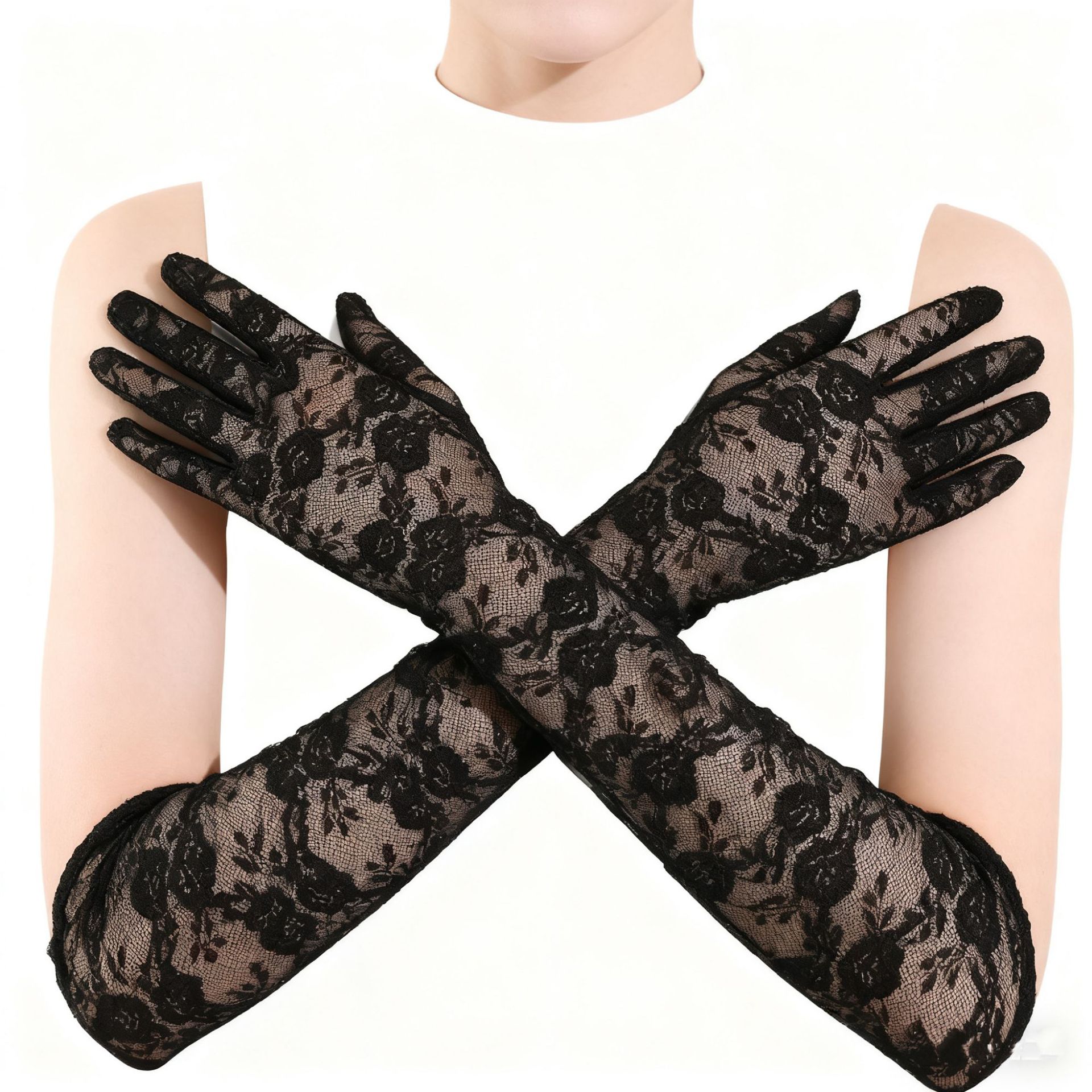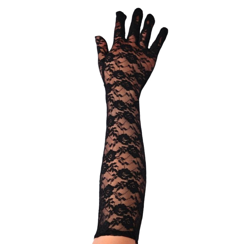 蕾丝小花朵中长款手套春夏薄款全指防晒开车骑行手套女