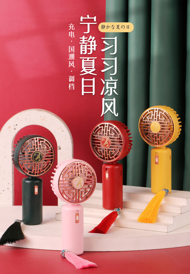 国潮便携式手持小风扇迷你usb充电带灯光ins口袋风扇免费激光logo