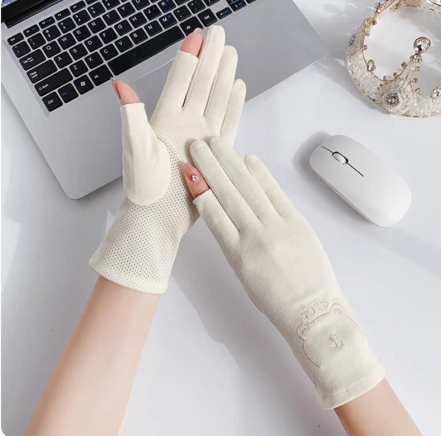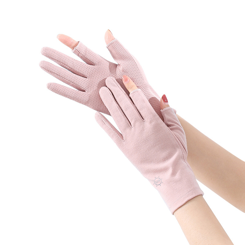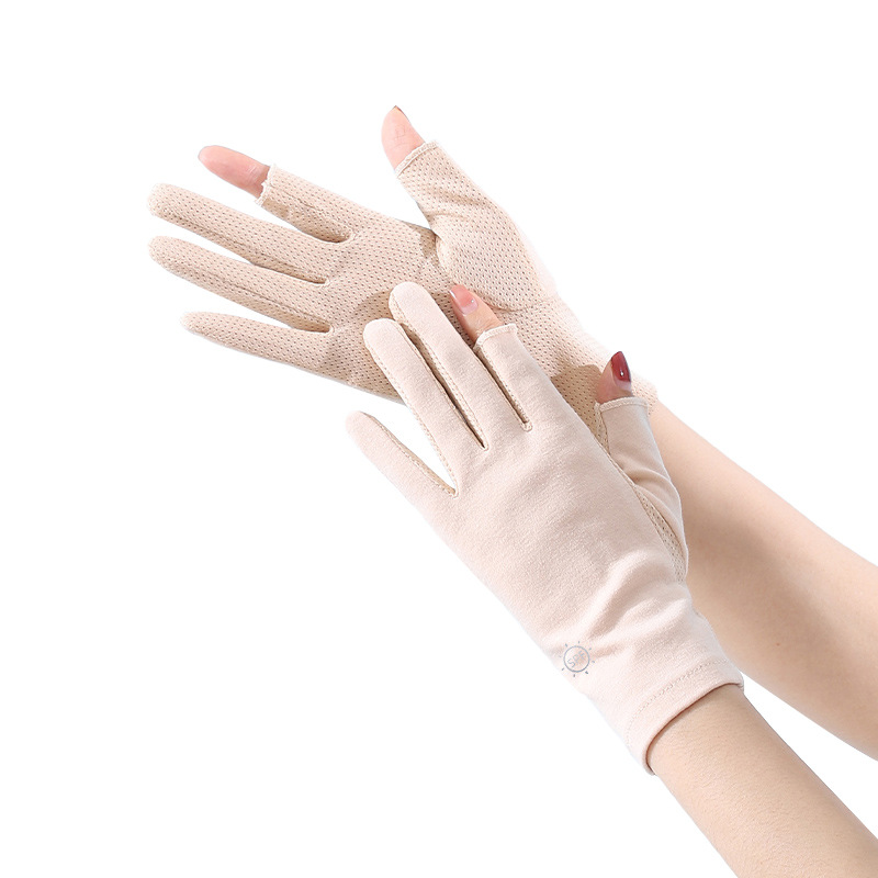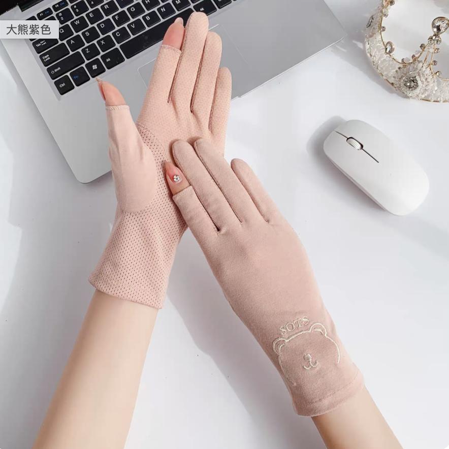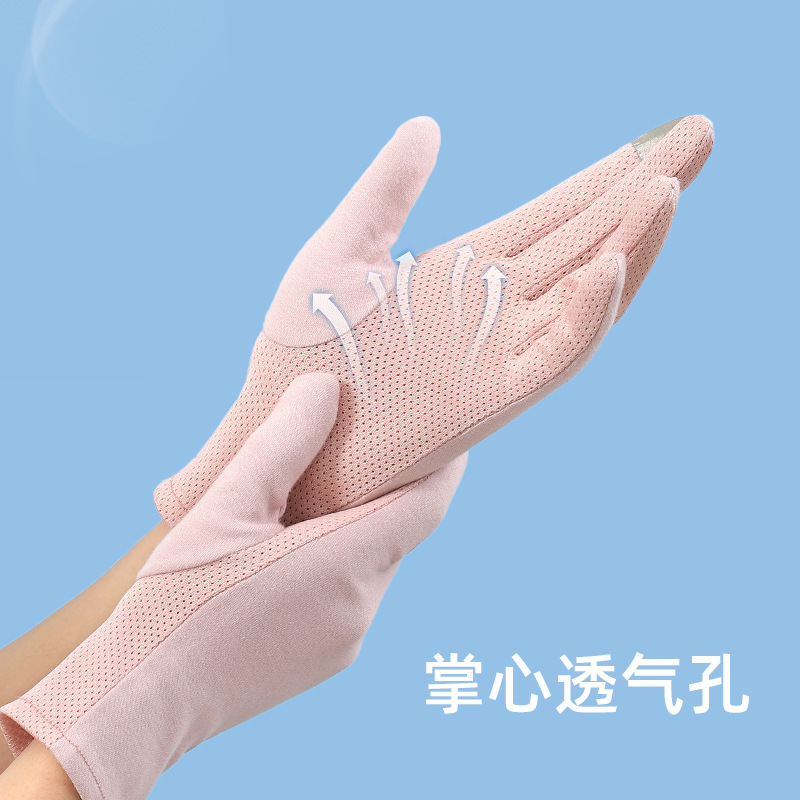 夏季户外女生防紫外线棉布手套防滑触屏干活春夏女士骑行防晒手套