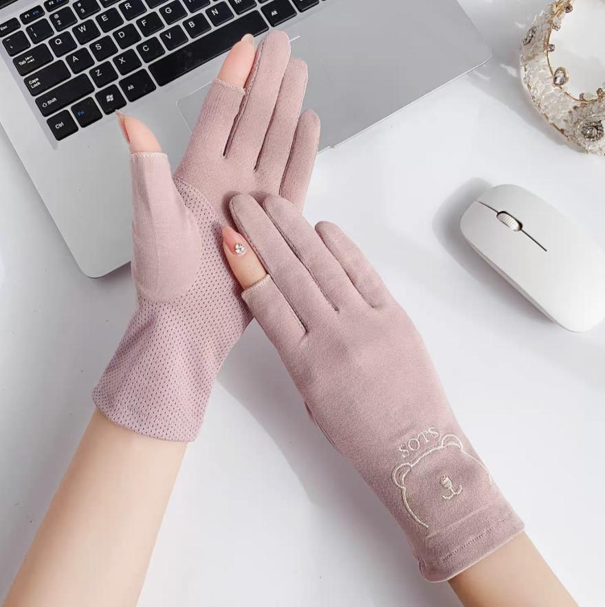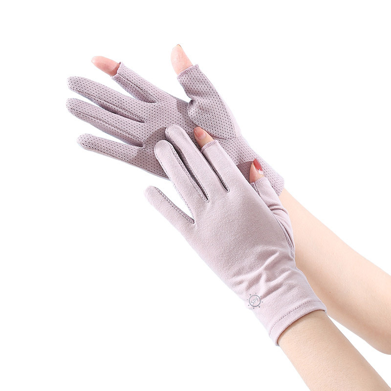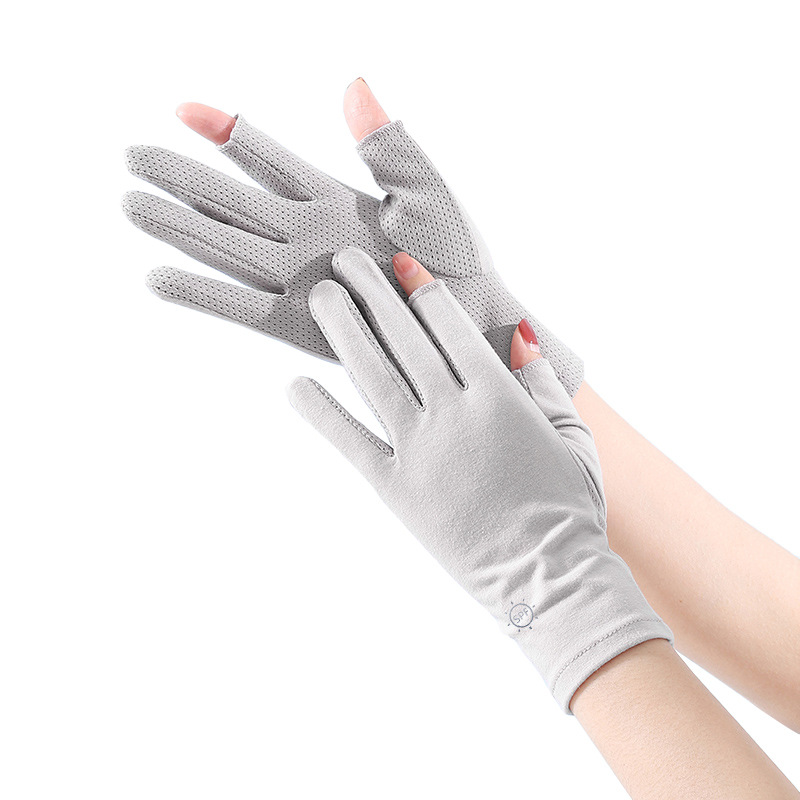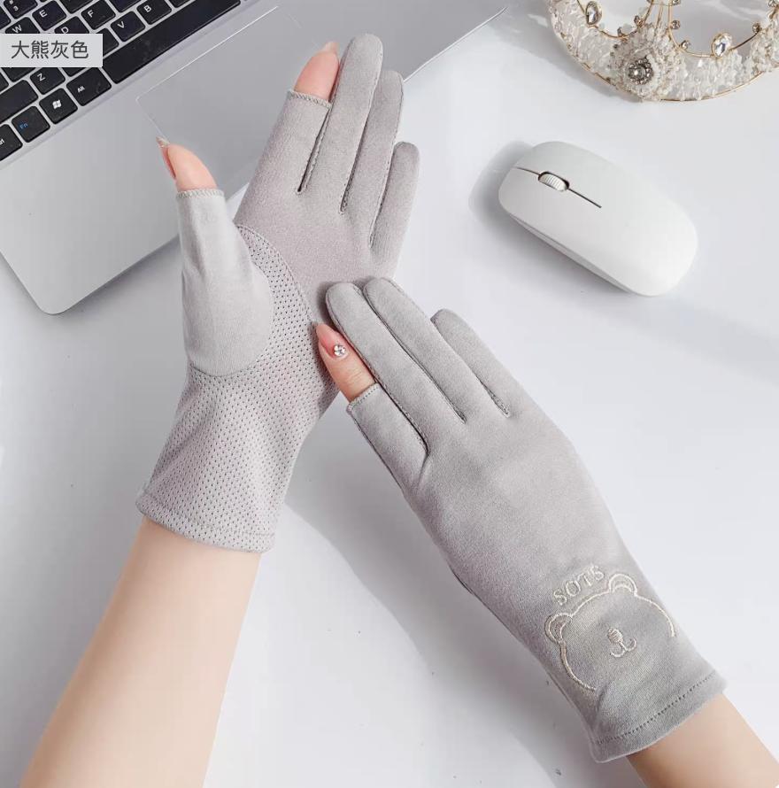 夏季户外女生防紫外线棉布手套防滑触屏干活春夏女士骑行防晒手套