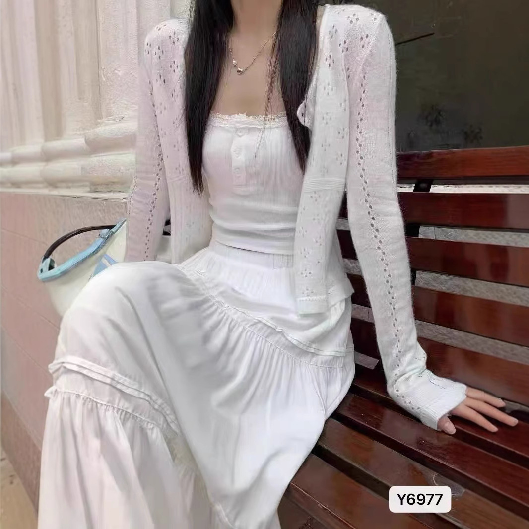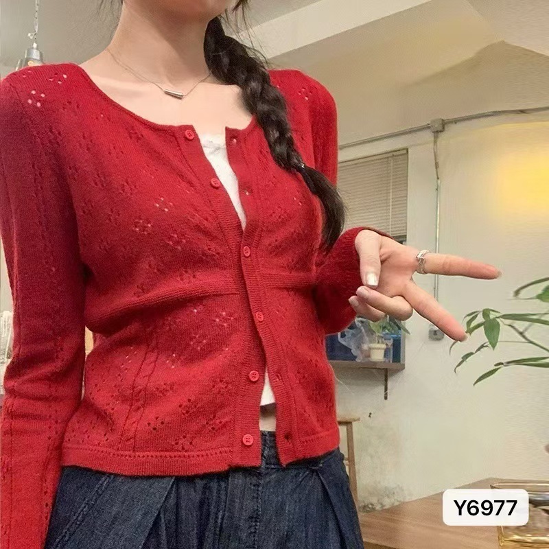 镂空短款长袖针织开衫女2025夏季新款设计感薄款显瘦防晒长袖上衣