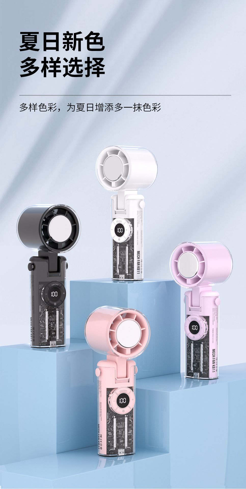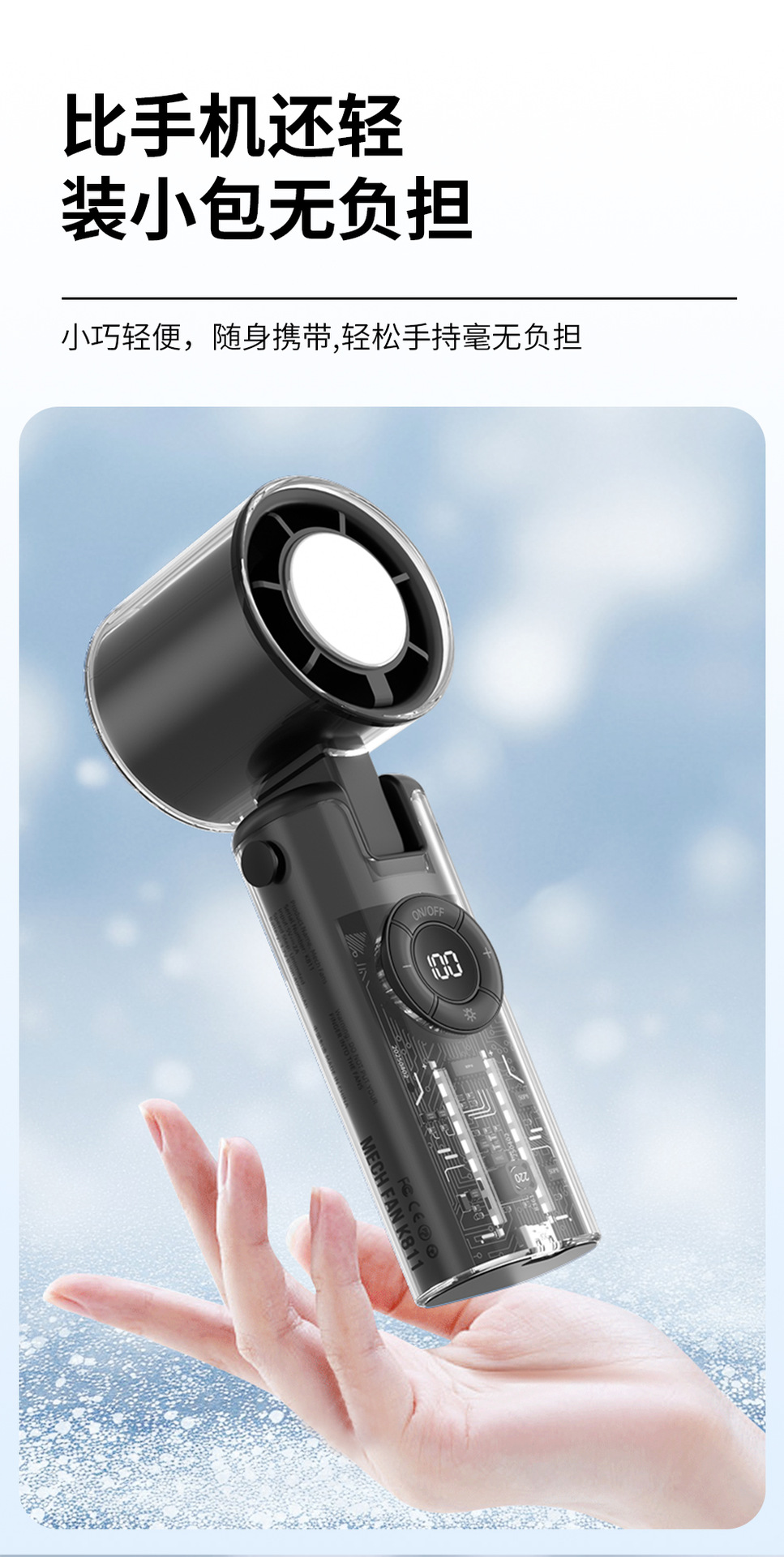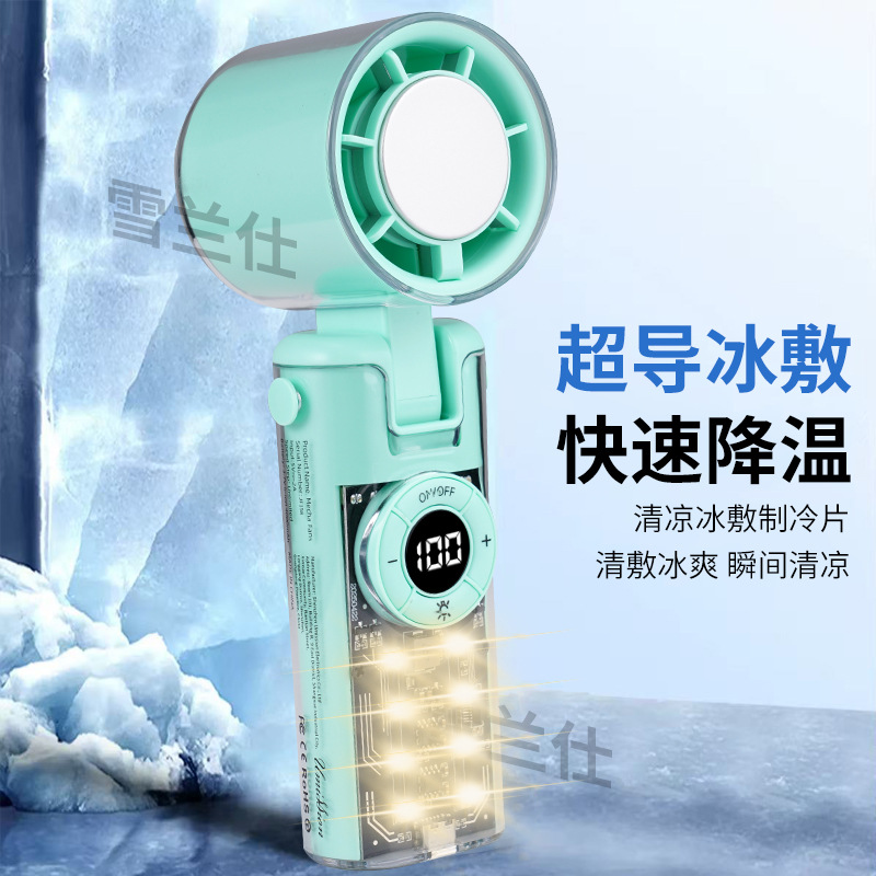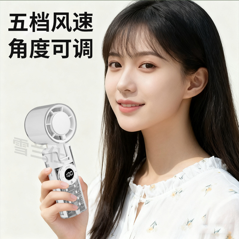 2025新款跨境手持风扇制冷风扇便携手持小风扇机甲风透明高速风扇