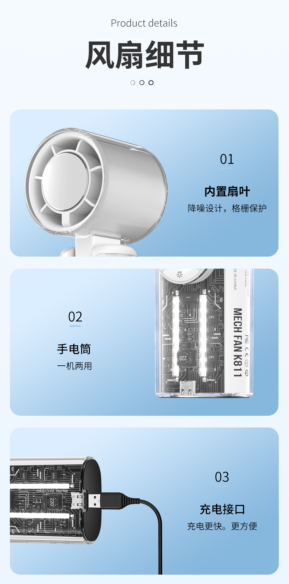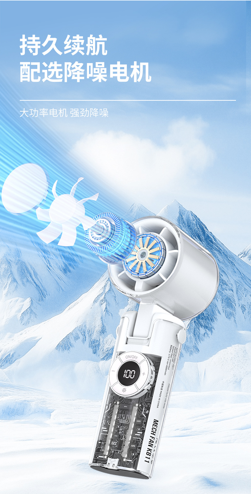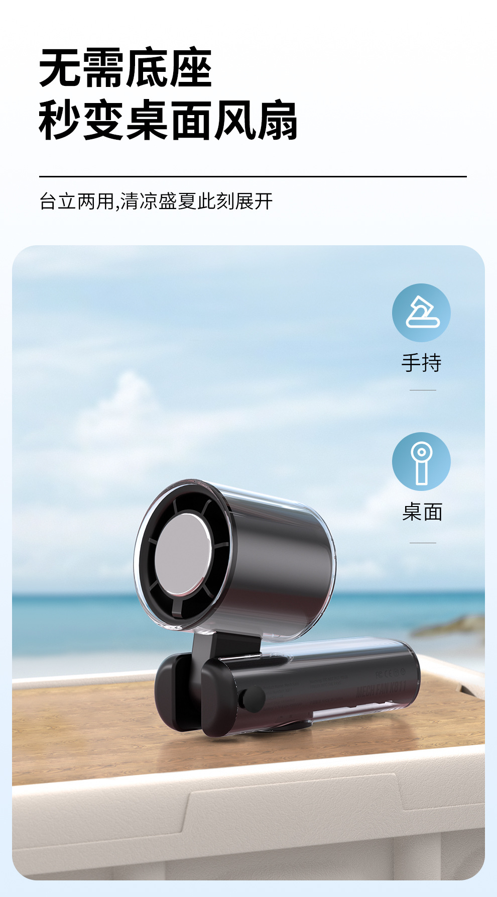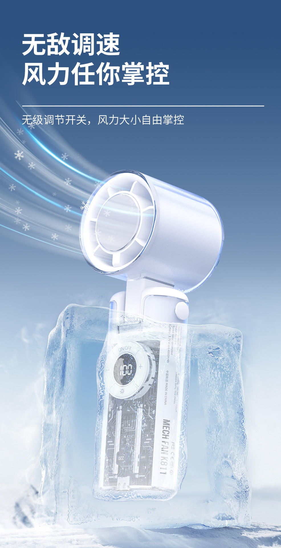 2025新款跨境手持风扇制冷风扇便携手持小风扇机甲风透明高速风扇