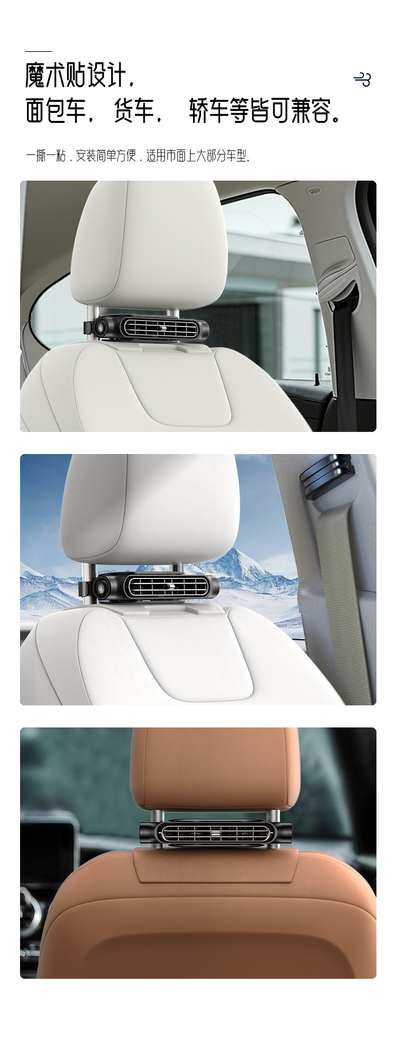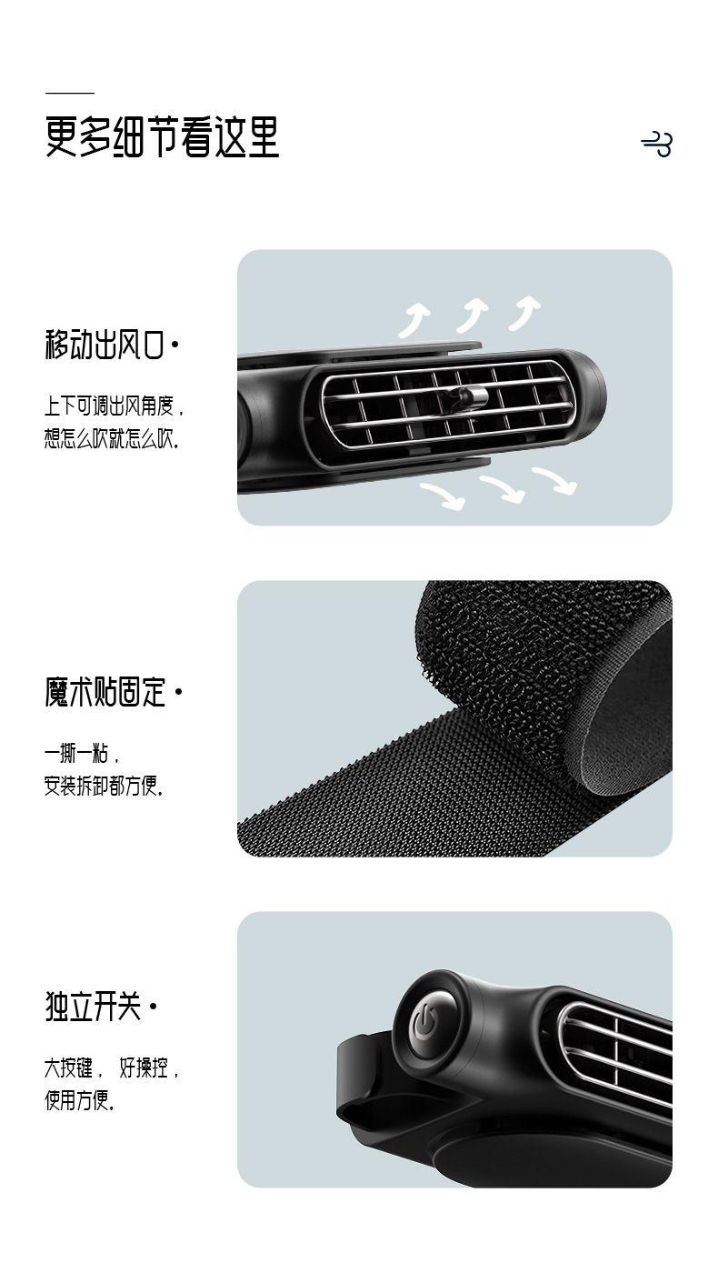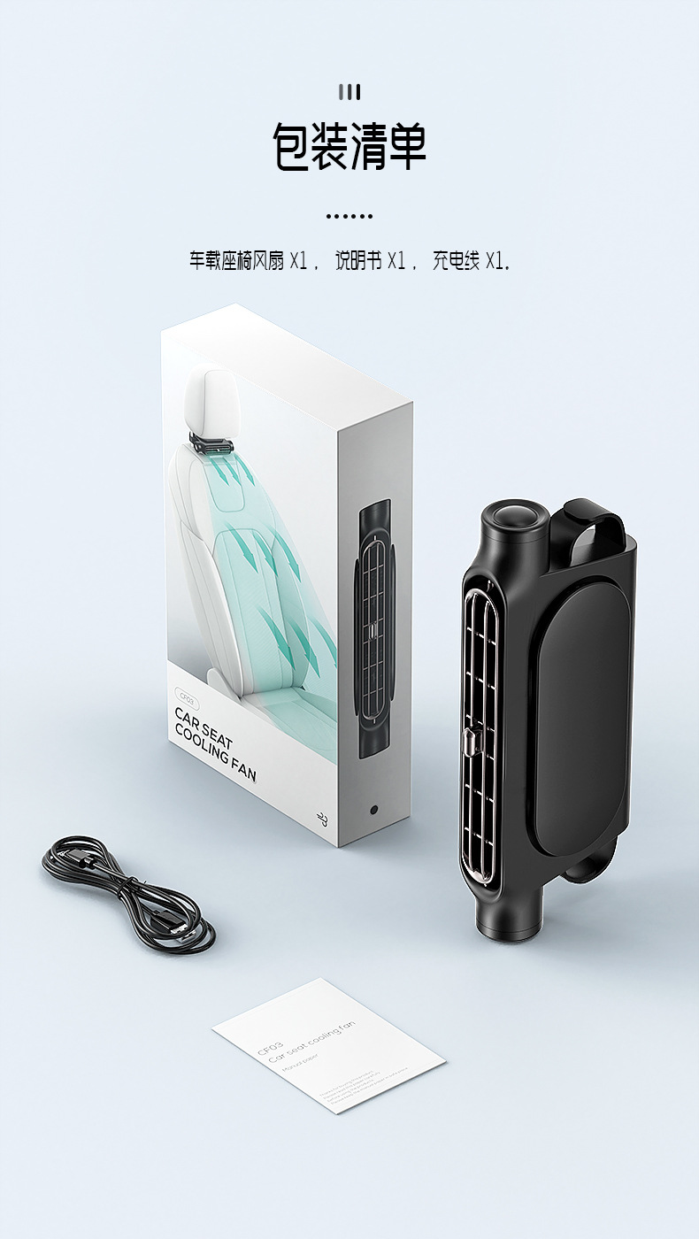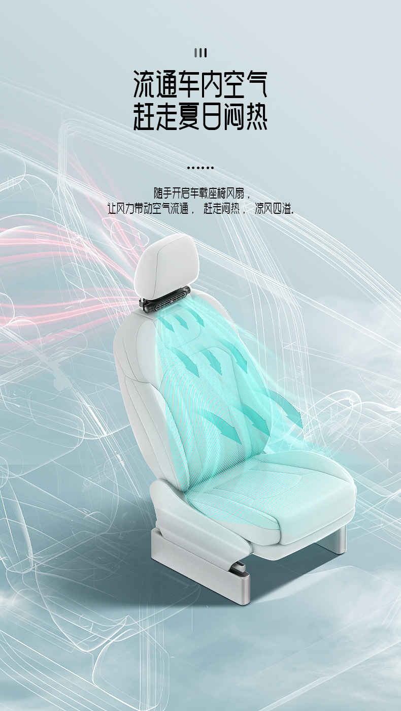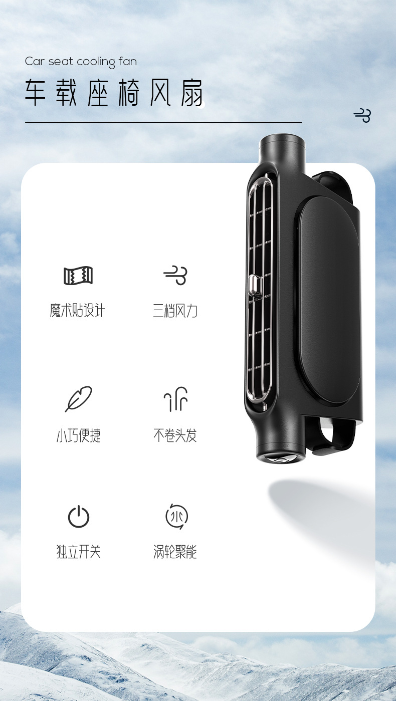 新款车载座椅风扇后背劲爽 涡轮大风力USB插电车用后背枕汽车风扇