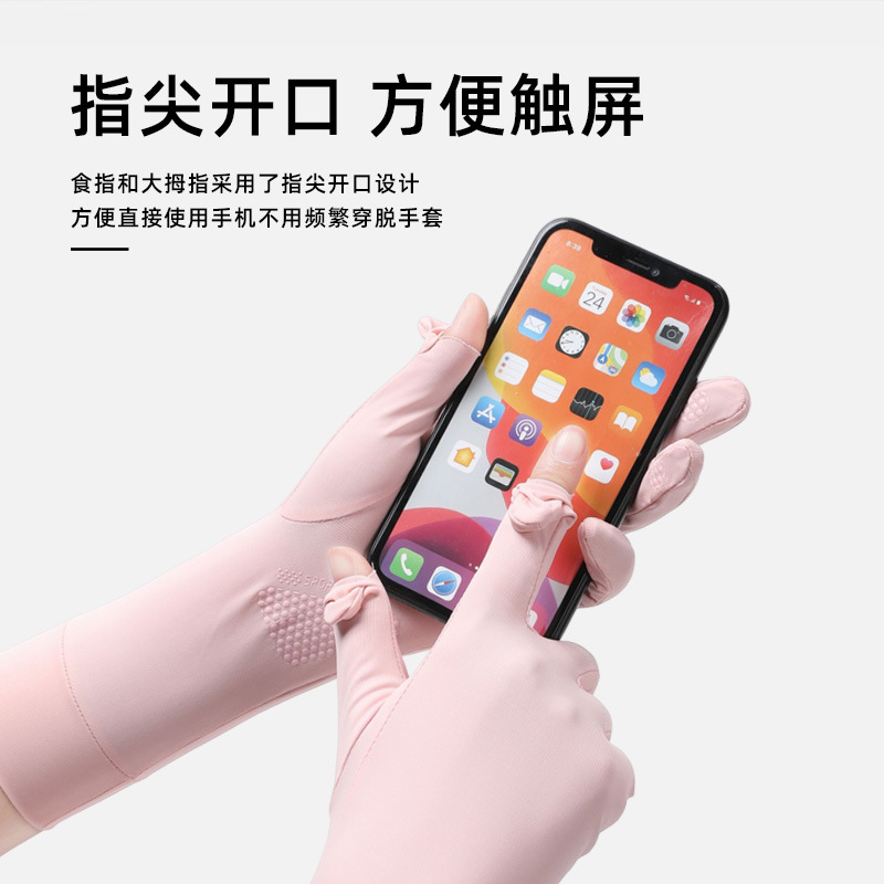 新款冰丝防晒手套薄款露指触屏手套夏季透气防晒手套户外骑行手套