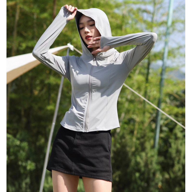 防晒衣女夏季连帽修身冰丝薄款开衫外套女防紫外线瑜伽防晒服