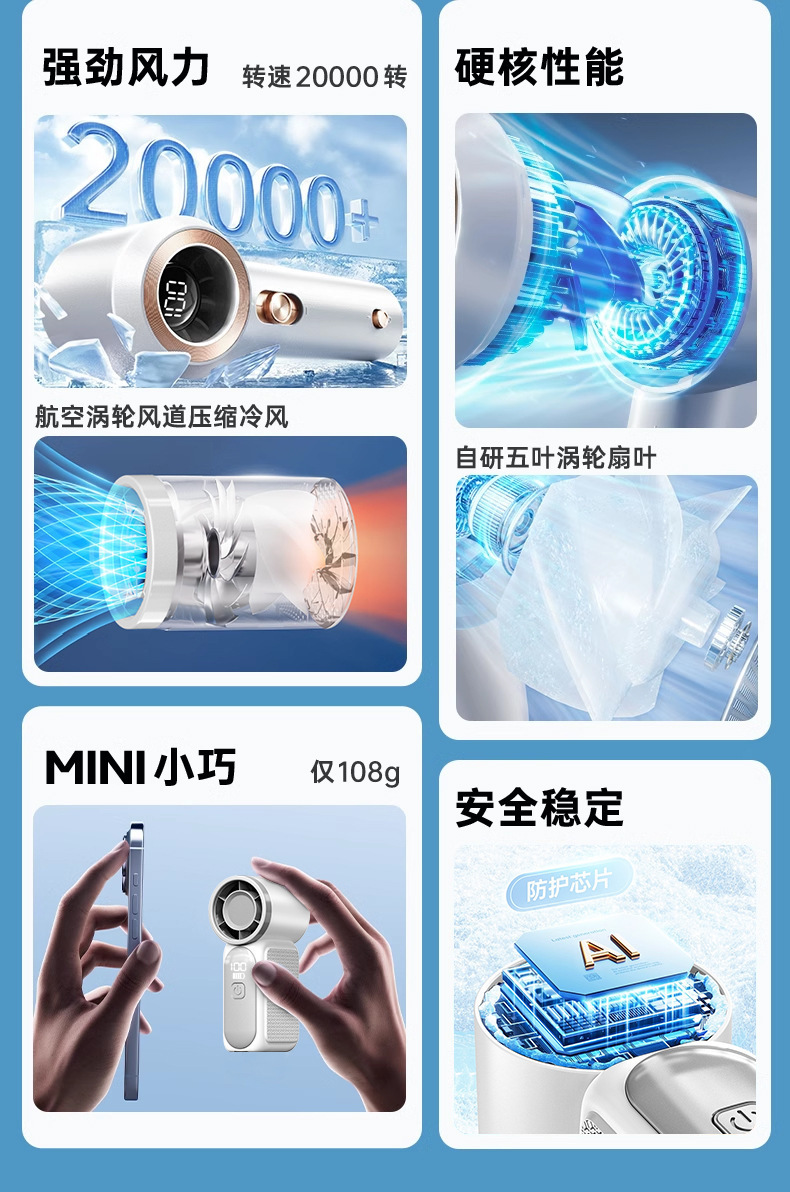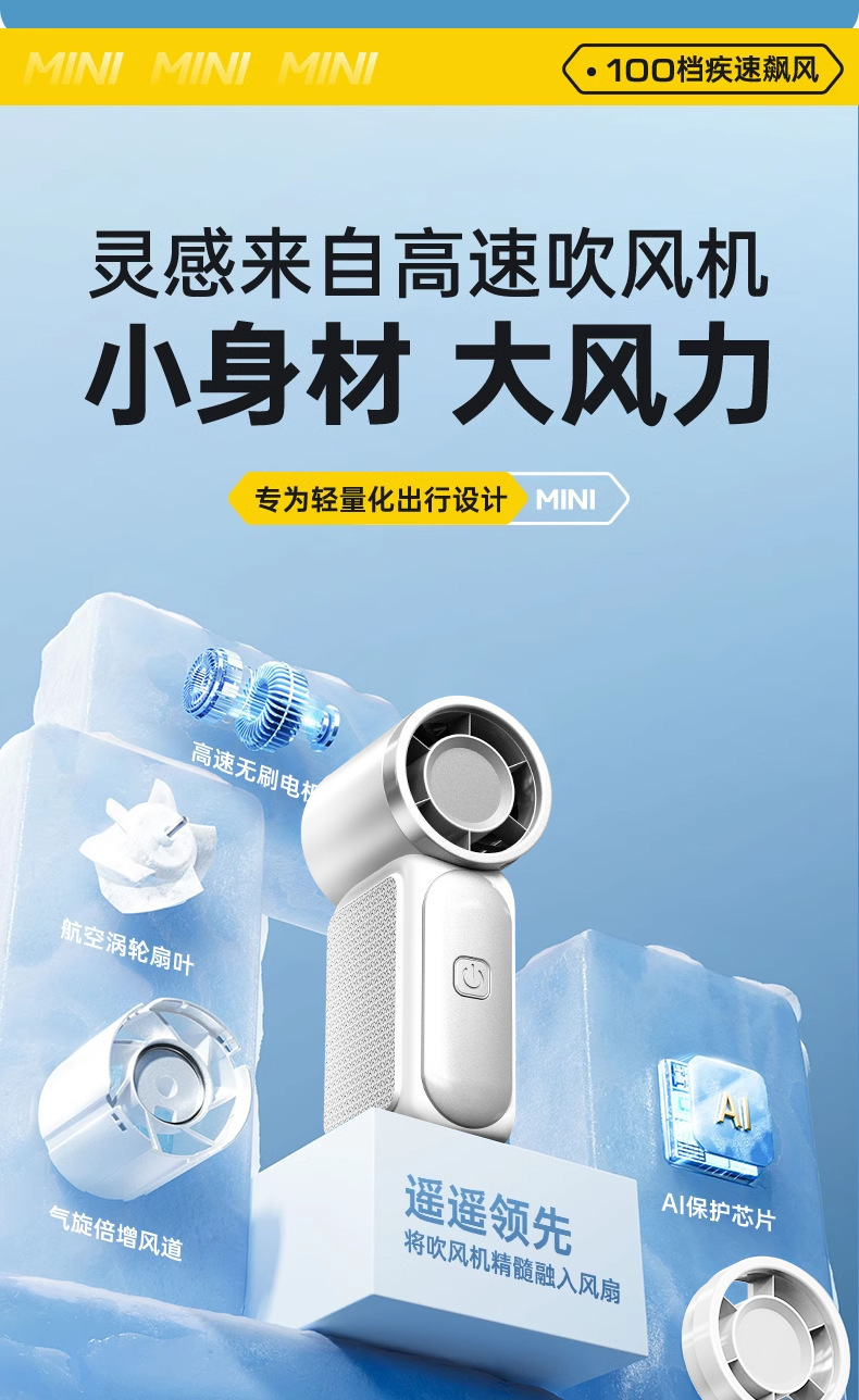 迷你手持口袋风扇 usb充电小风扇大风力小型便携高速小风炮跨境