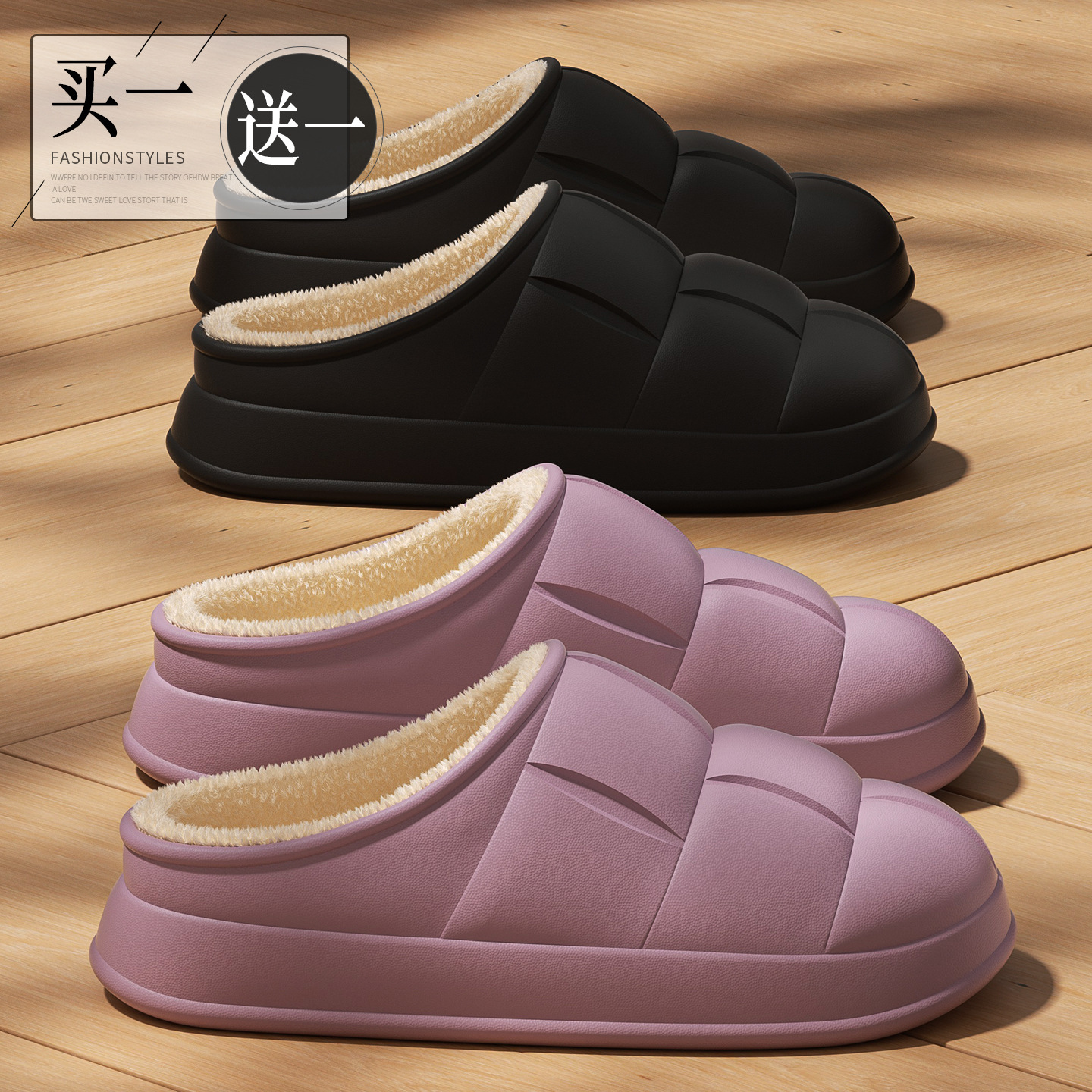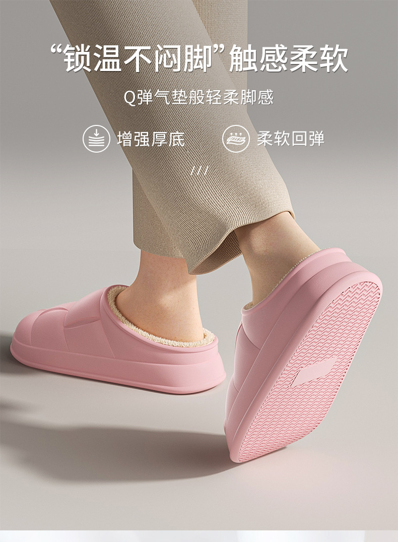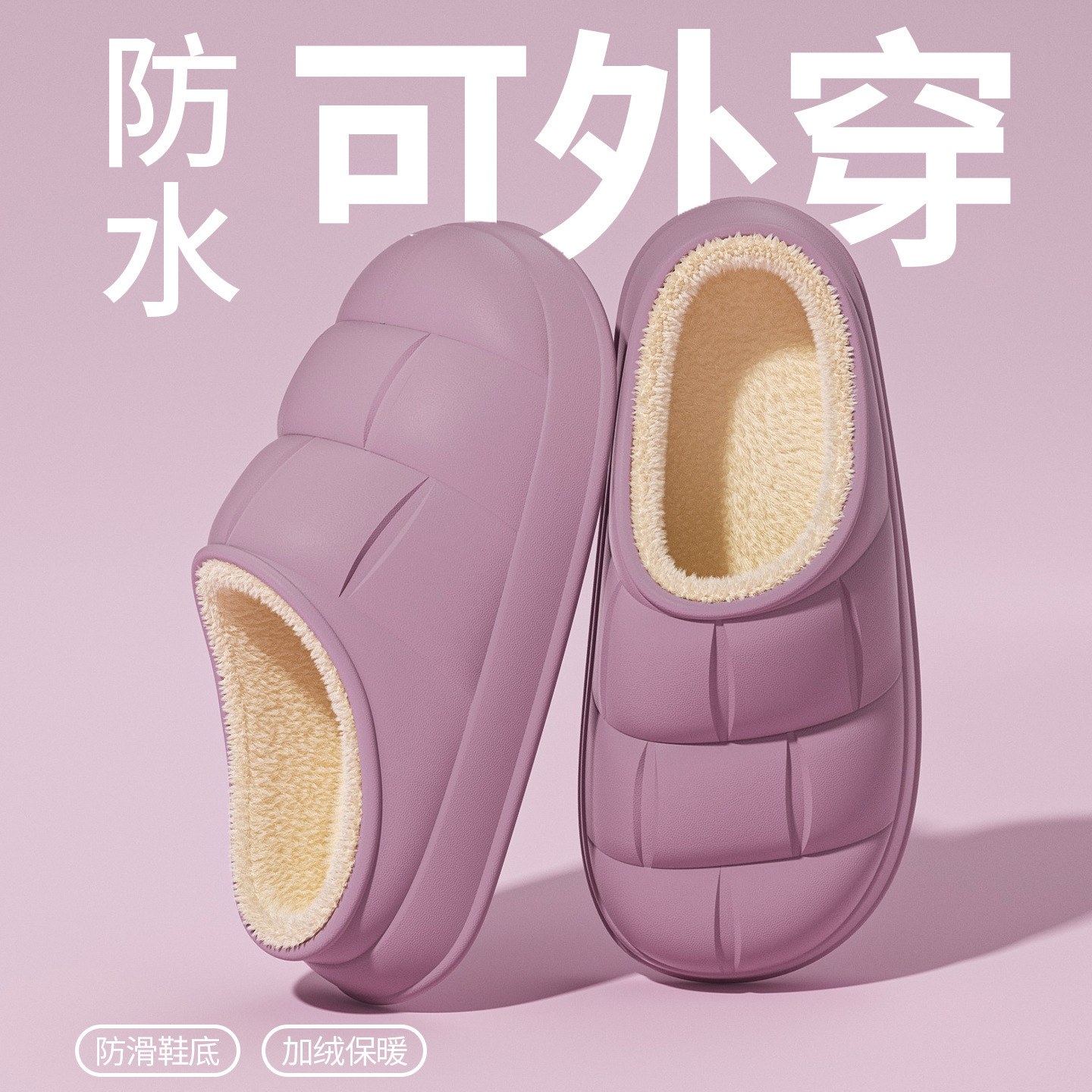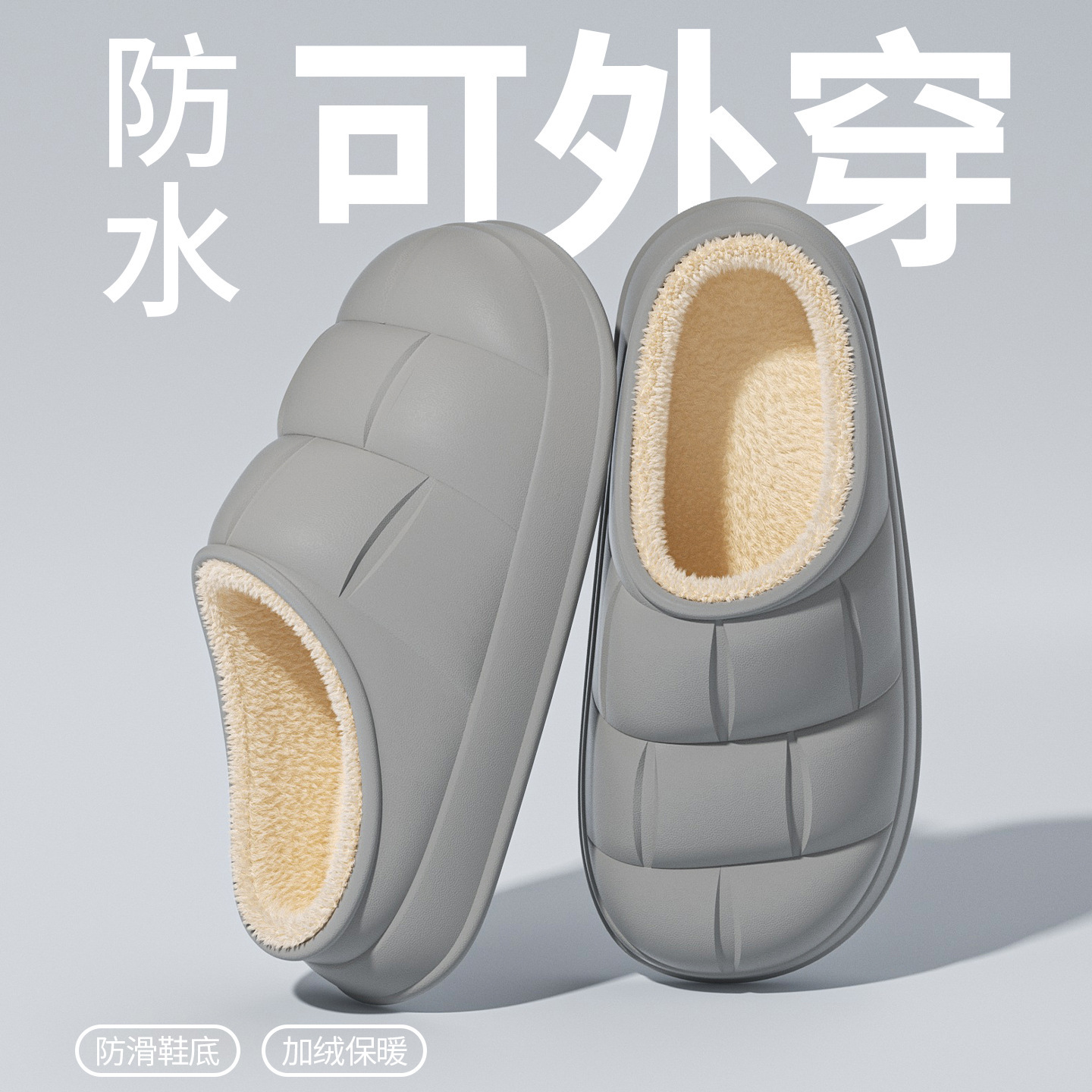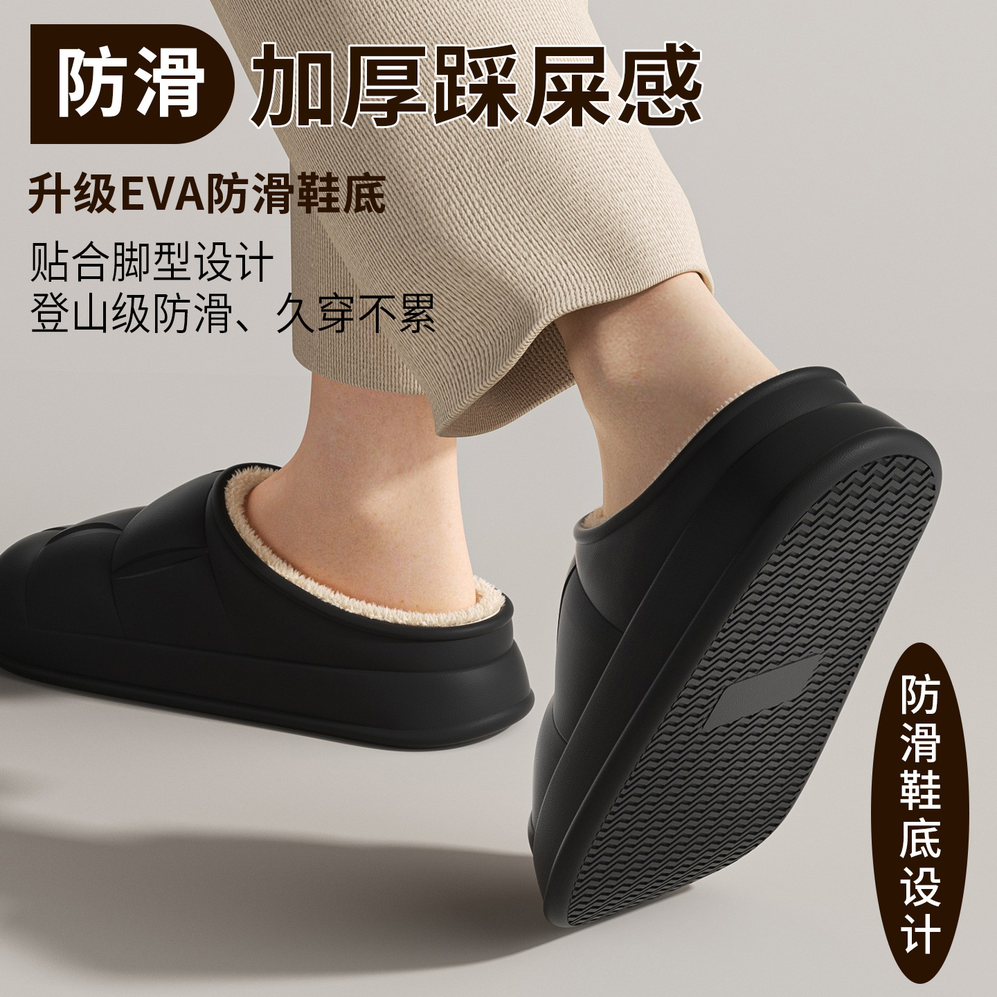 棉拖鞋女秋冬季新款室内居家防滑踩屎感加绒保暖防水半拖毛套男士