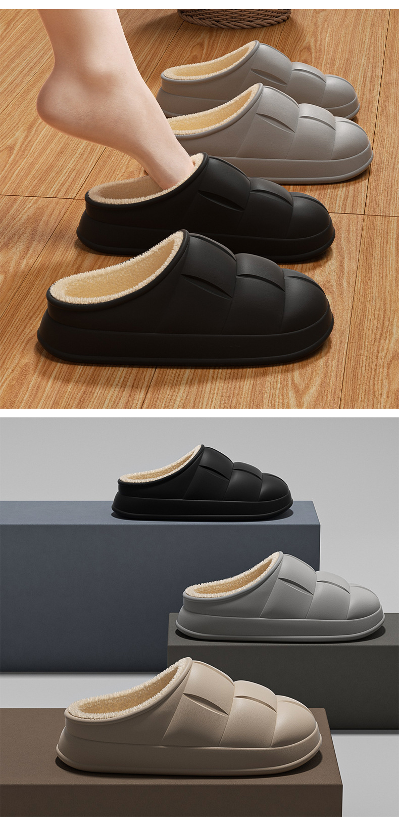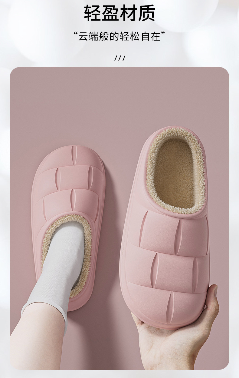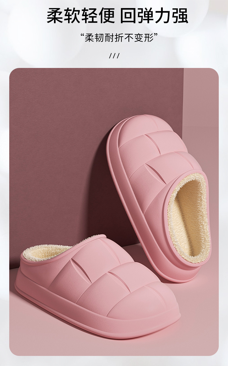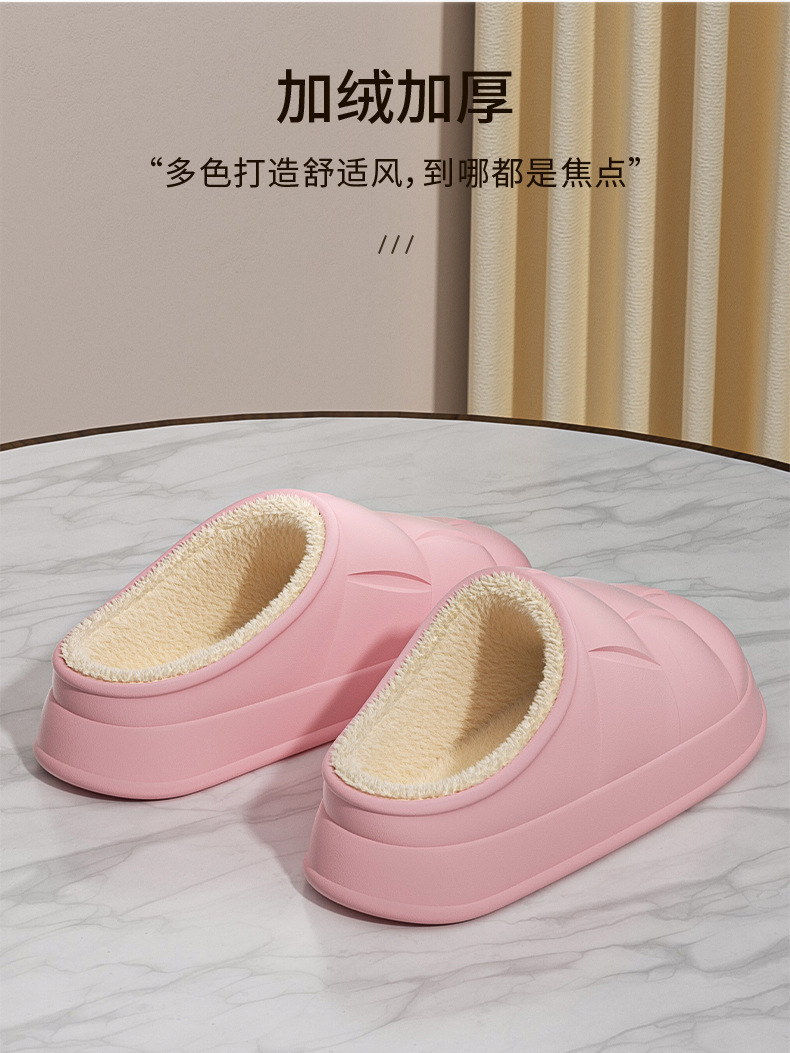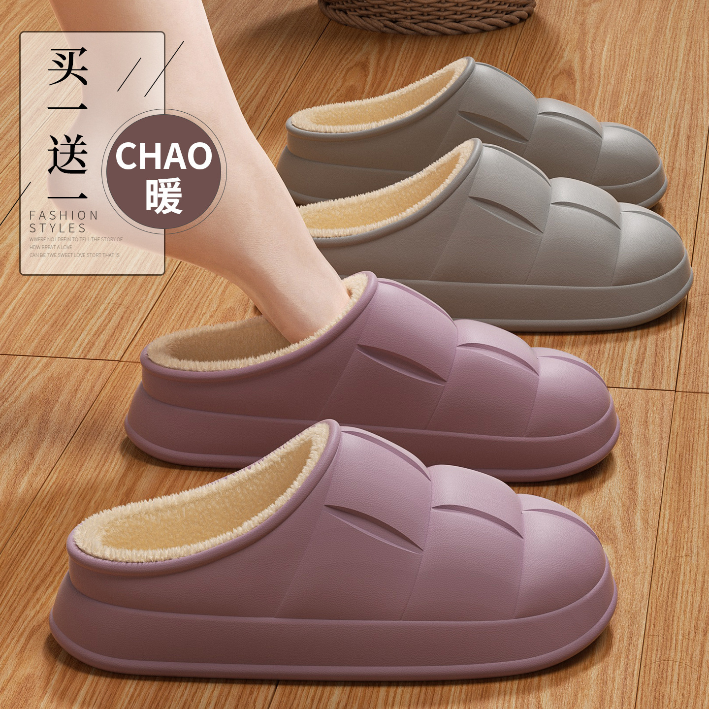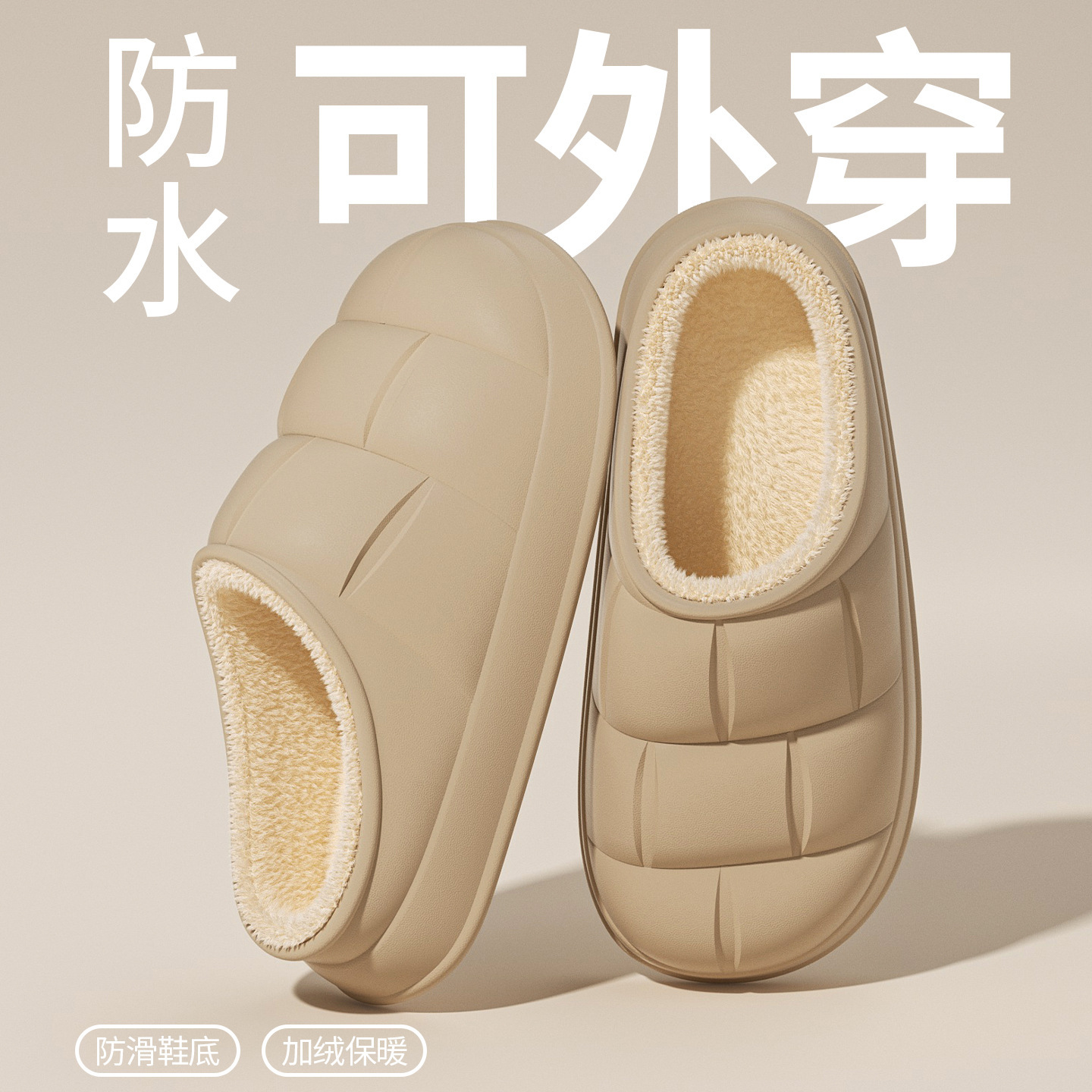 棉拖鞋女秋冬季新款室内居家防滑踩屎感加绒保暖防水半拖毛套男士