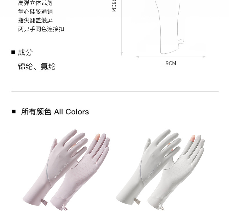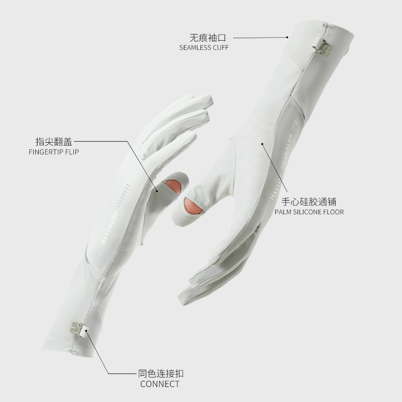 开车防晒手套女长款冰丝手袖薄款防紫外线夏季骑行袖套宽松露指