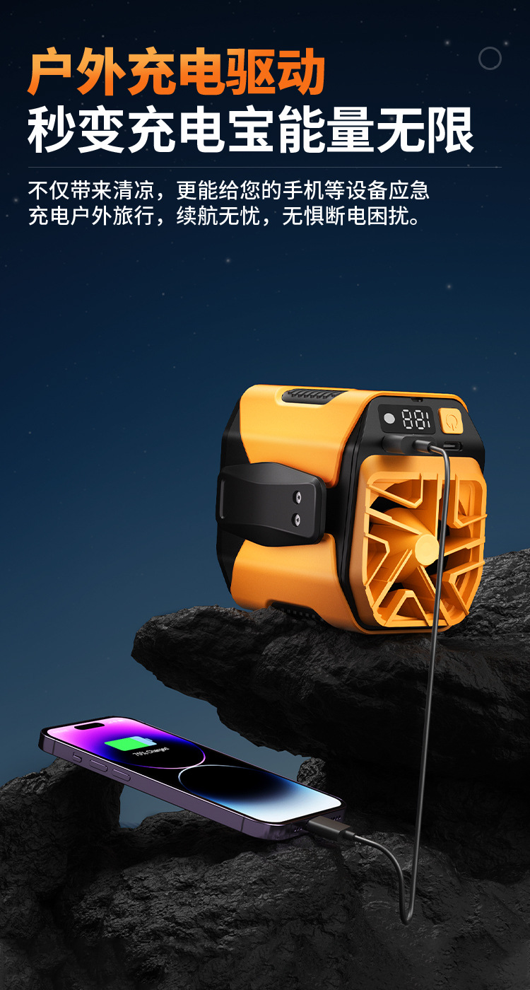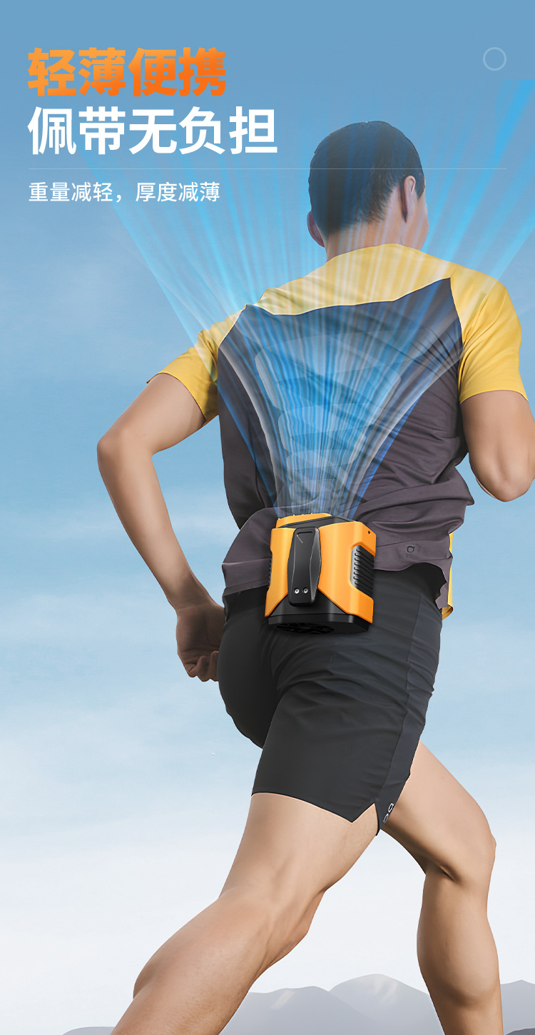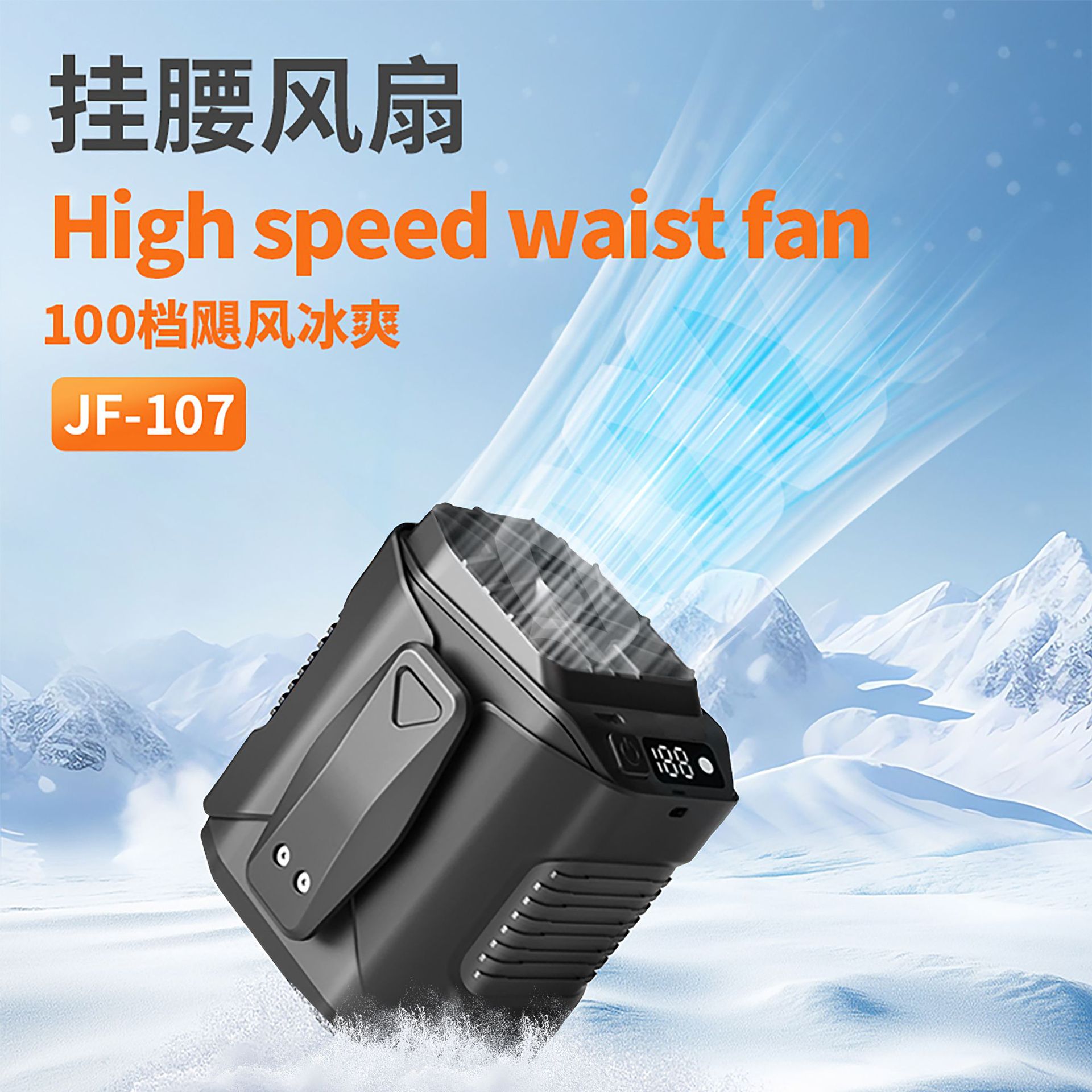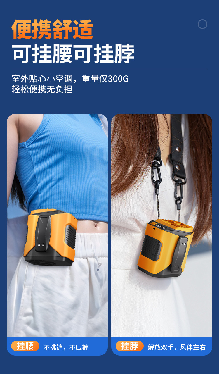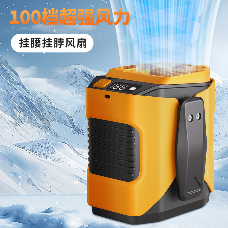 挂腰风扇长续航便携充电式腰挂式暴力风扇数显屏led照明高速降温