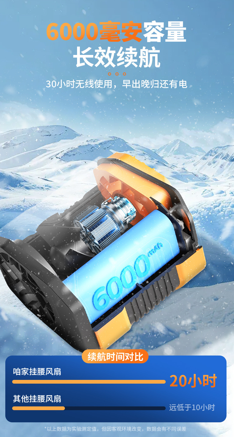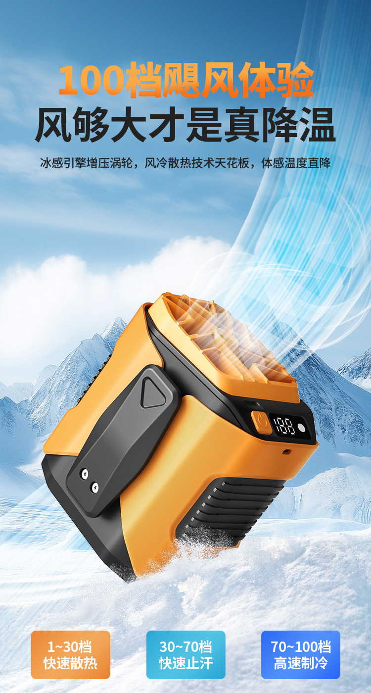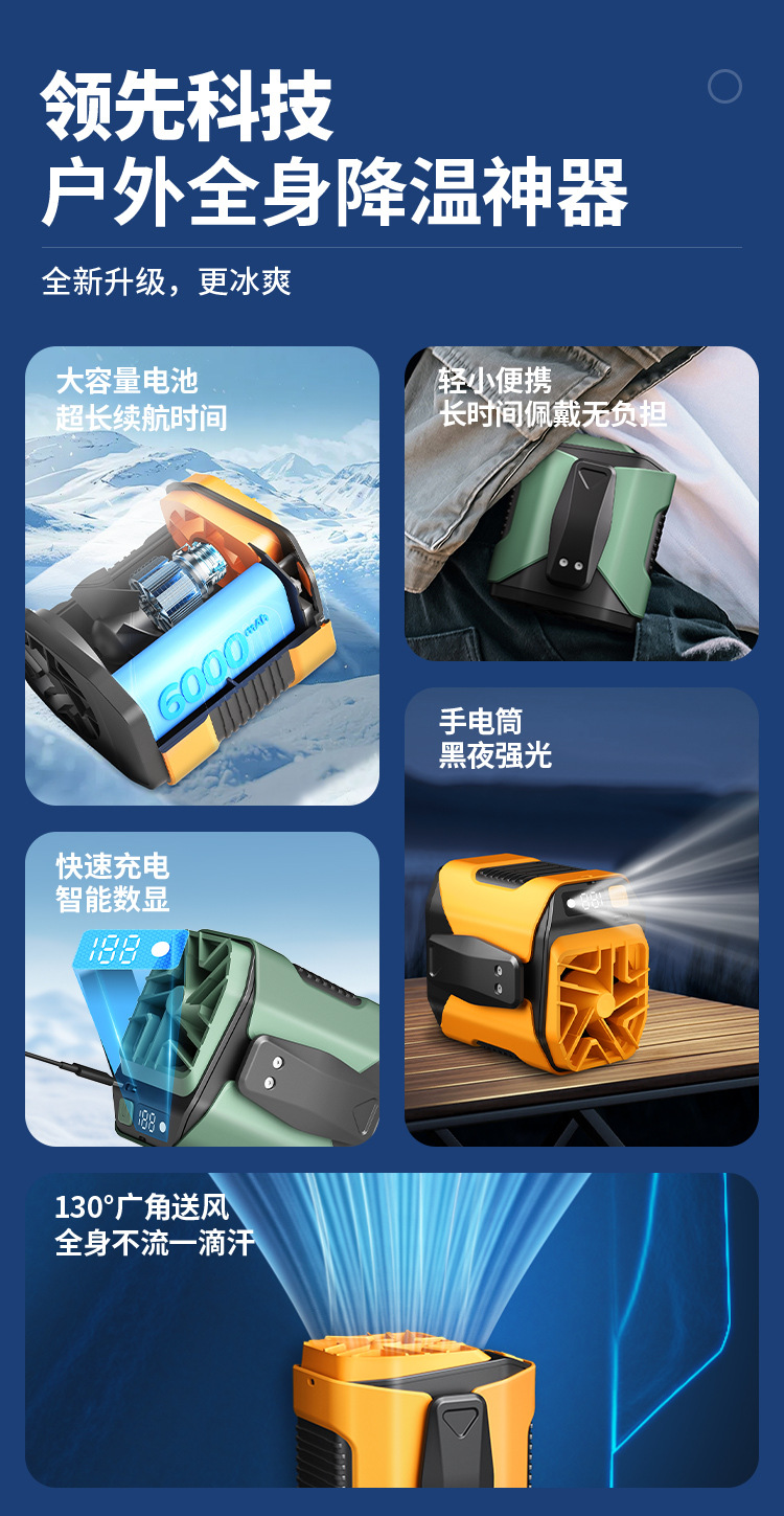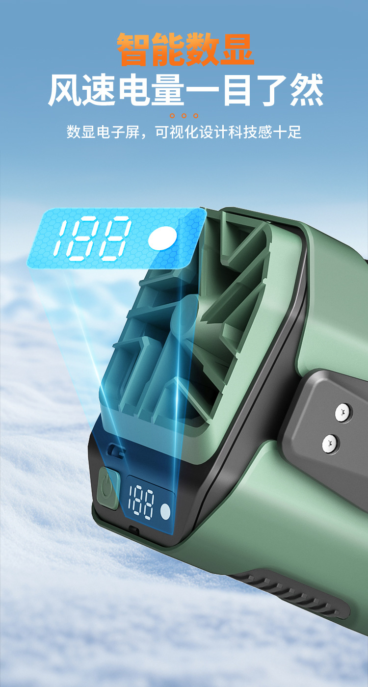 挂腰风扇长续航便携充电式腰挂式暴力风扇数显屏led照明高速降温