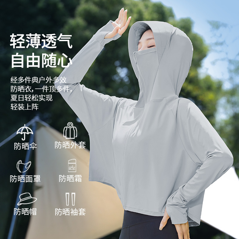 夏季冰丝防晒衣50+女宽松户外防晒服披肩薄款透气上衣防紫外线