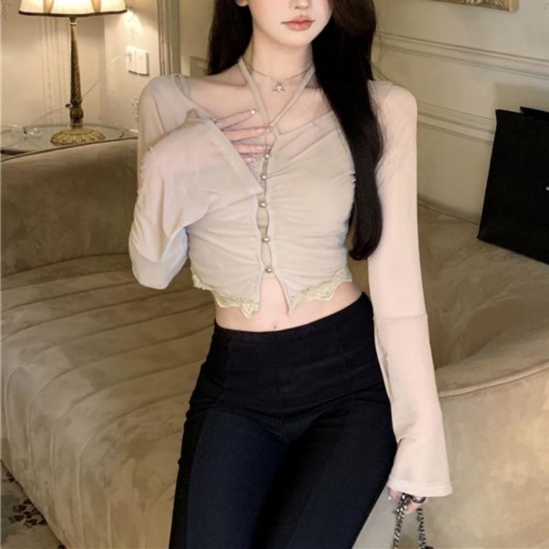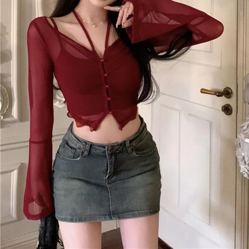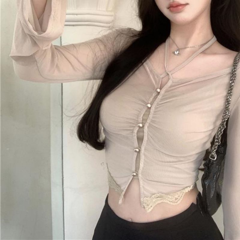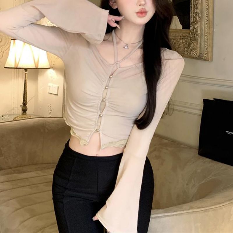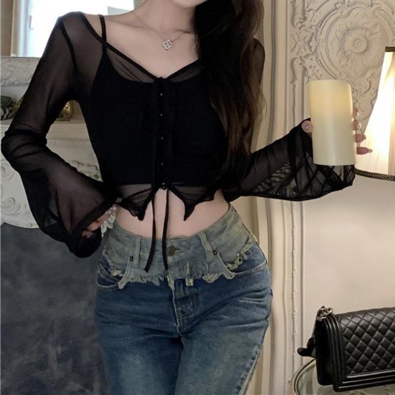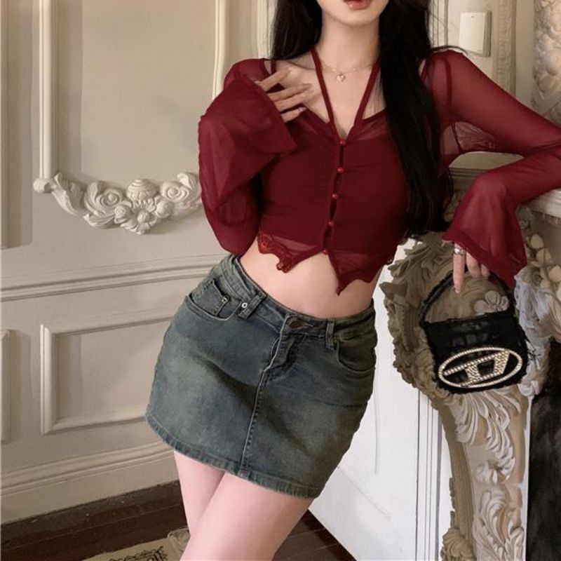 2025纯欲性感辣妹薄款防晒衬衫女修身显瘦短款开衫上衣单件外穿