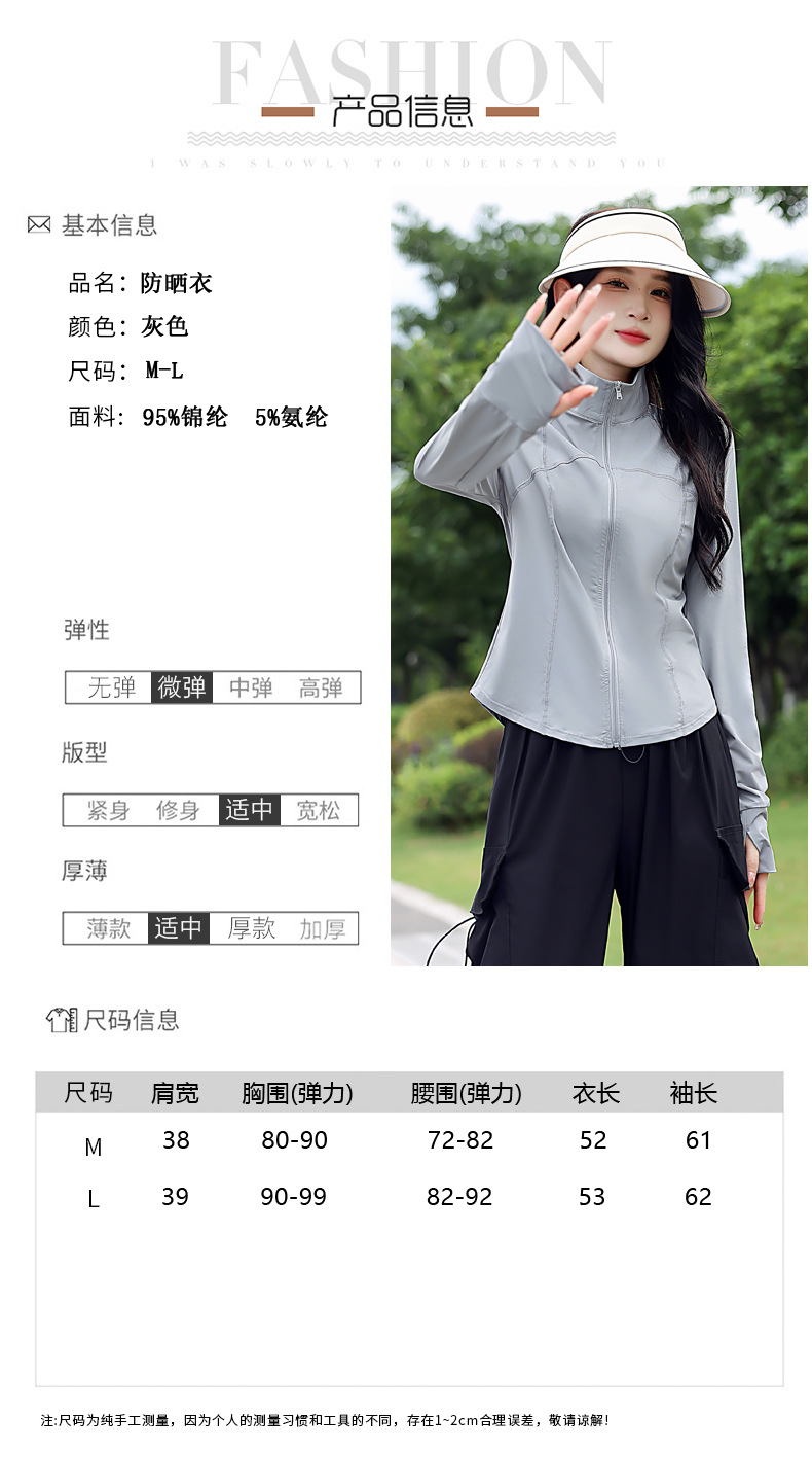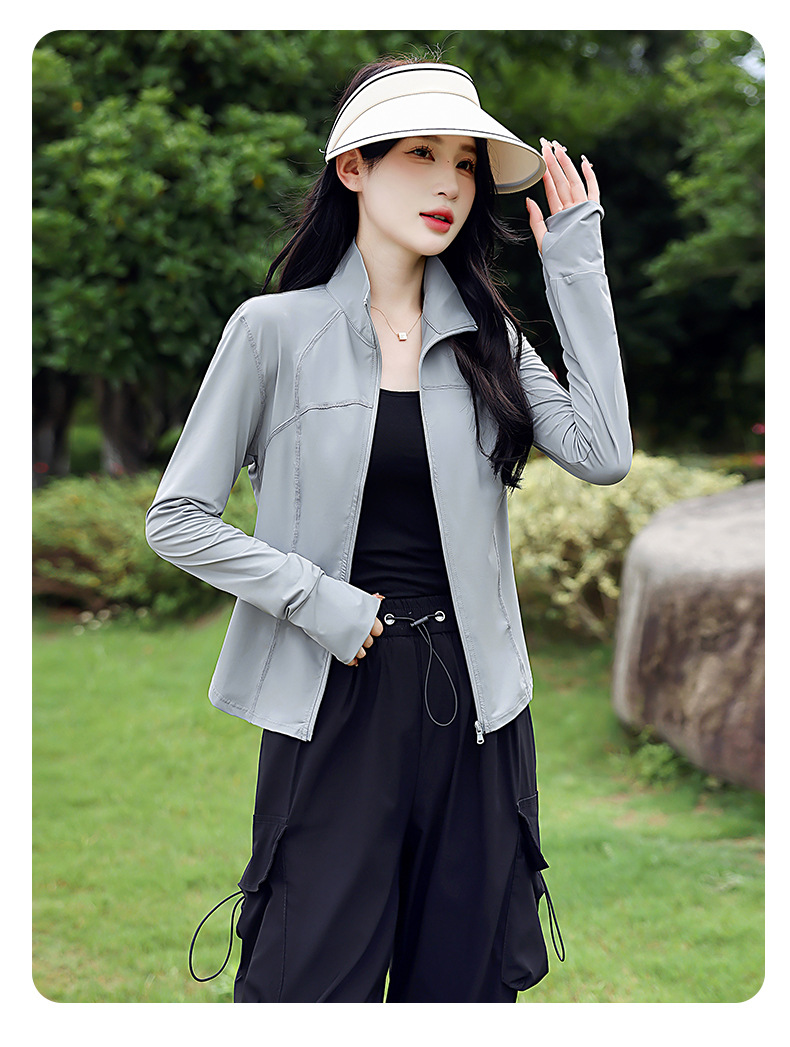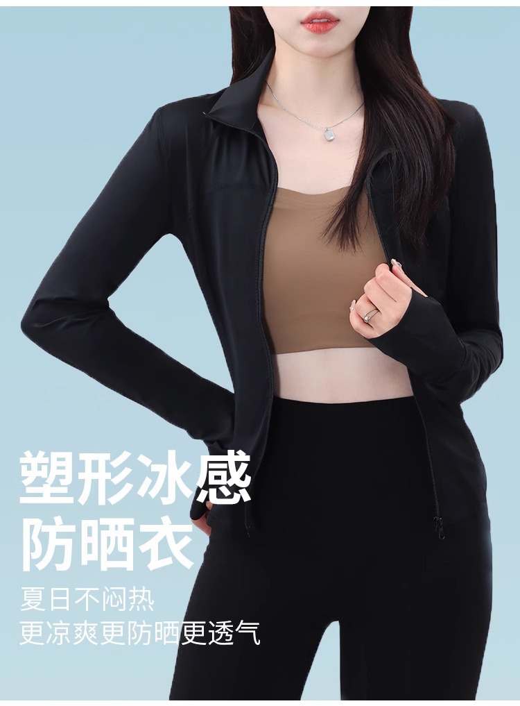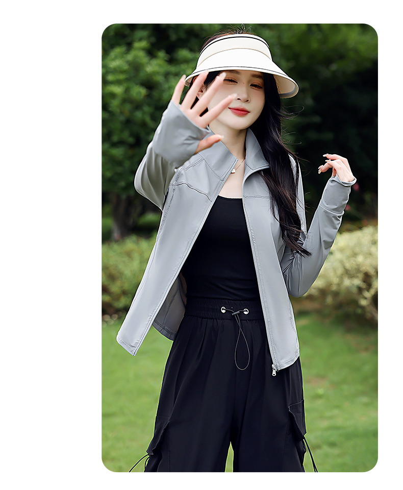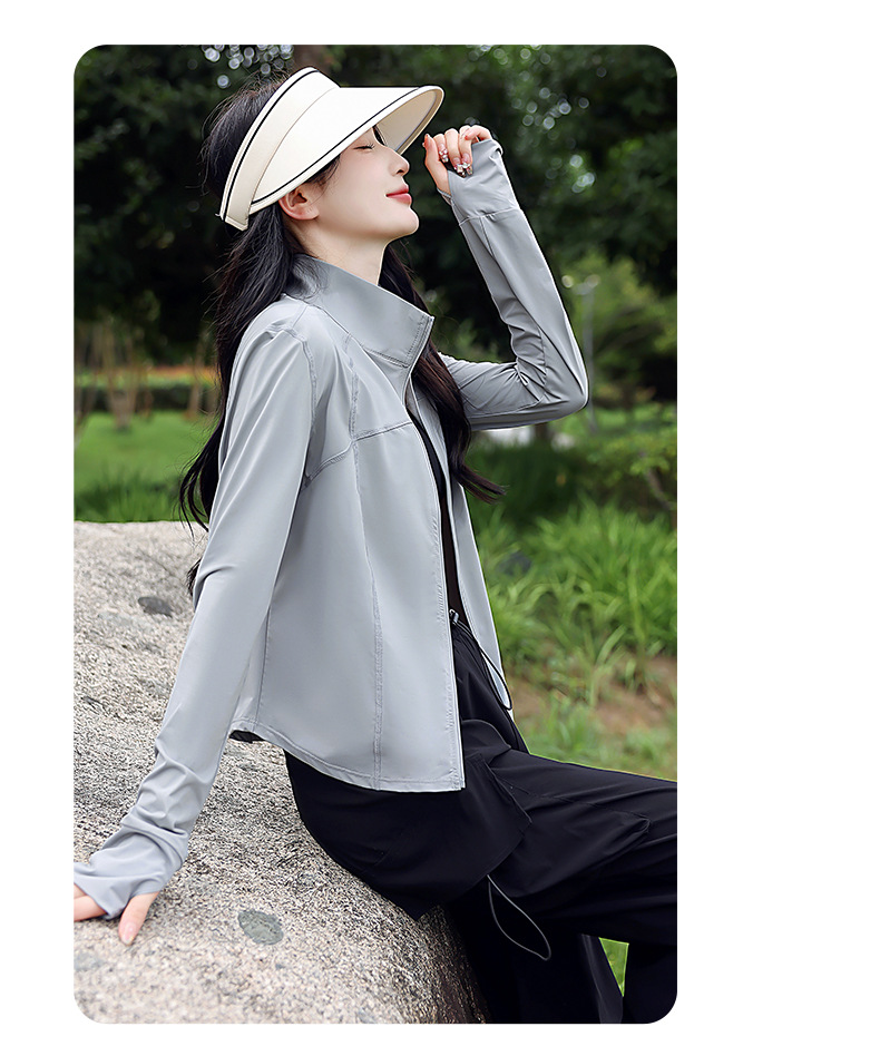 UPF50+冰丝防晒衣女防紫外线修身户外小个子立领跑步外套轻薄短款