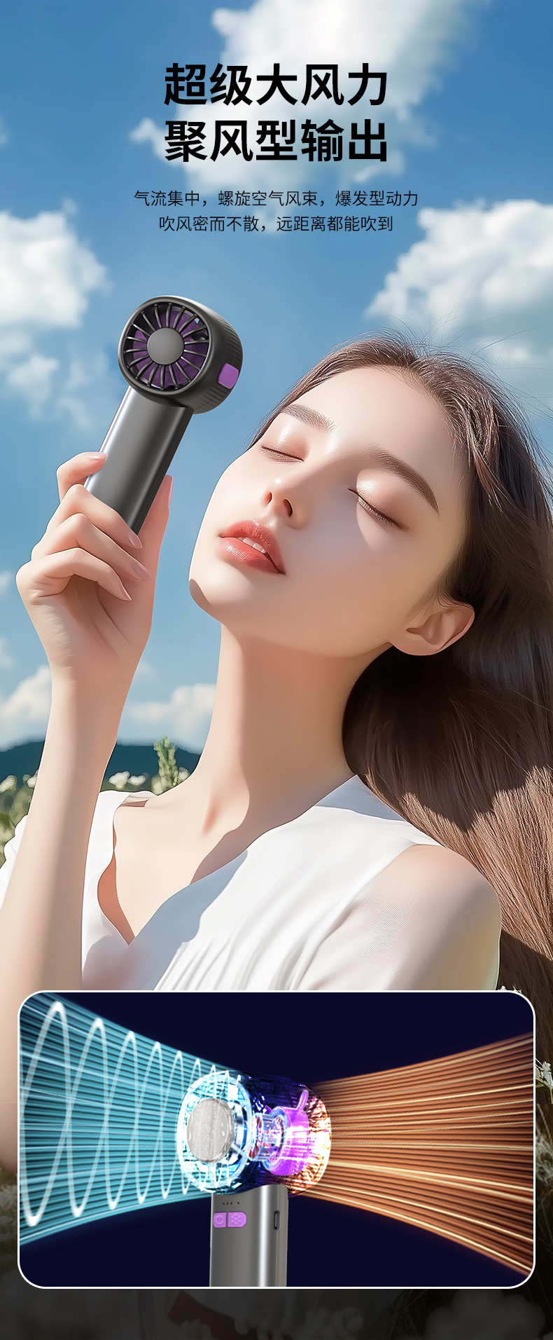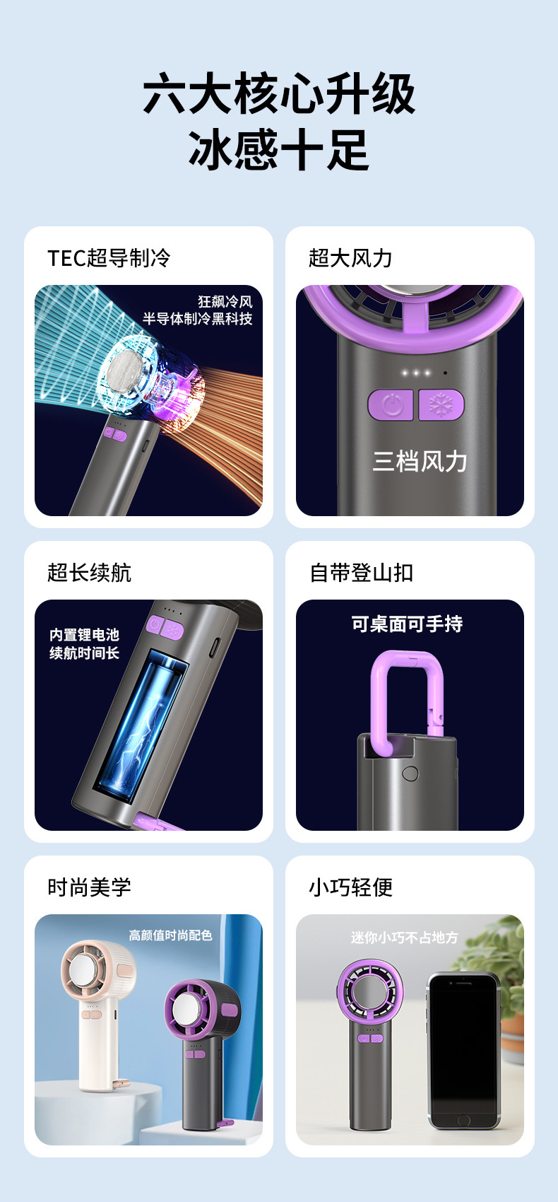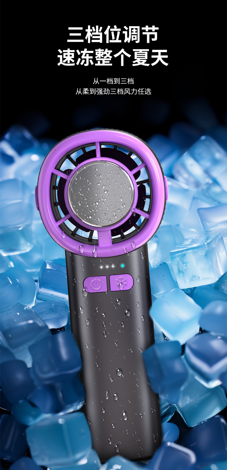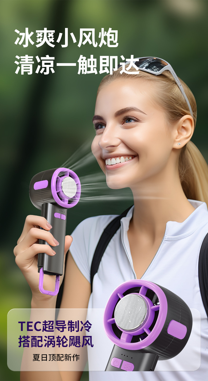 2026新款100档高速数显冰敷制冷半导体风扇USB便携式手持小风扇
