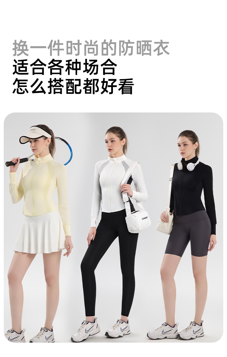 拼色防晒衣女凉感防紫外线修身立领显瘦短外套上衣夏薄冰丝防晒服