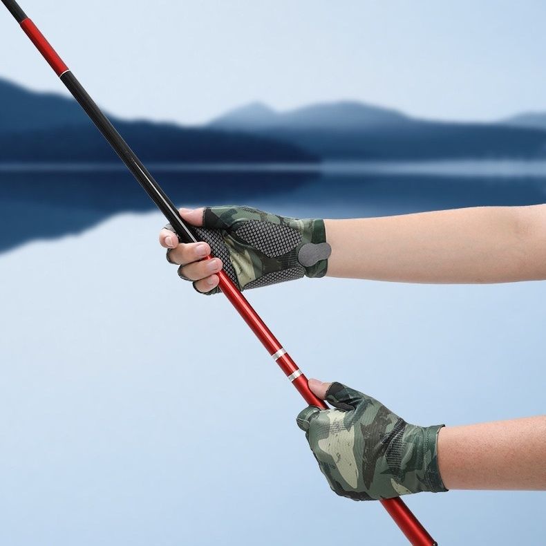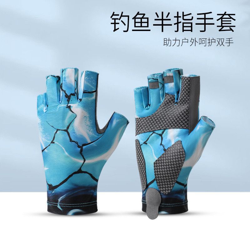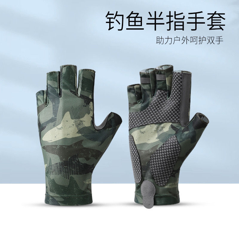 夏季钓鱼手套薄款冰丝男士半指透气防滑耐磨户外垂钓海钓防晒手套