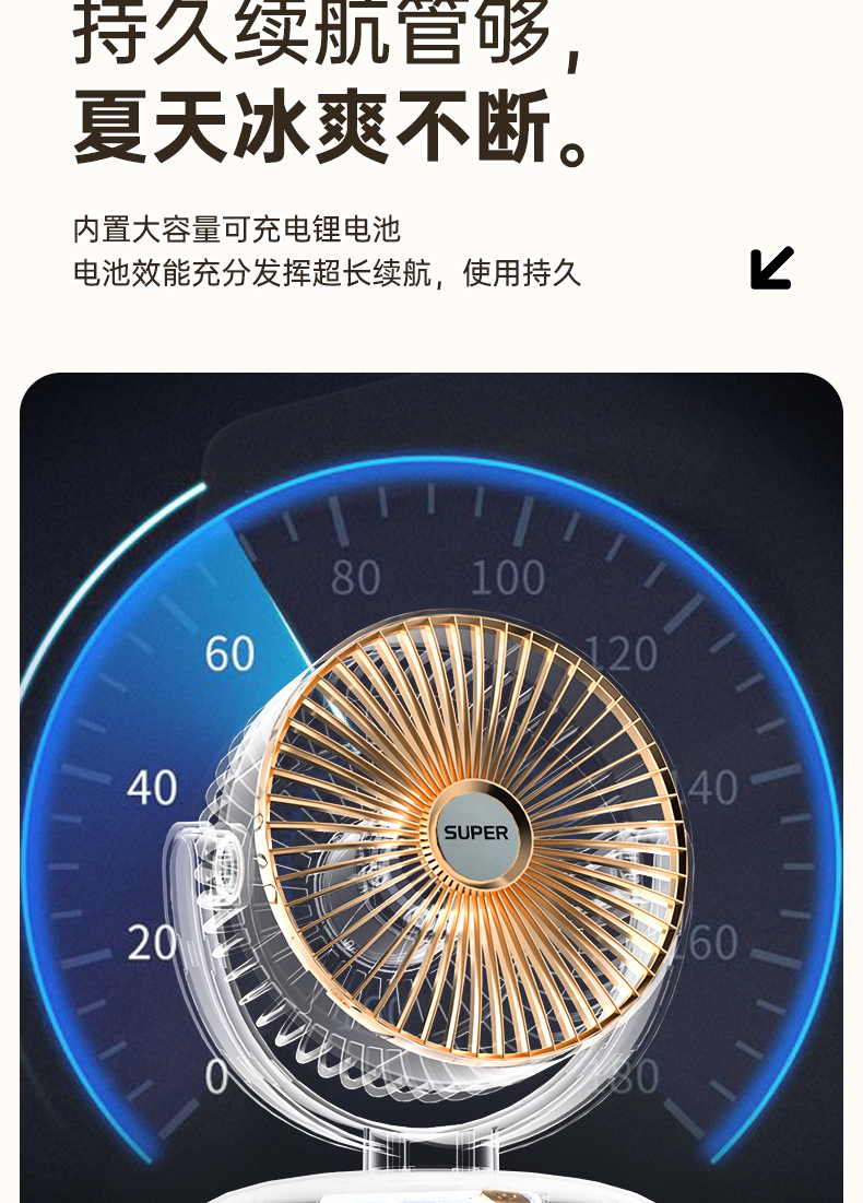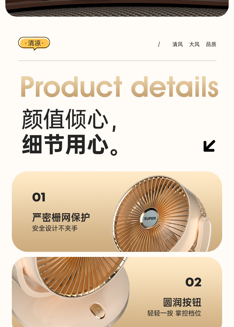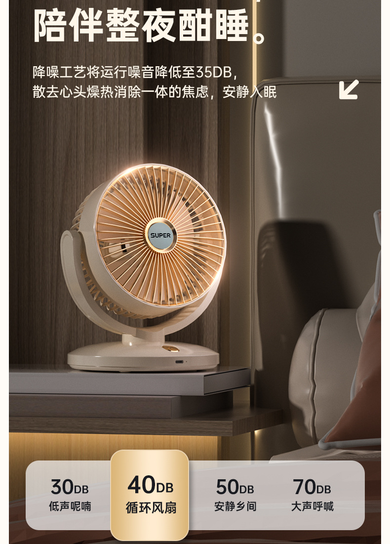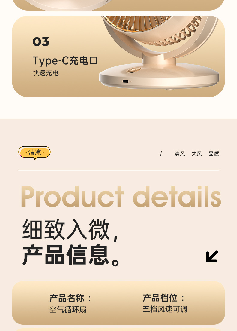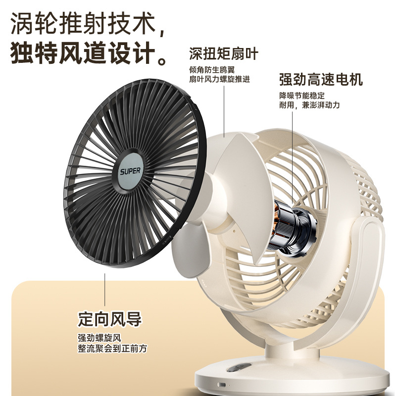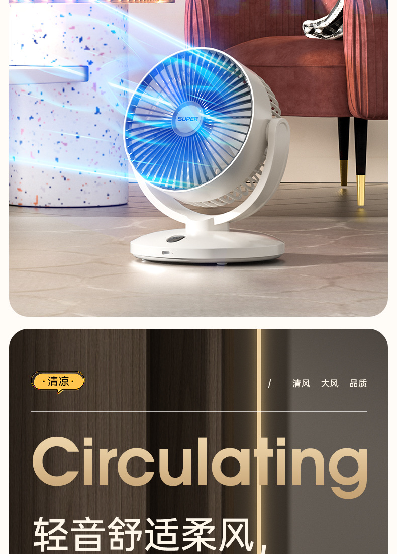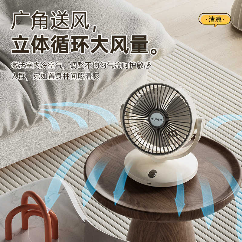 新品办公桌面循环扇usb充电款长续航风扇便携式小风扇台式露营