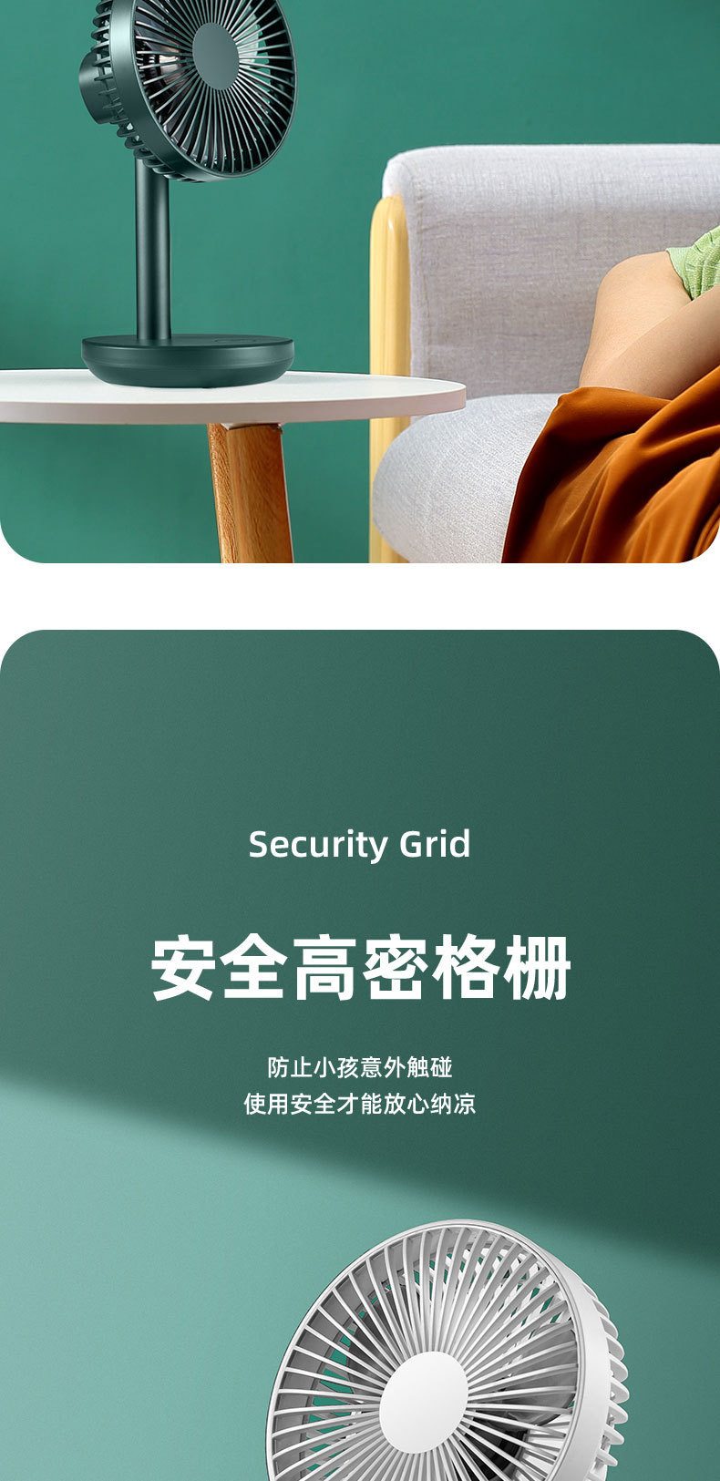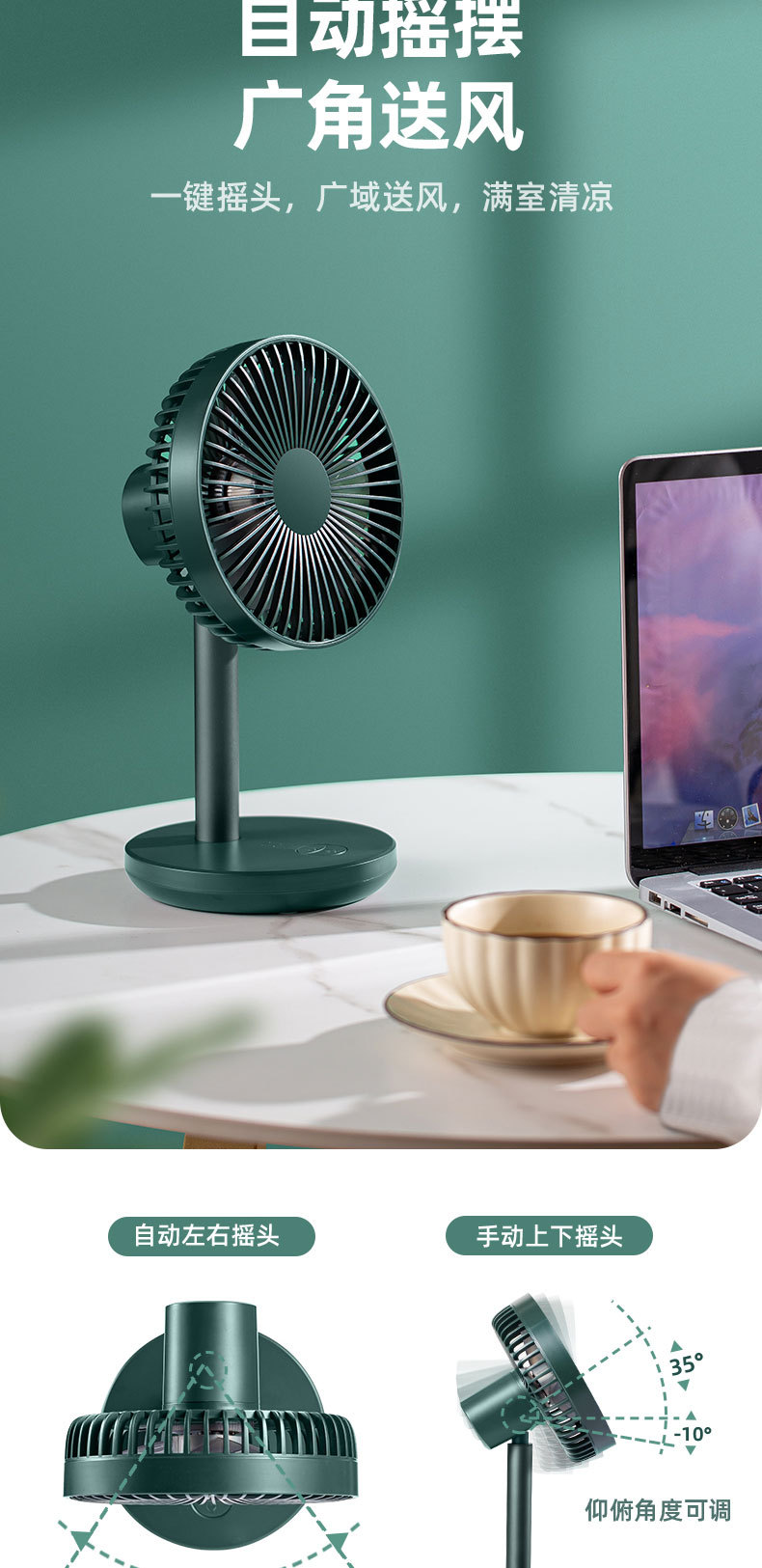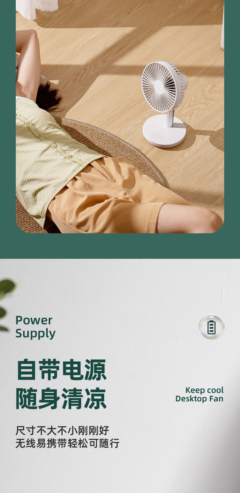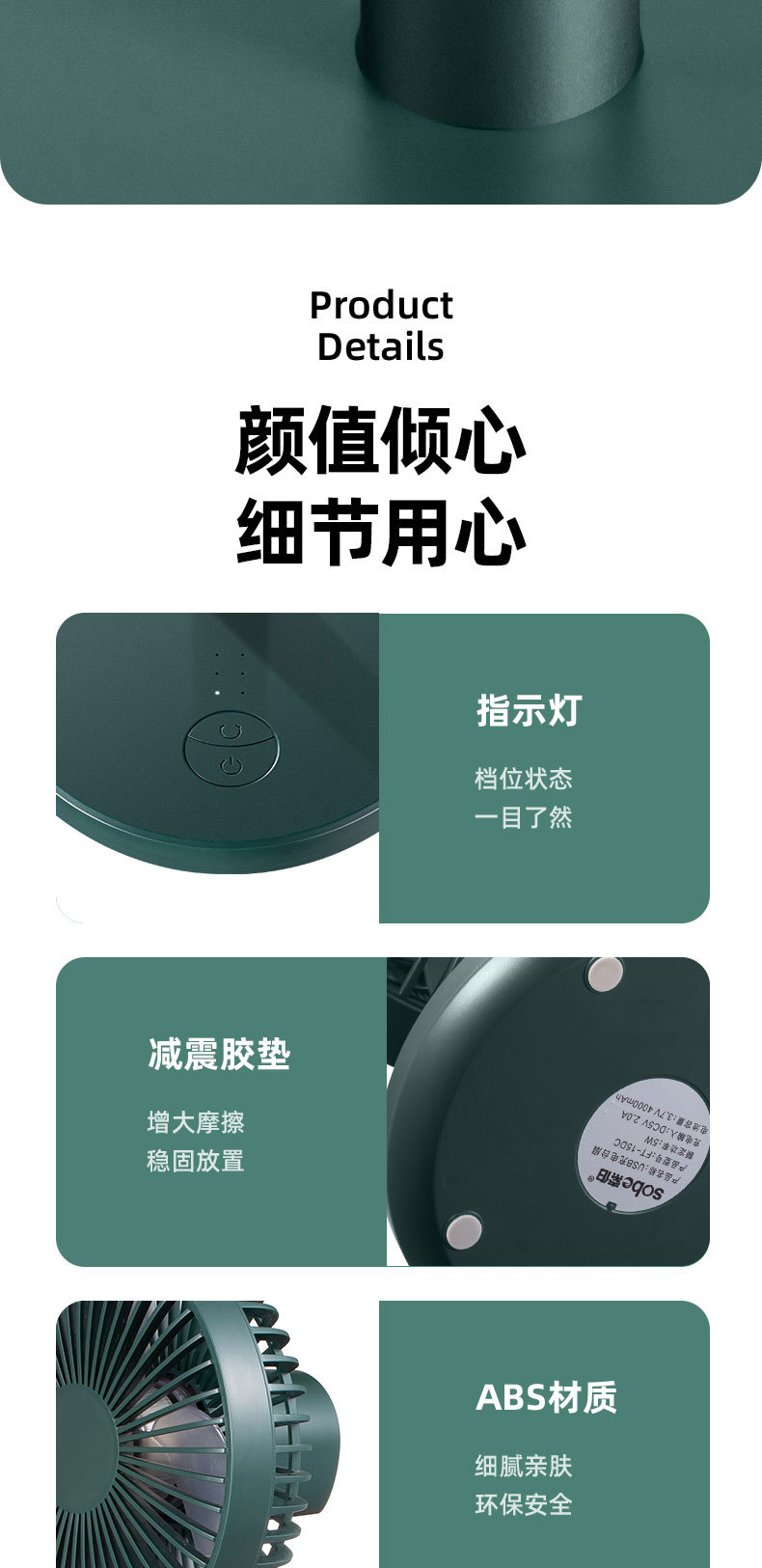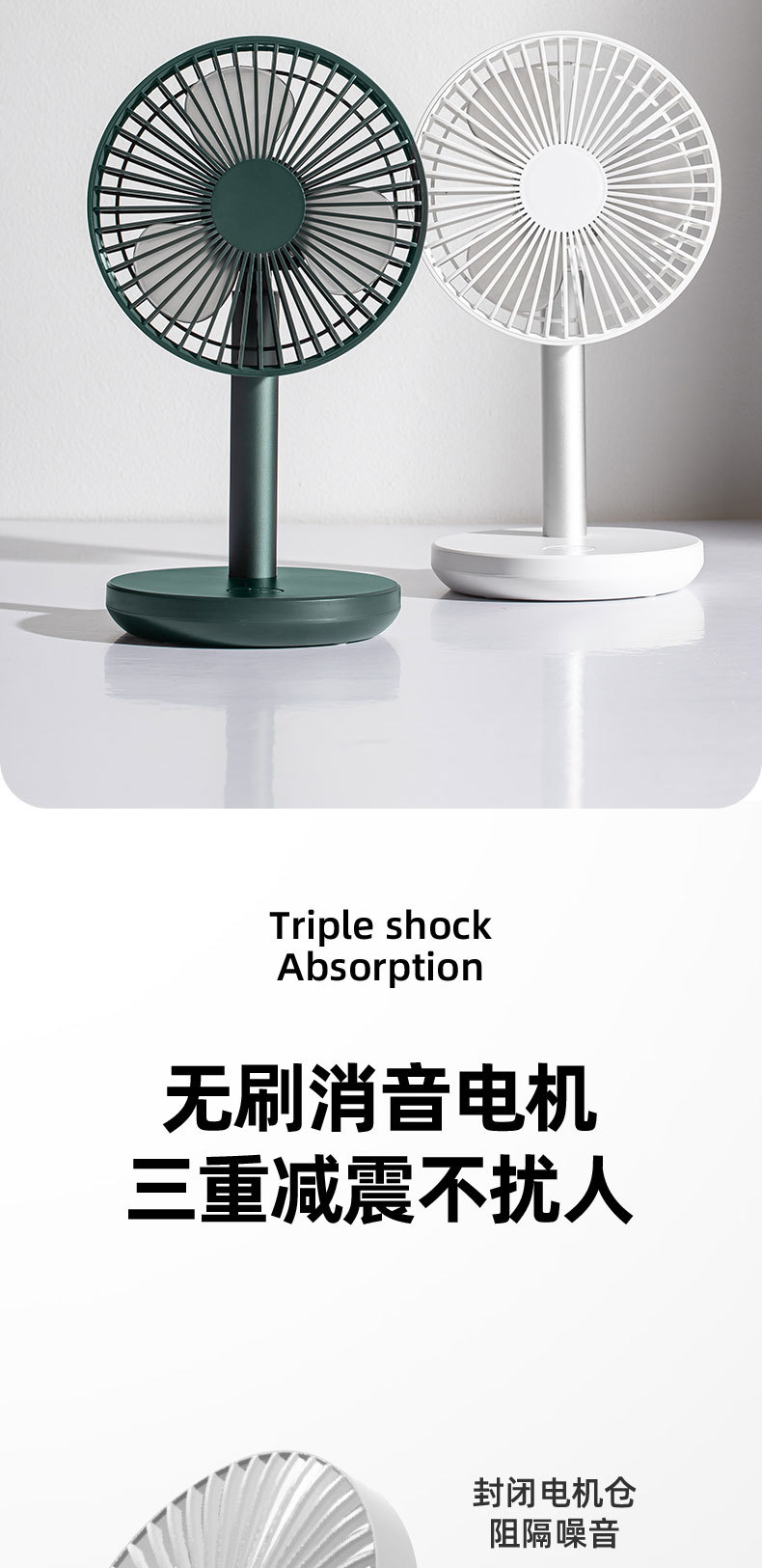 索伯小风扇桌面USB可充电风扇迷你风扇静音学生宿舍办公室桌上台