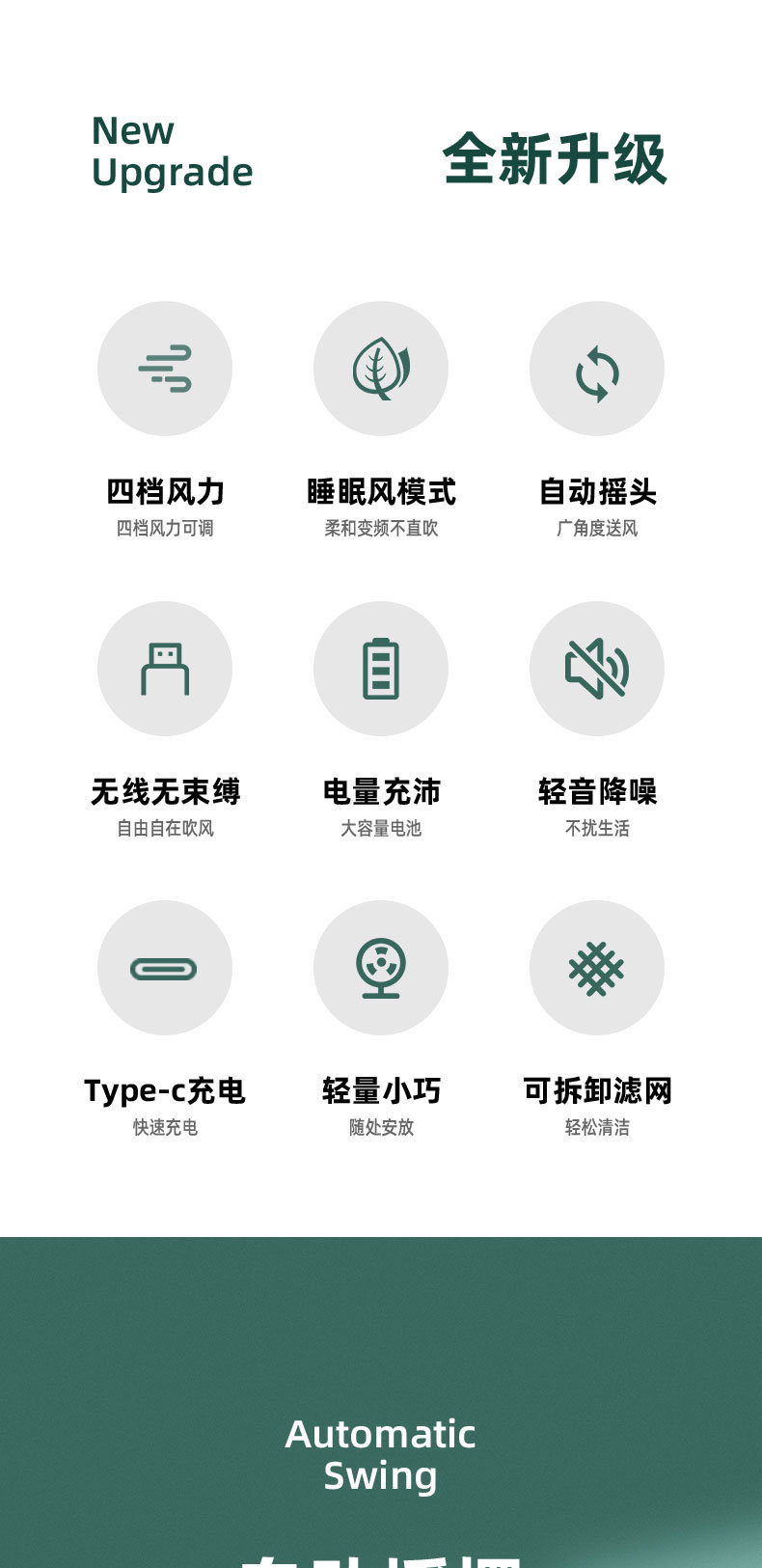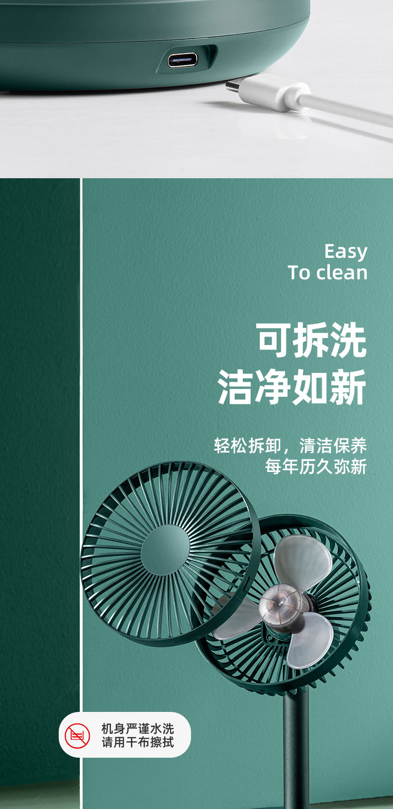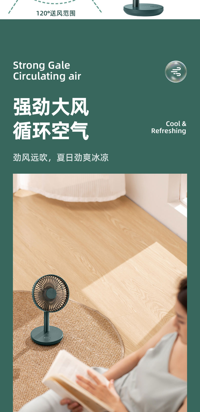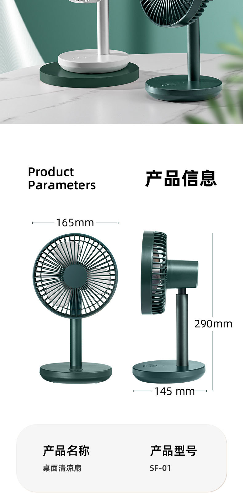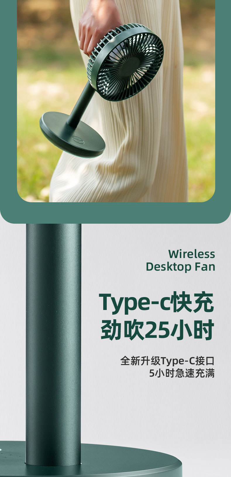 索伯小风扇桌面USB可充电风扇迷你风扇静音学生宿舍办公室桌上台