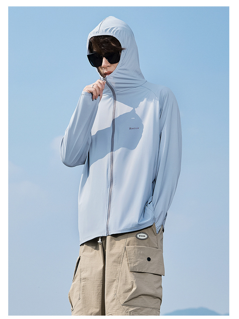 冰丝防晒衣情侣款夏季薄防紫外线透气upf50+大帽檐遮脸一体防晒服