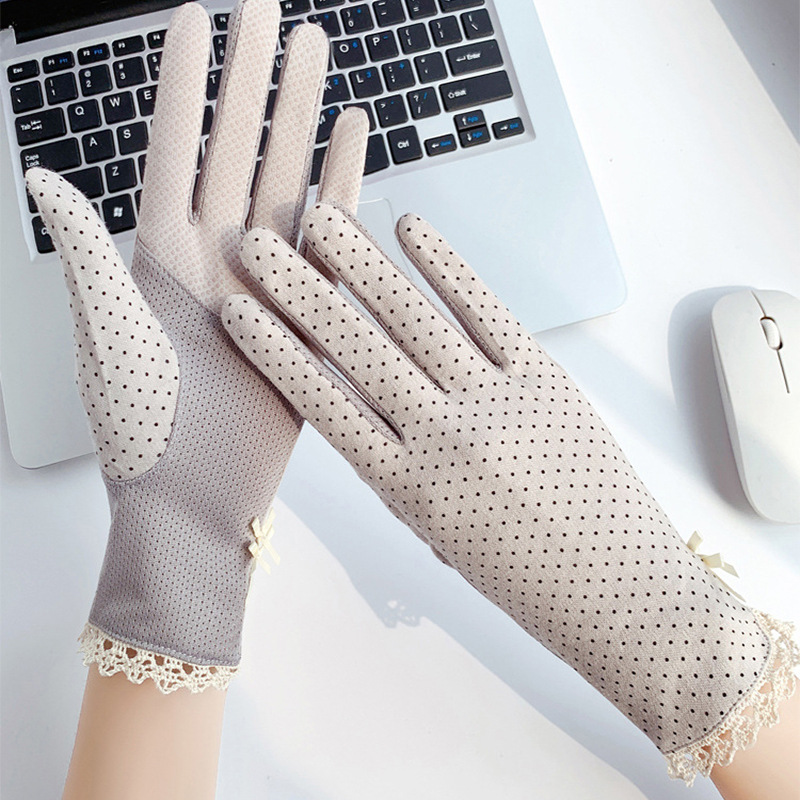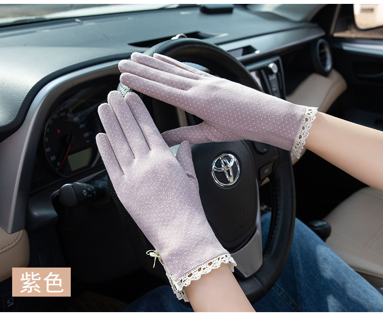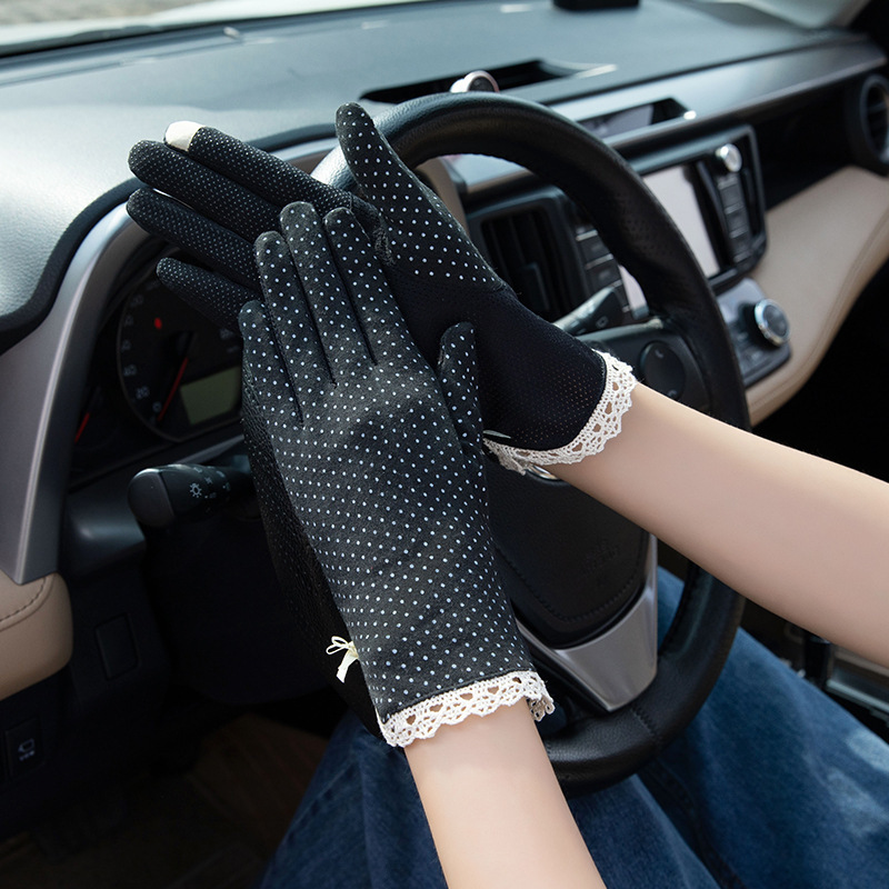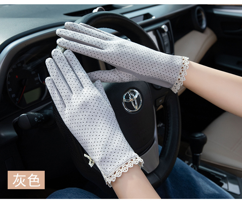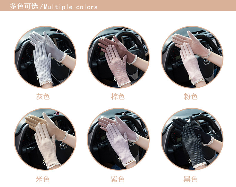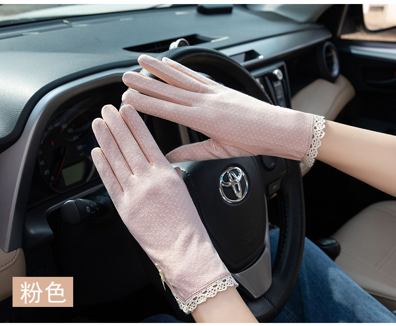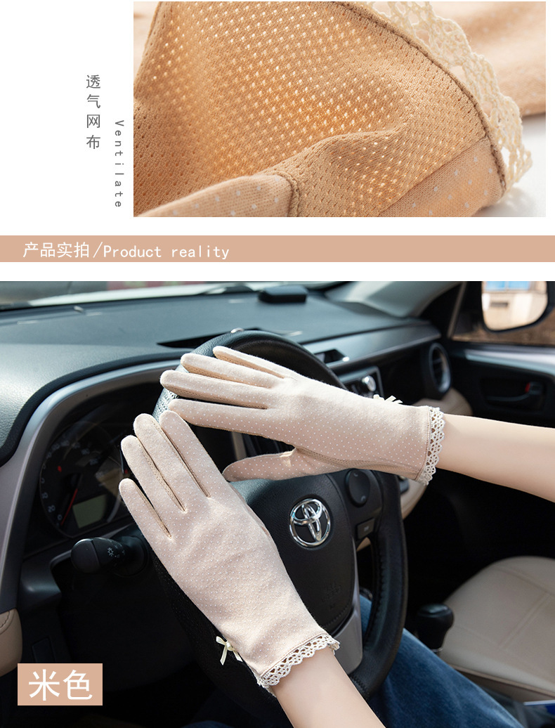 防晒花边薄款女士手套夏季防滑户外骑行开车触屏防紫外线遮阳冰丝