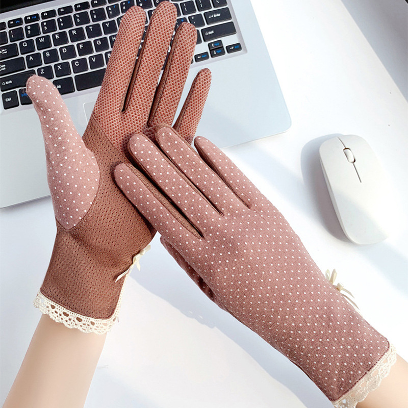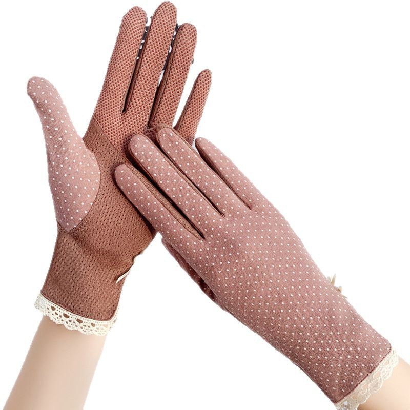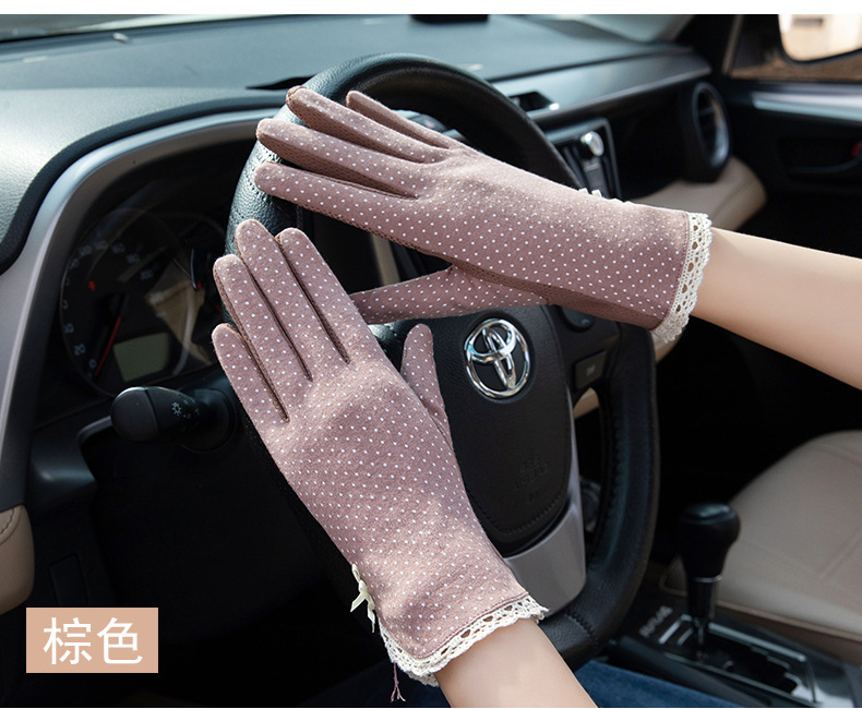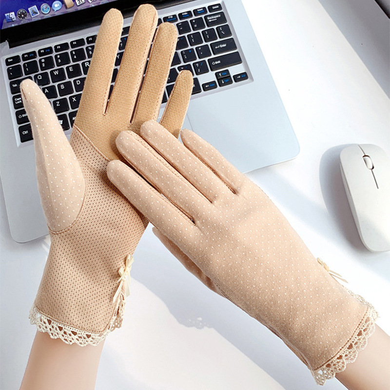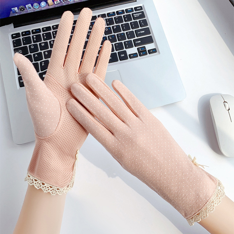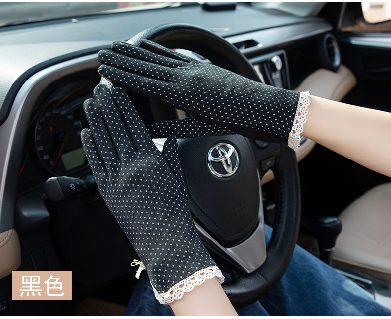 防晒花边薄款女士手套夏季防滑户外骑行开车触屏防紫外线遮阳冰丝