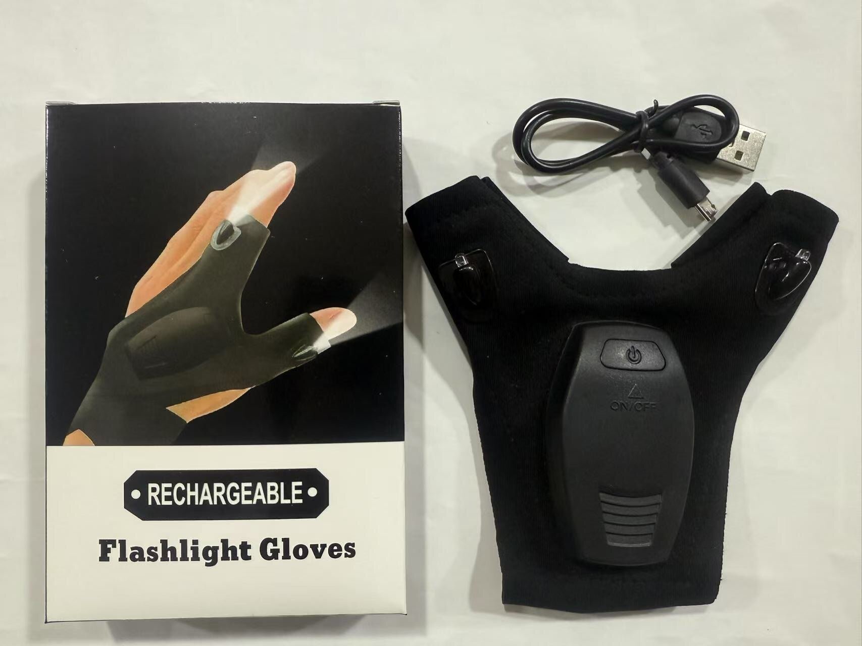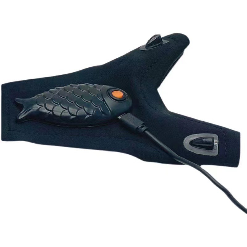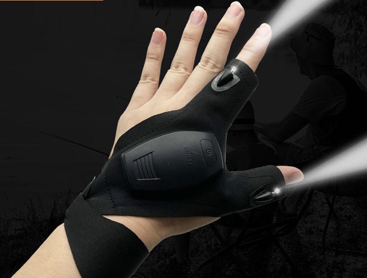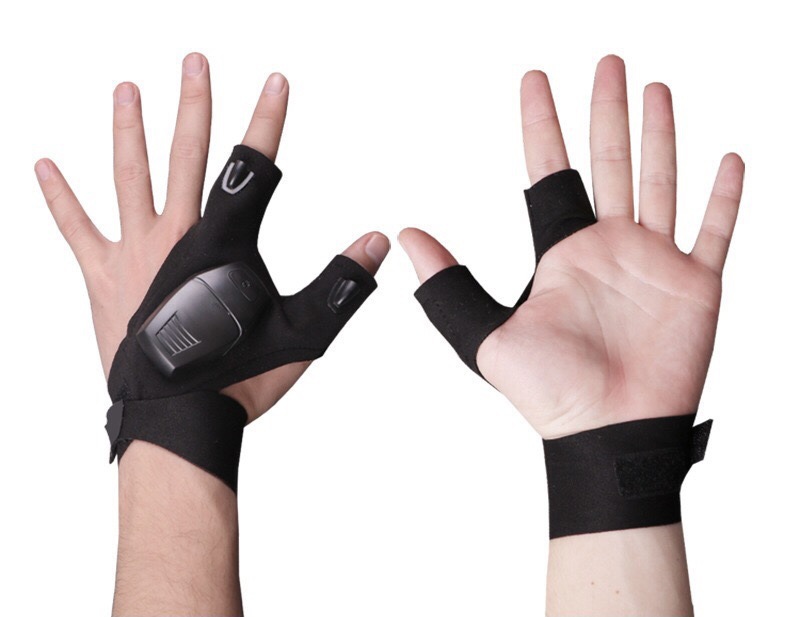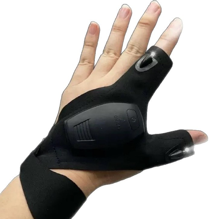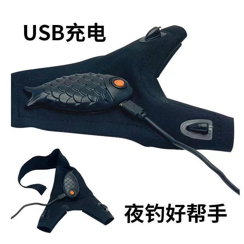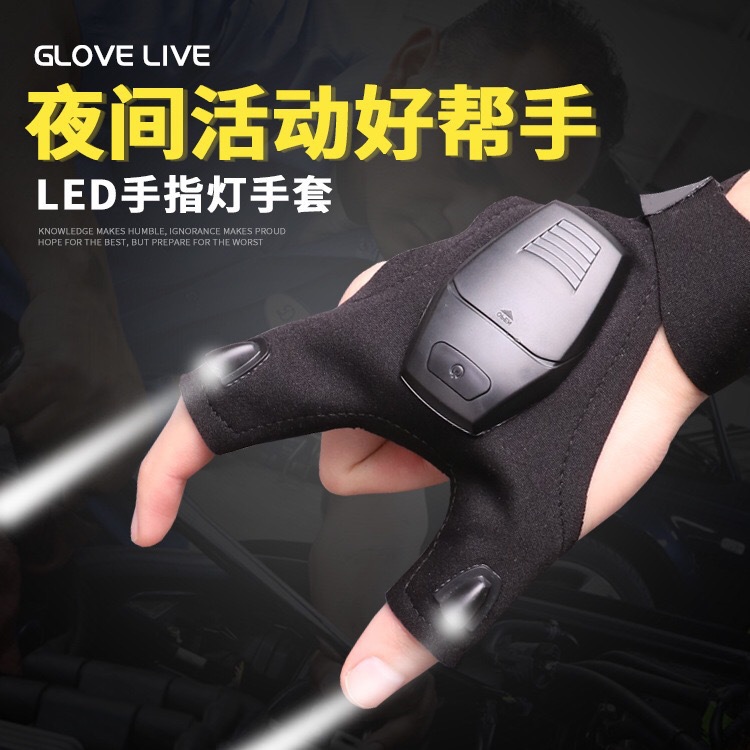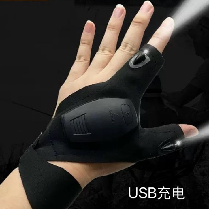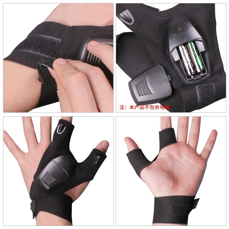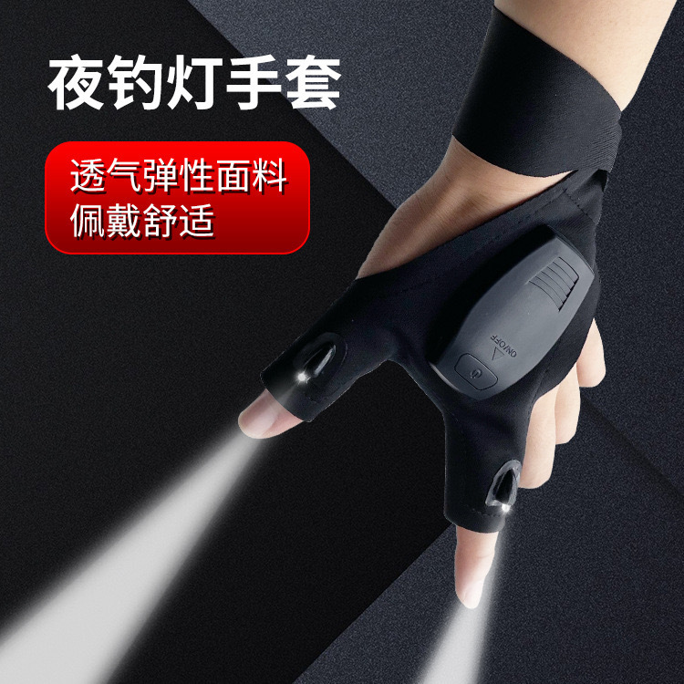 跨境防护钓鱼带灯手套电筒露营照明灯二指防晒透气户外夜钓可触屏