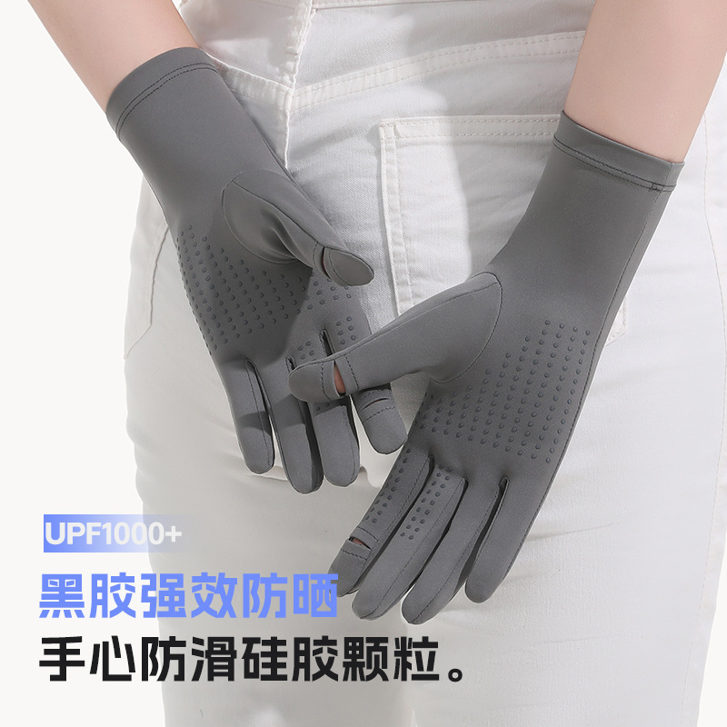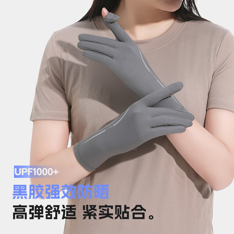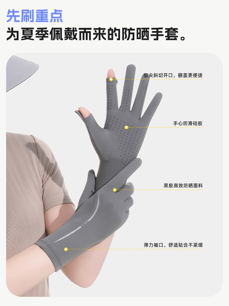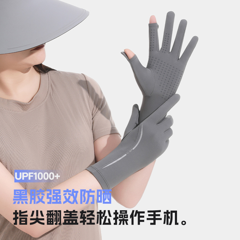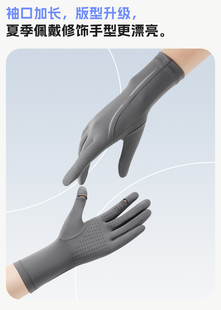 黑胶防晒冰丝手套中长夏季防紫外线触屏防滑加长冰丝宽松袖套遮阳