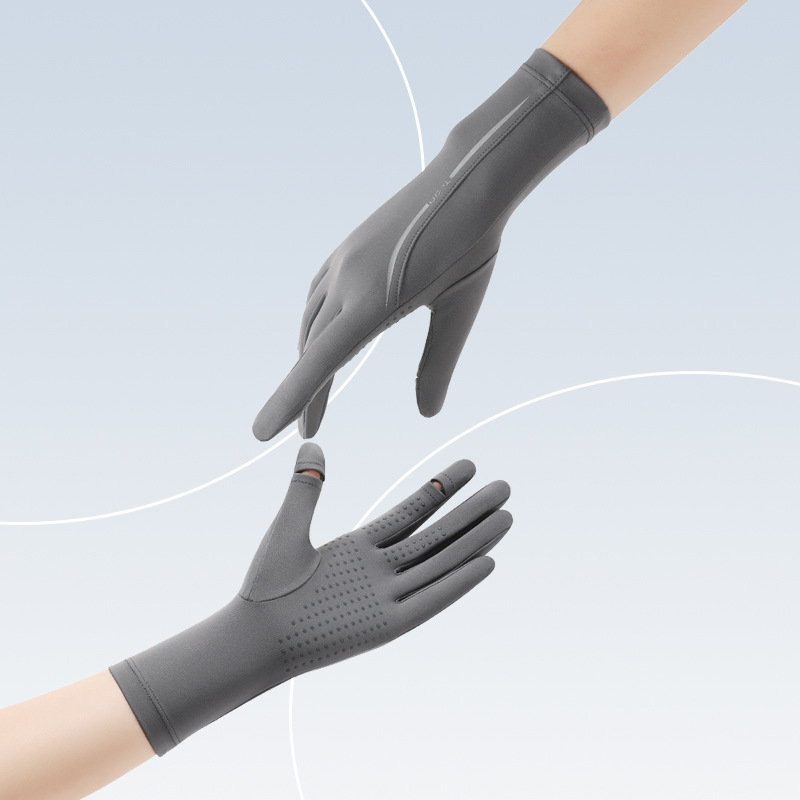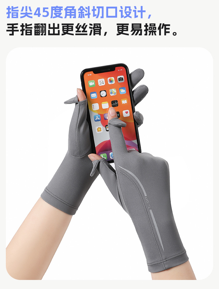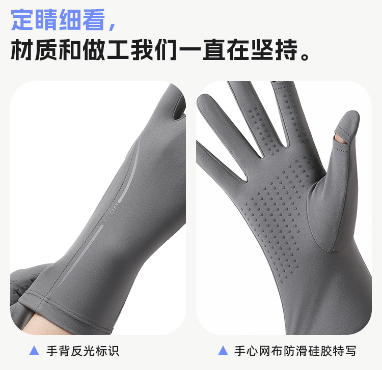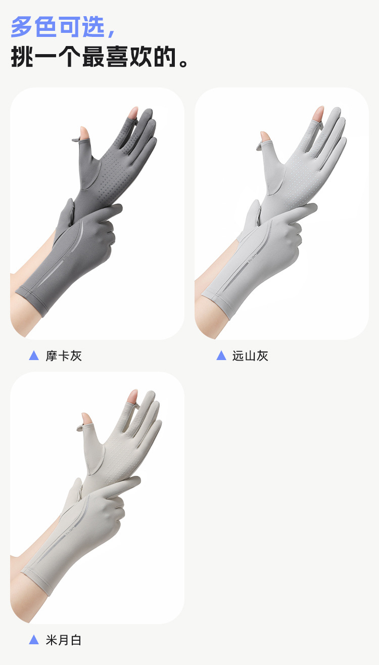 黑胶防晒冰丝手套中长夏季防紫外线触屏防滑加长冰丝宽松袖套遮阳