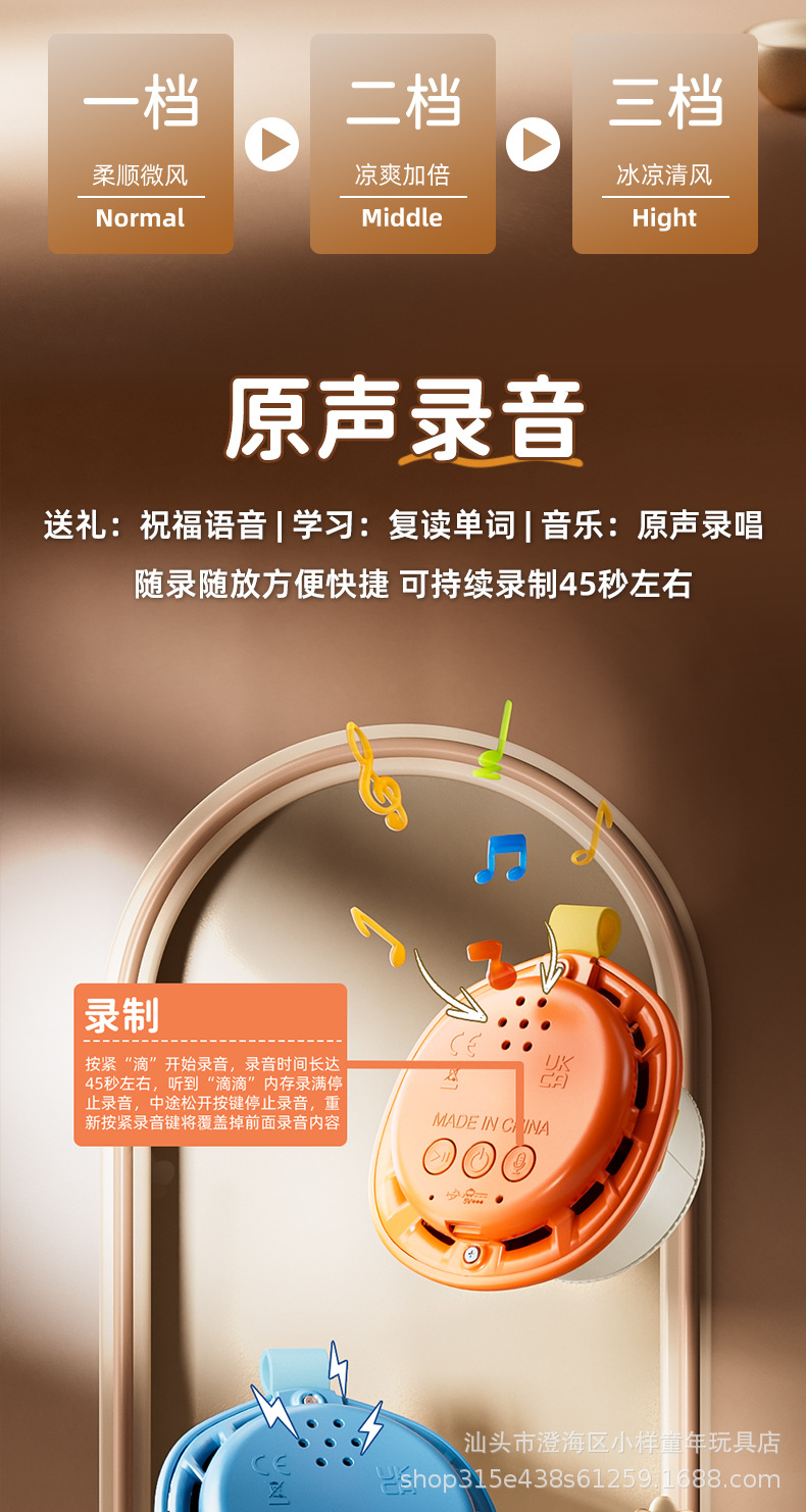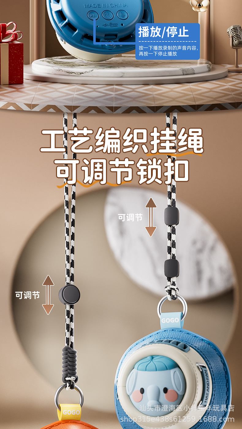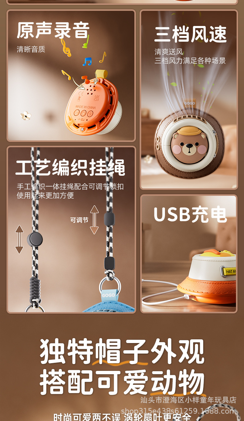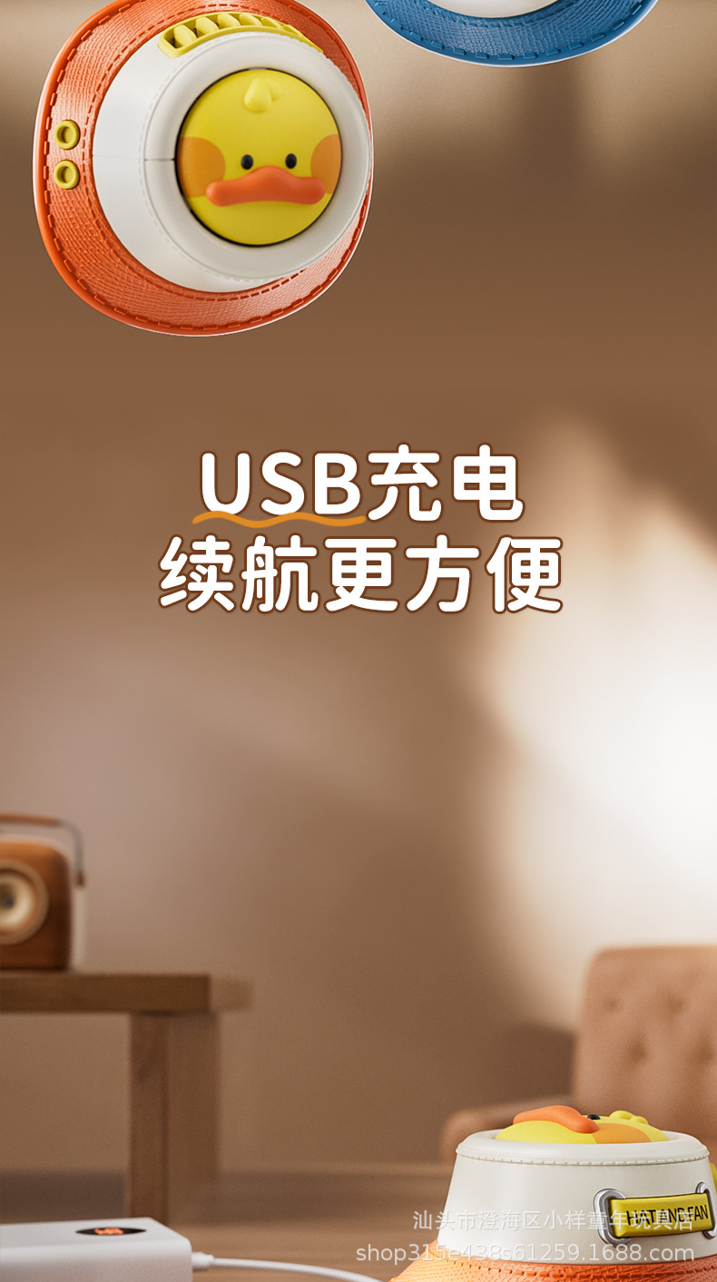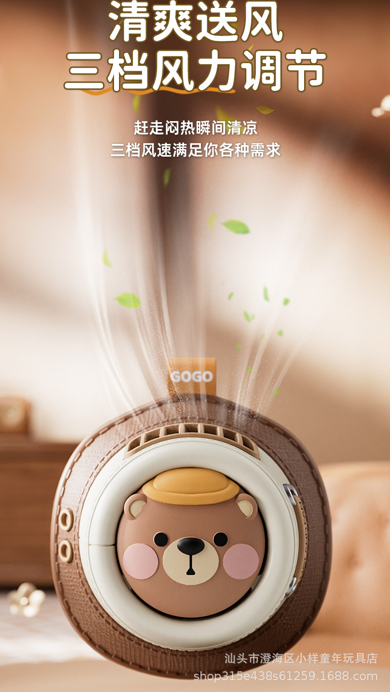 新款卡通迷你无叶挂脖玩具风扇学生手持便携USB充电制定logo批发