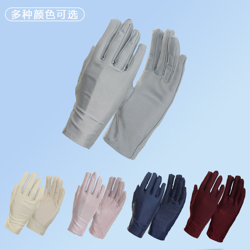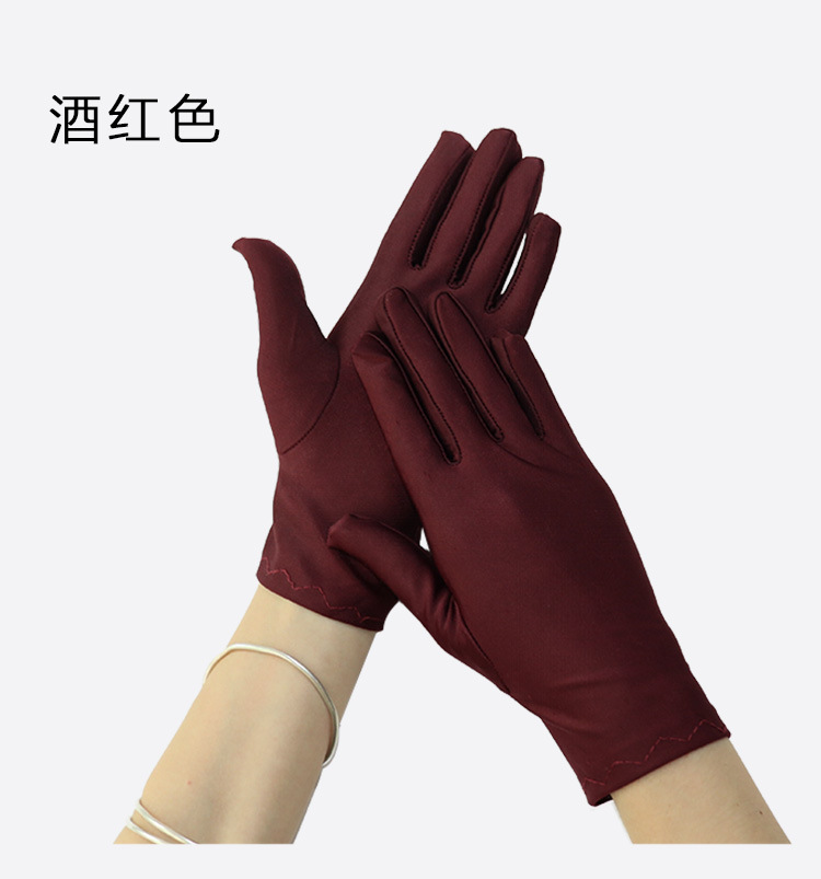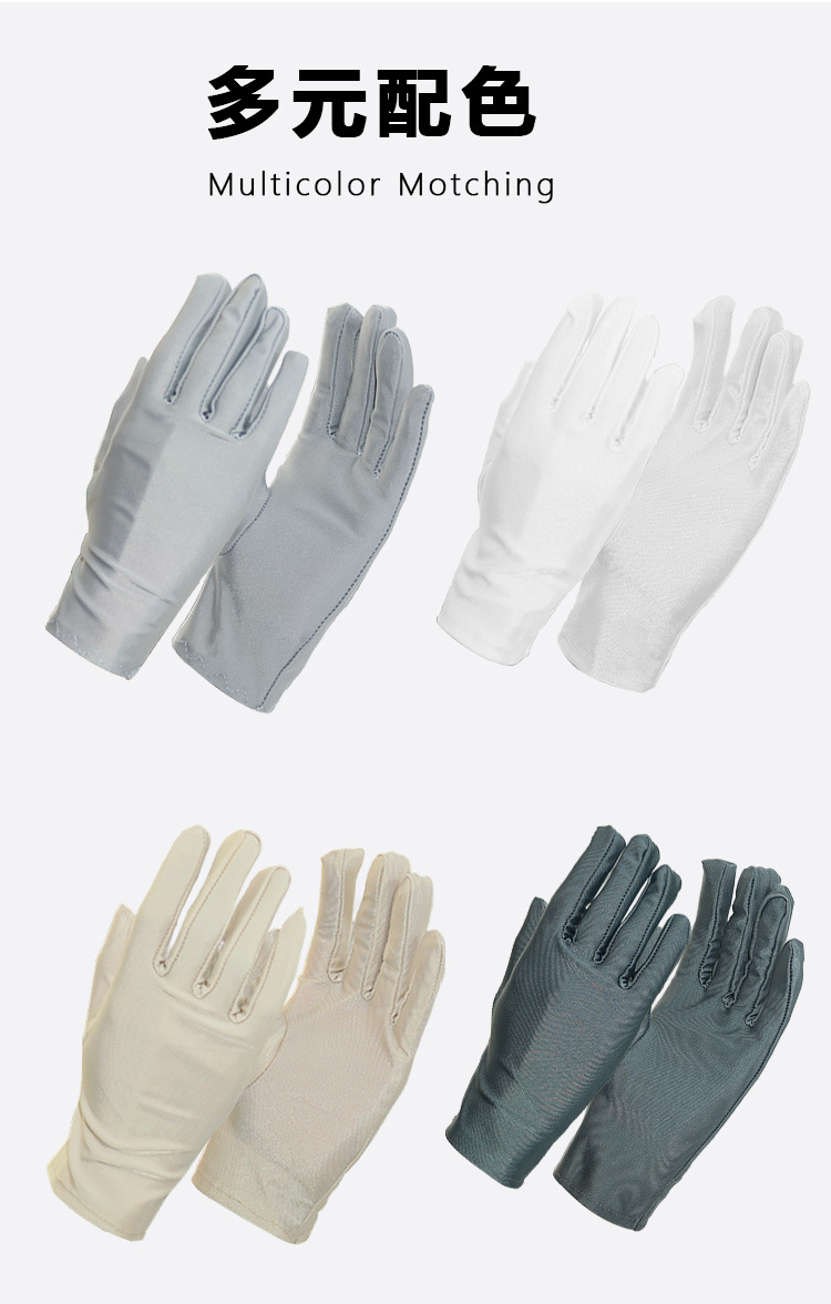 春夏季薄礼防晒男女士礼仪高弹珠宝舞蹈表演氨纶纯色短款手套批发
