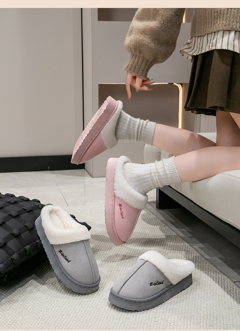 简约踩屎感棉拖鞋女秋冬季居家用舒适保暖耐磨外穿情侣月子托鞋男