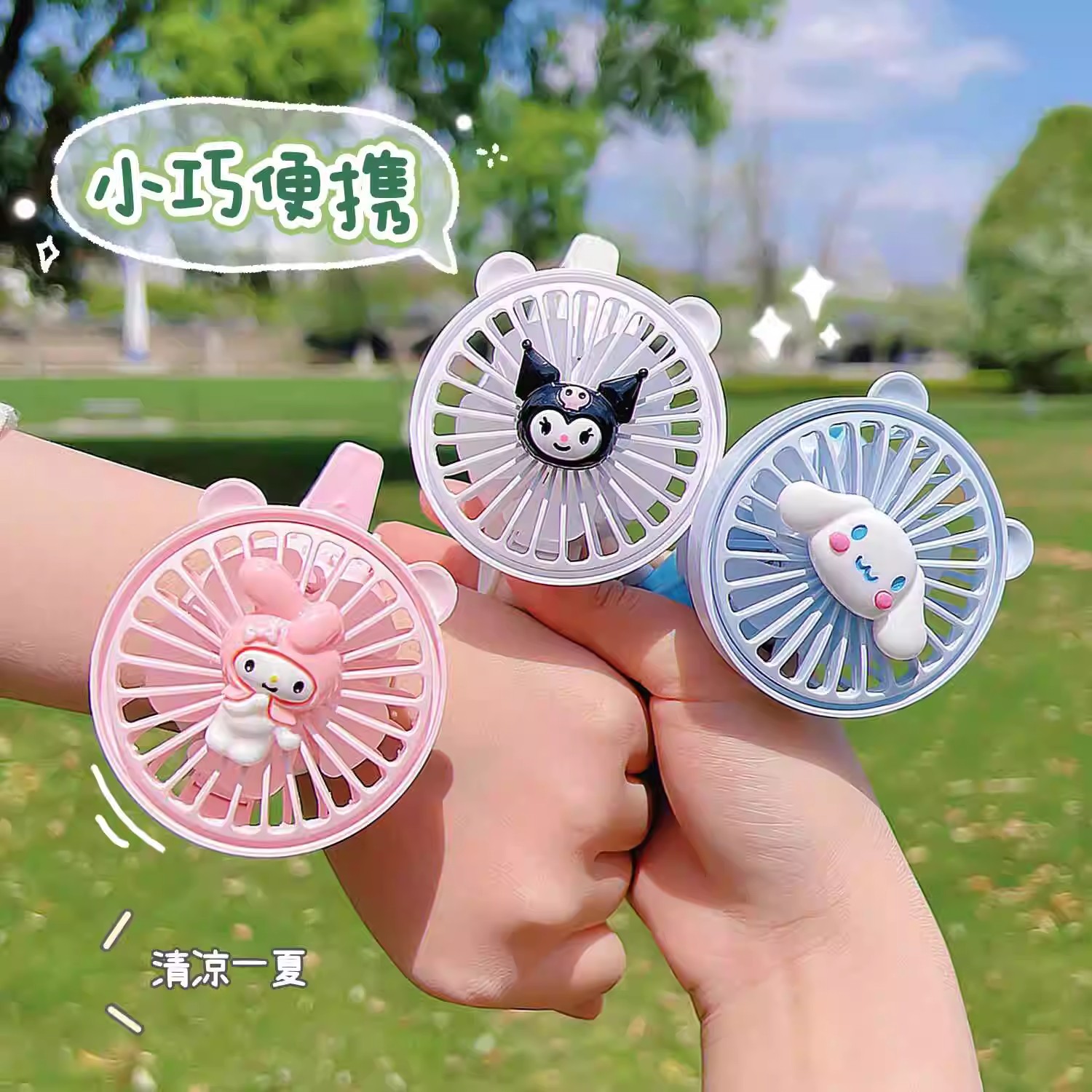 手表风扇学生儿童便携式网红可爱卡通三丽鸥大风力手腕式usb迷你