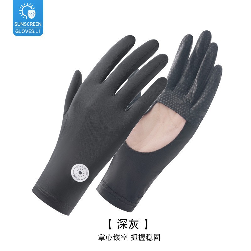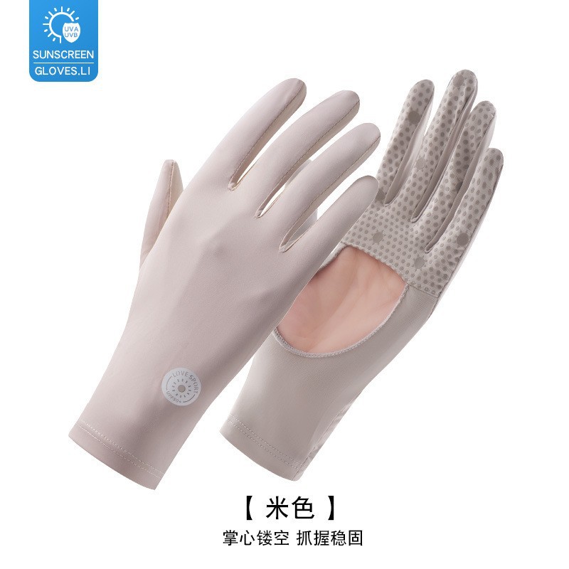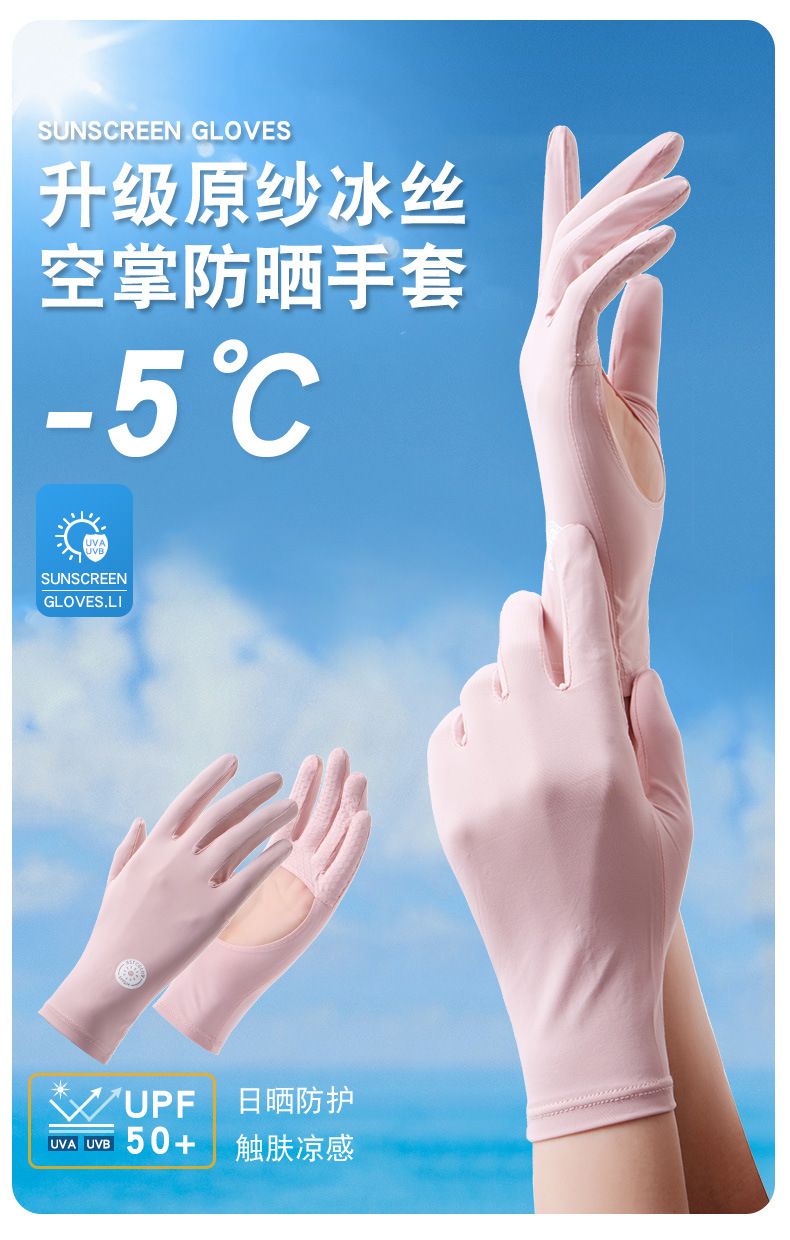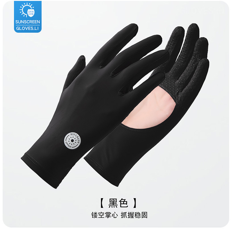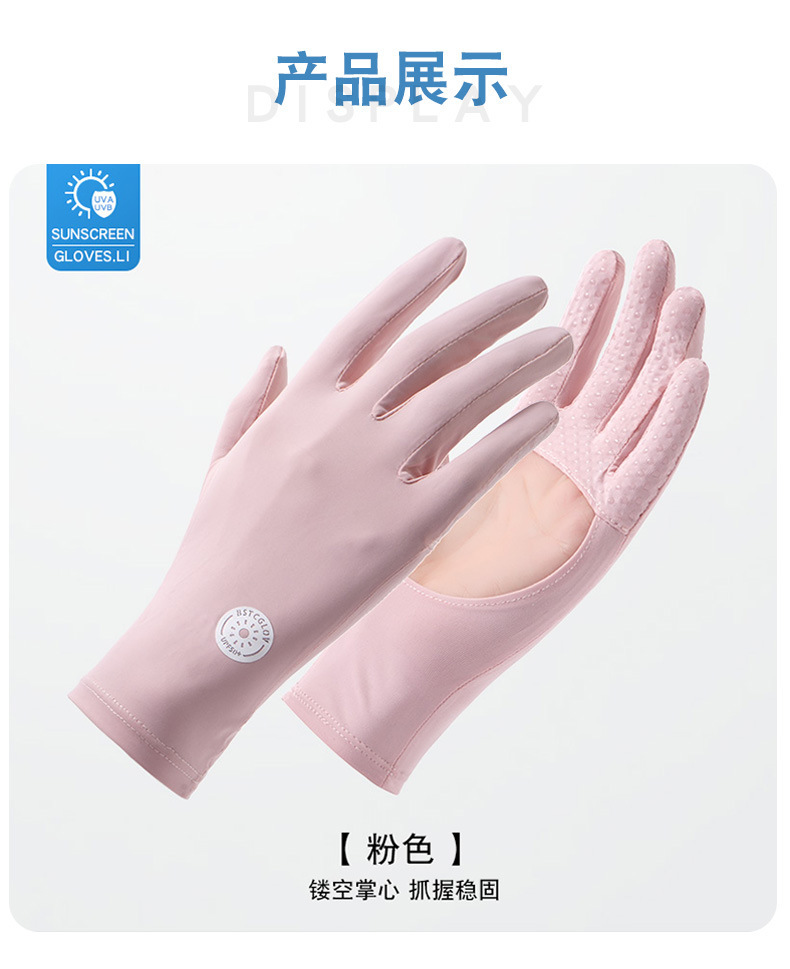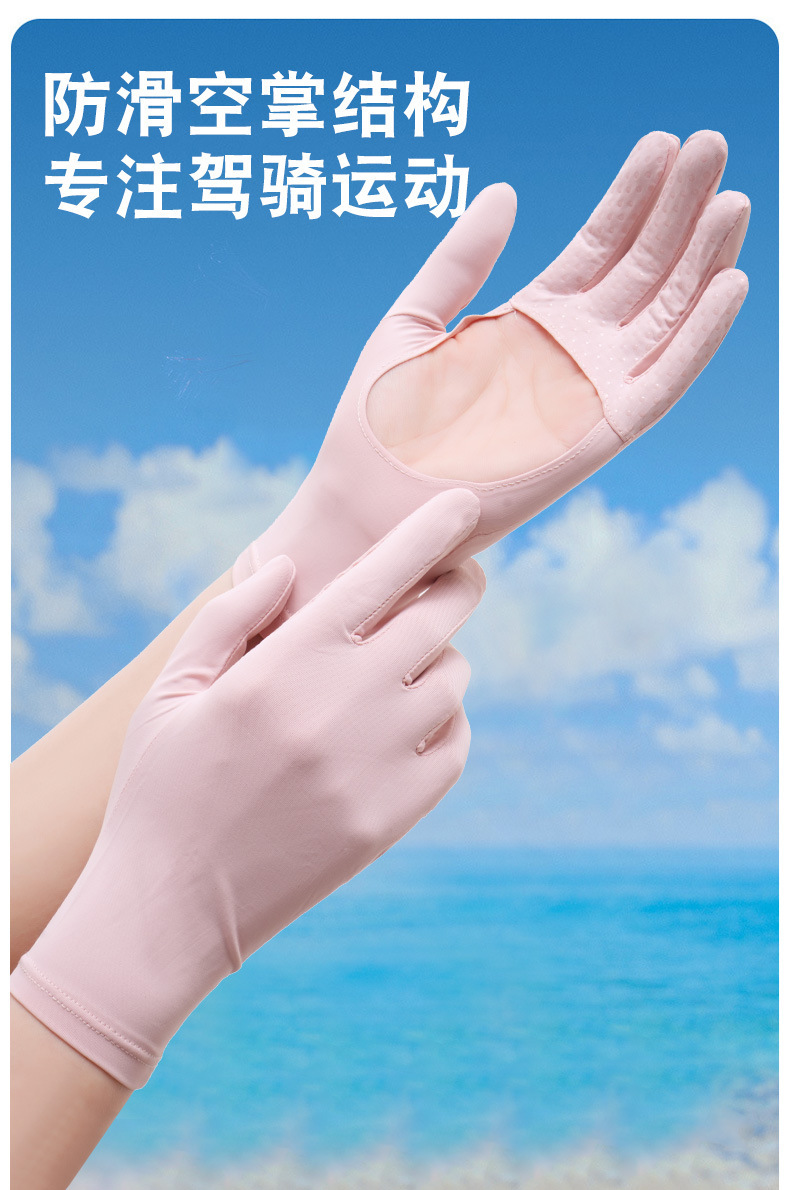 防晒手套女夏防紫外线镂空掌心透气防滑骑行开车露指触屏冰丝手套