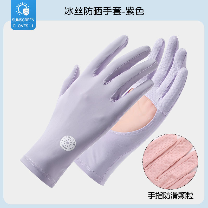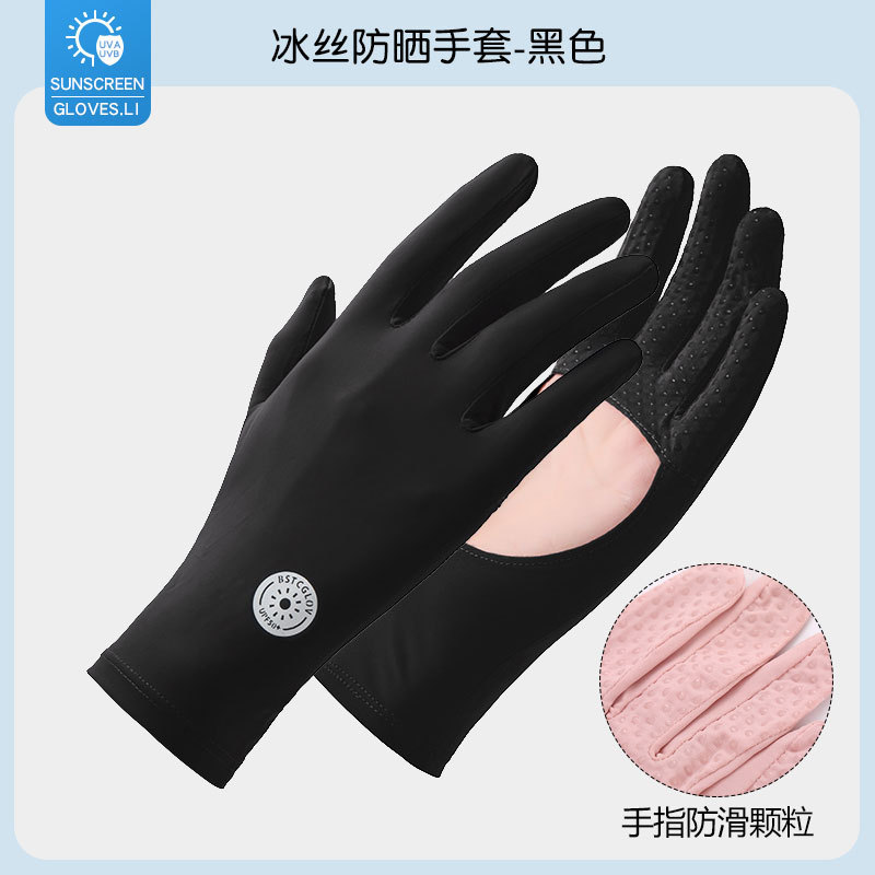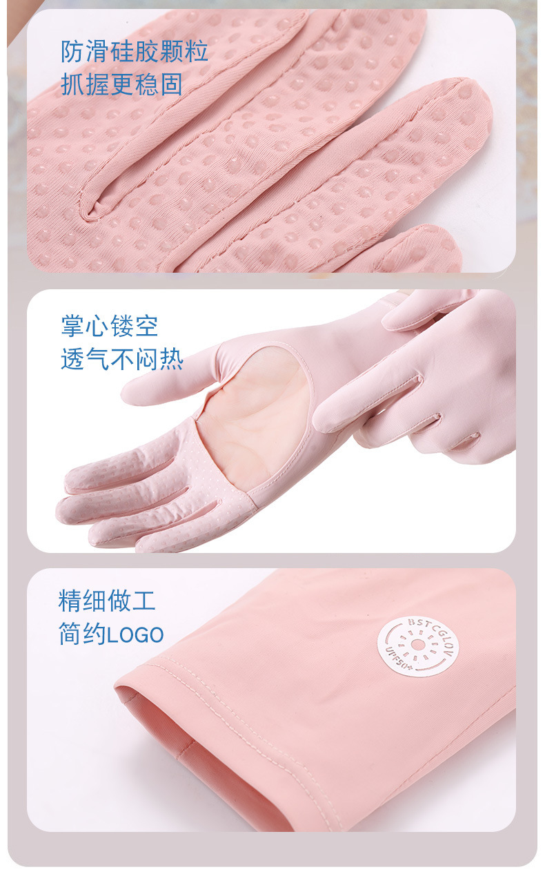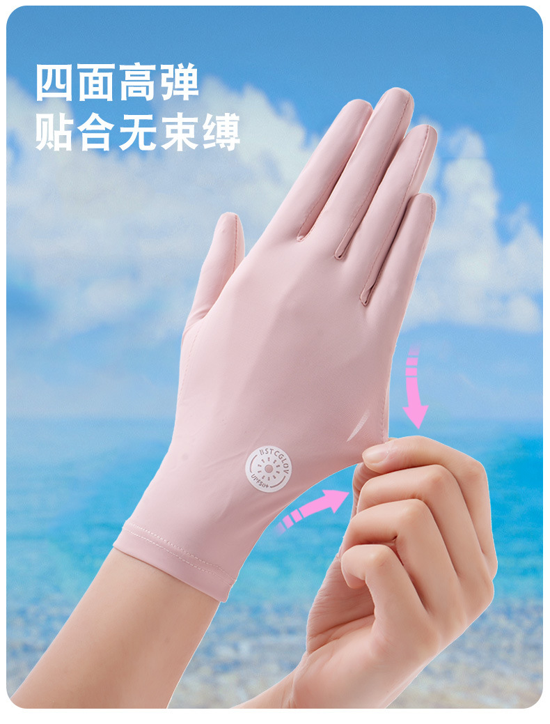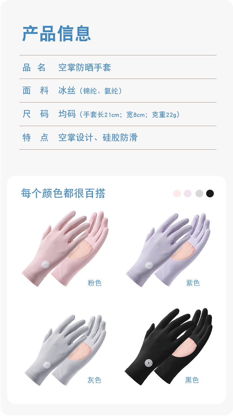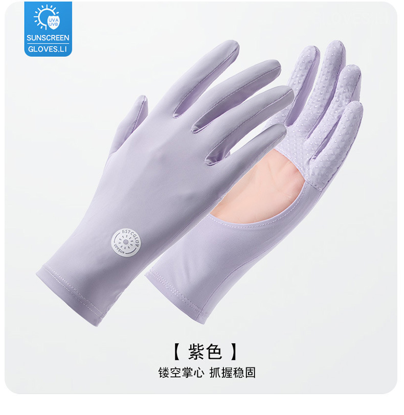 防晒手套女夏防紫外线镂空掌心透气防滑骑行开车露指触屏冰丝手套