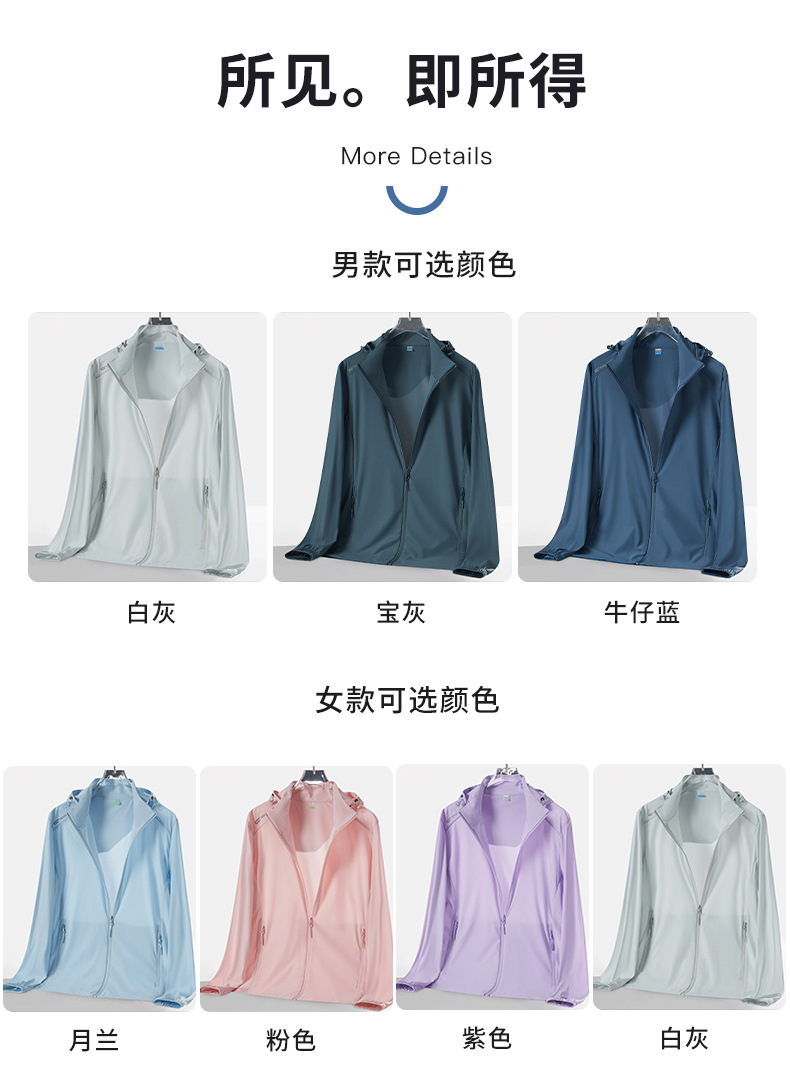 2025新款UPF50+凉爽透气夏季宽松轻薄款透气连帽休闲防晒服纯色