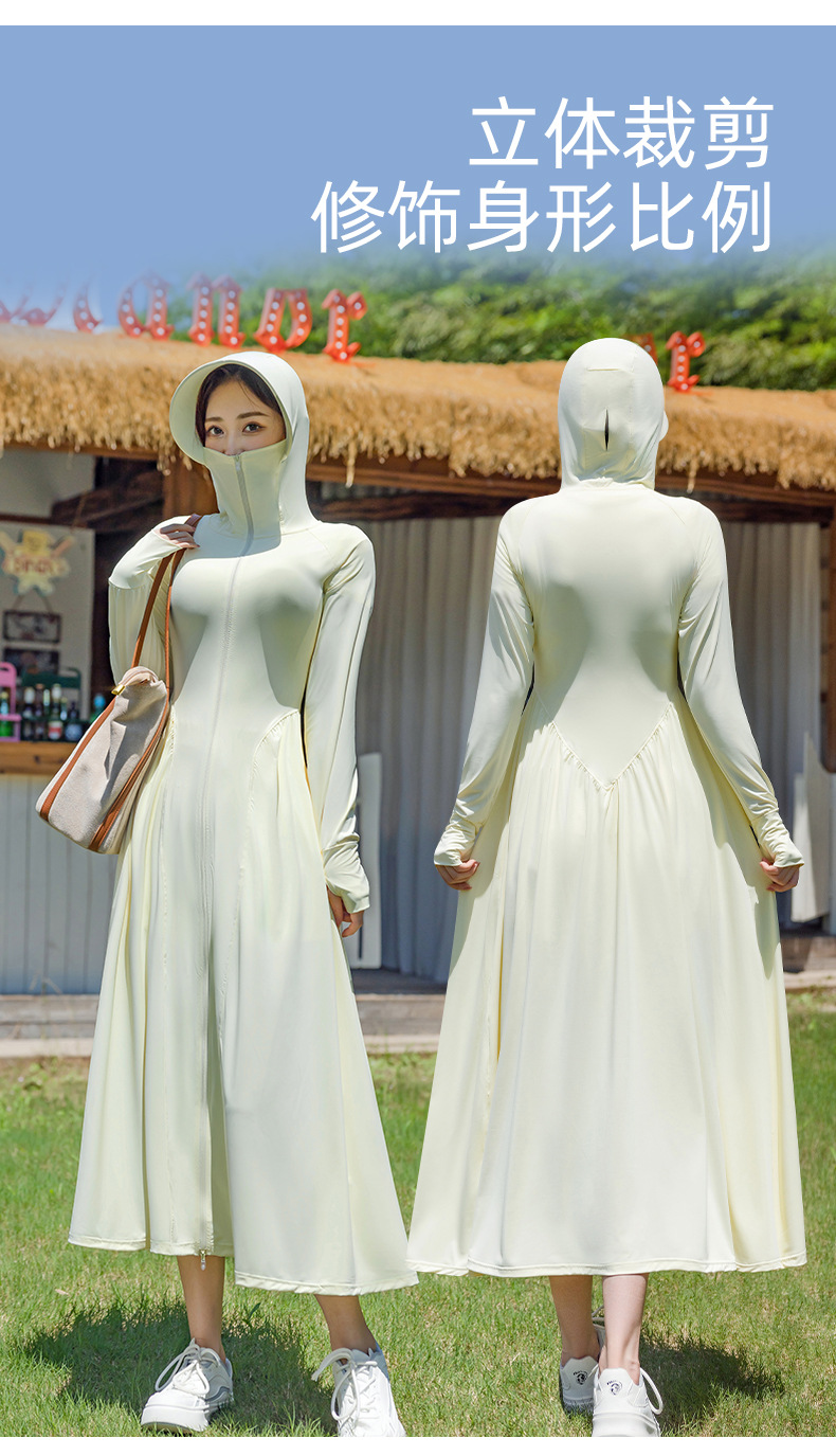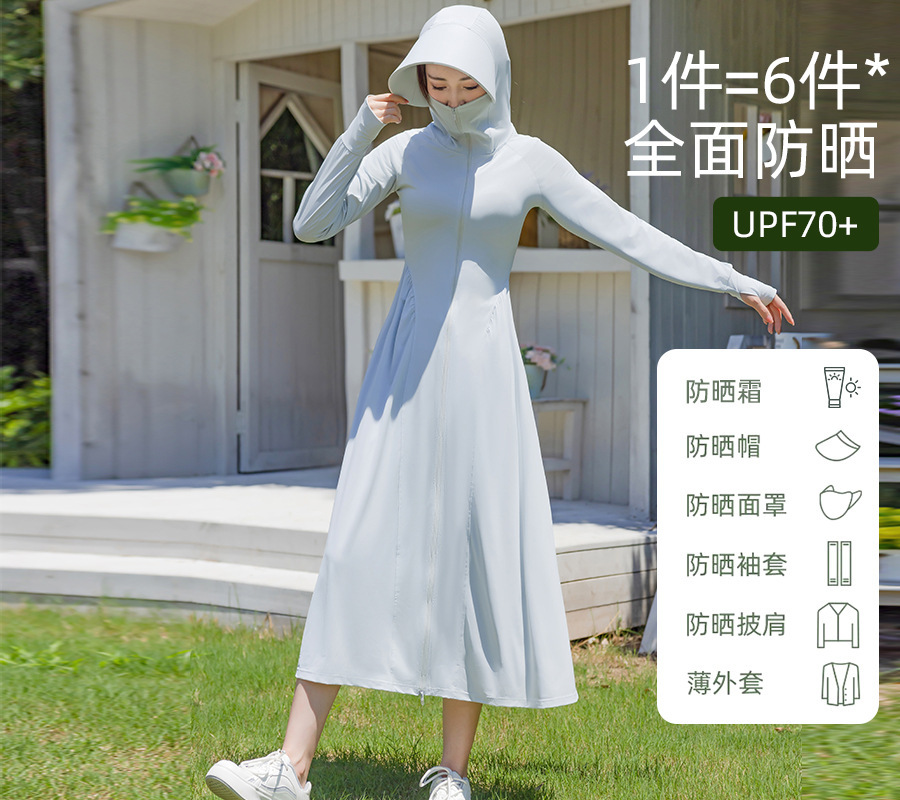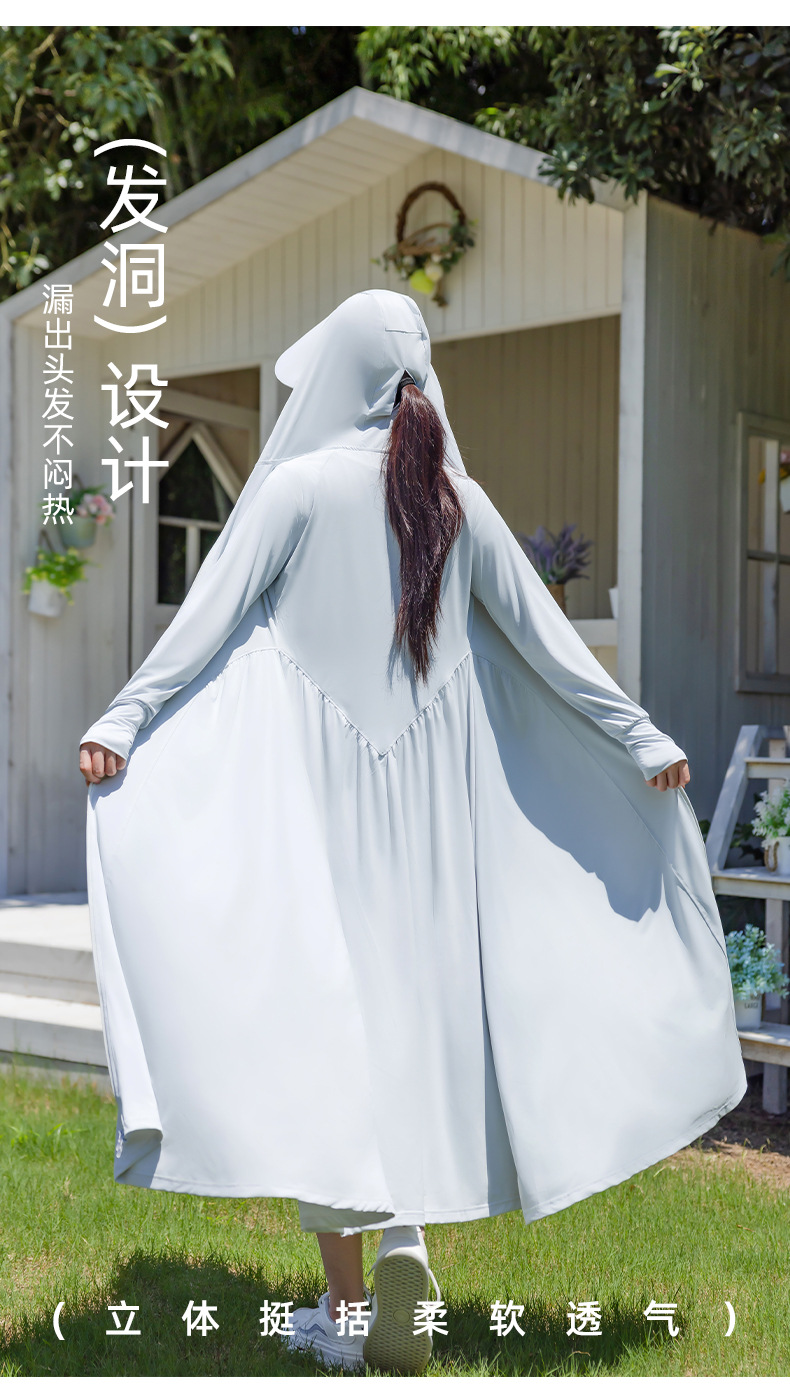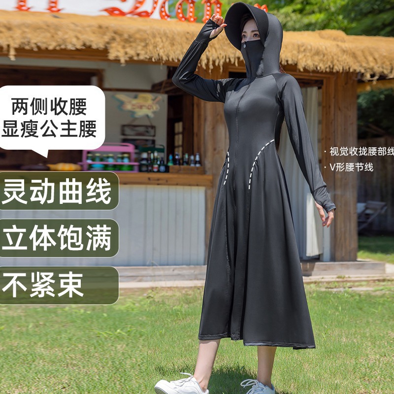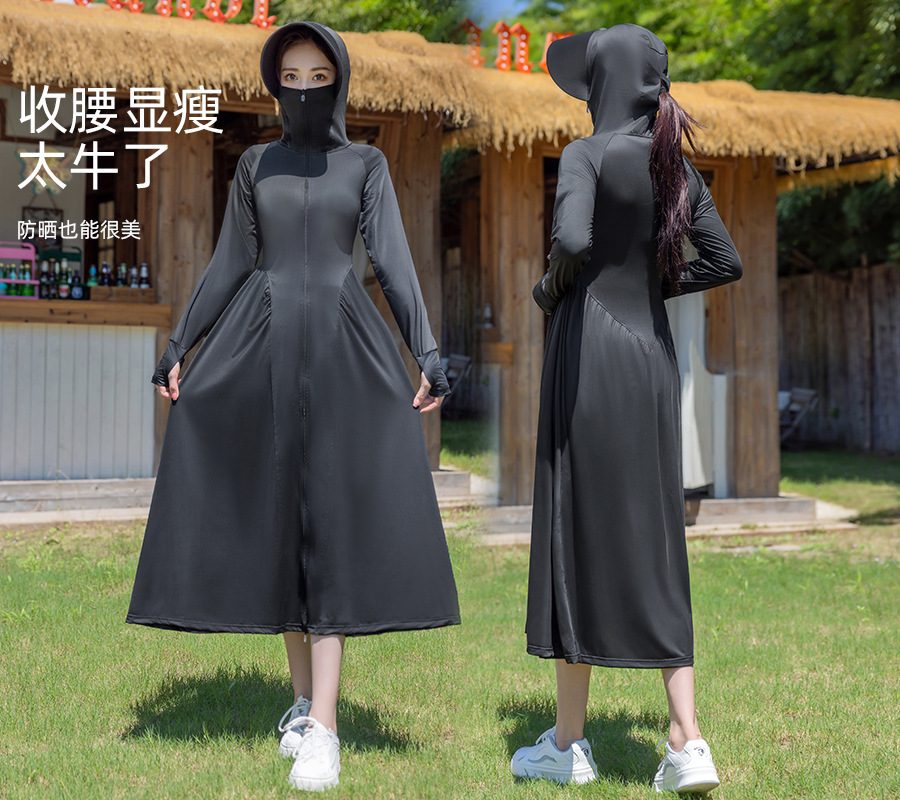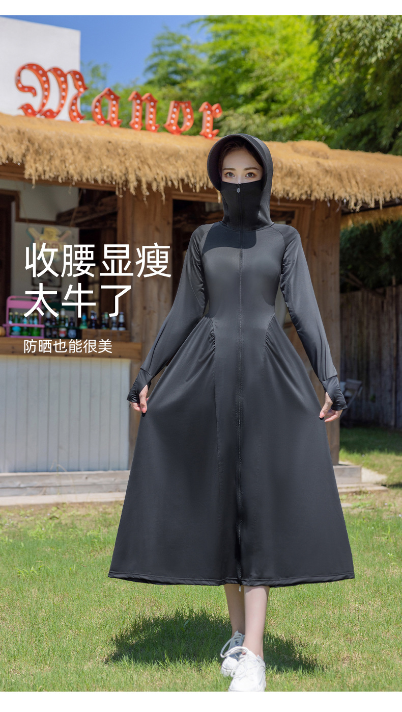 锦纶防晒衣长款女中长款全身电动车防紫外线UPF50+收腰防晒服批发