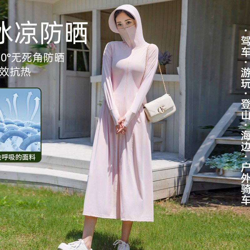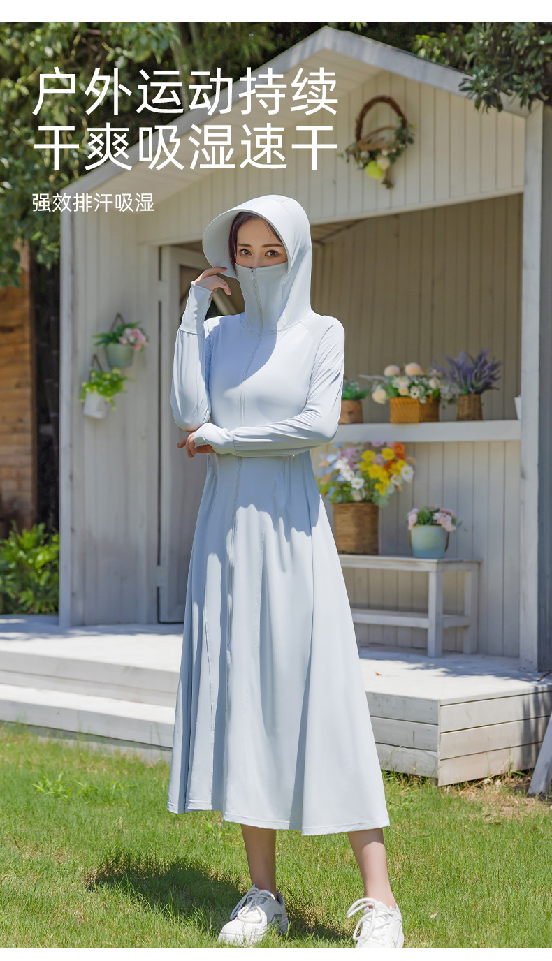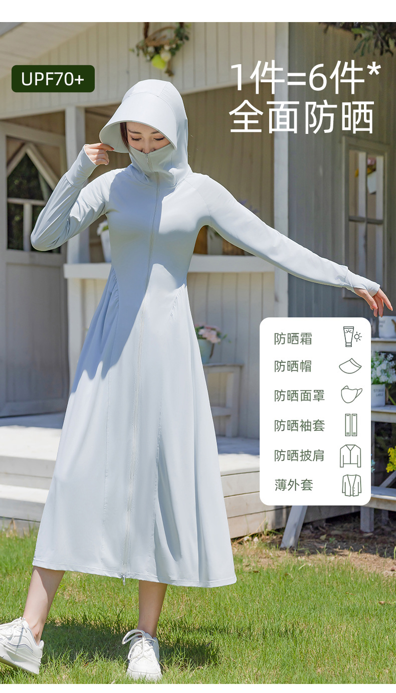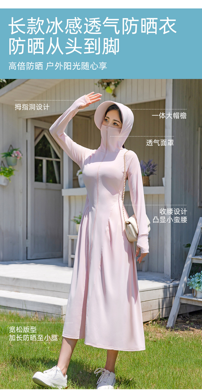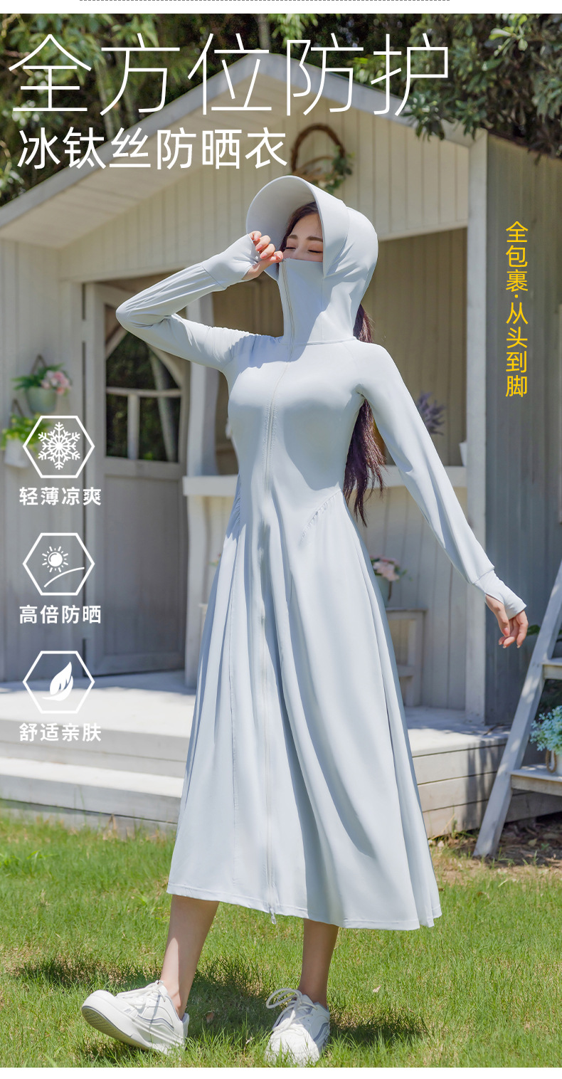锦纶防晒衣长款女中长款全身电动车防紫外线UPF50+收腰防晒服批发