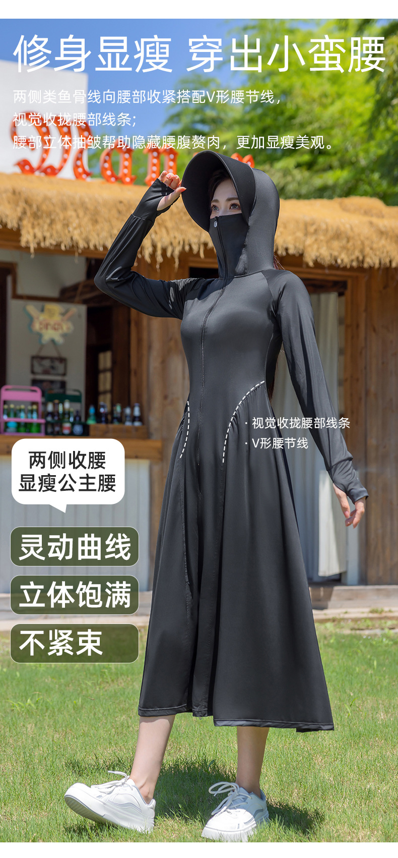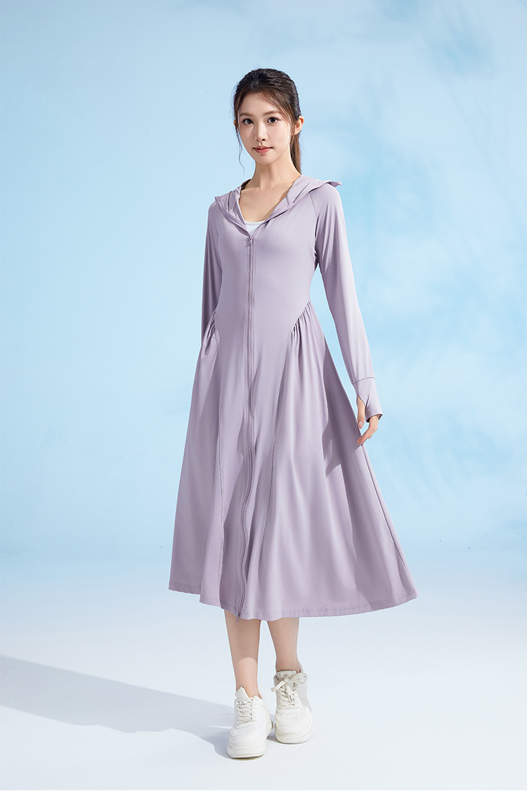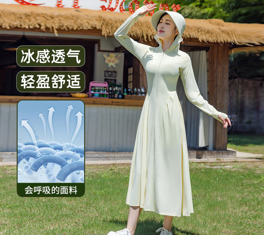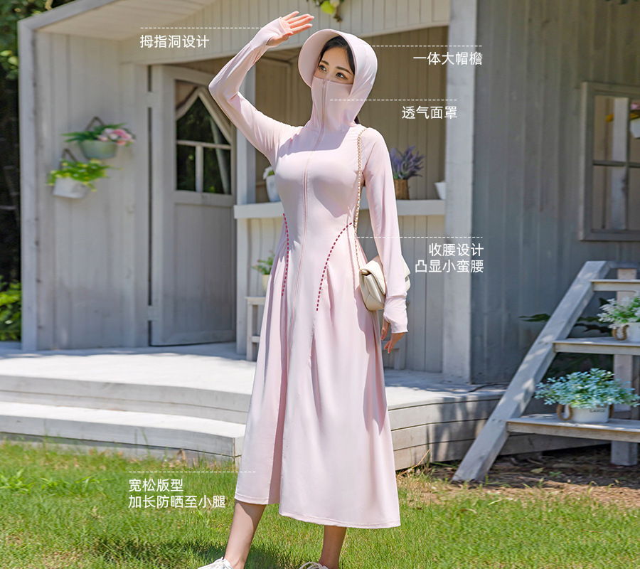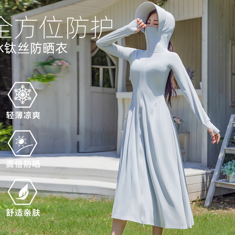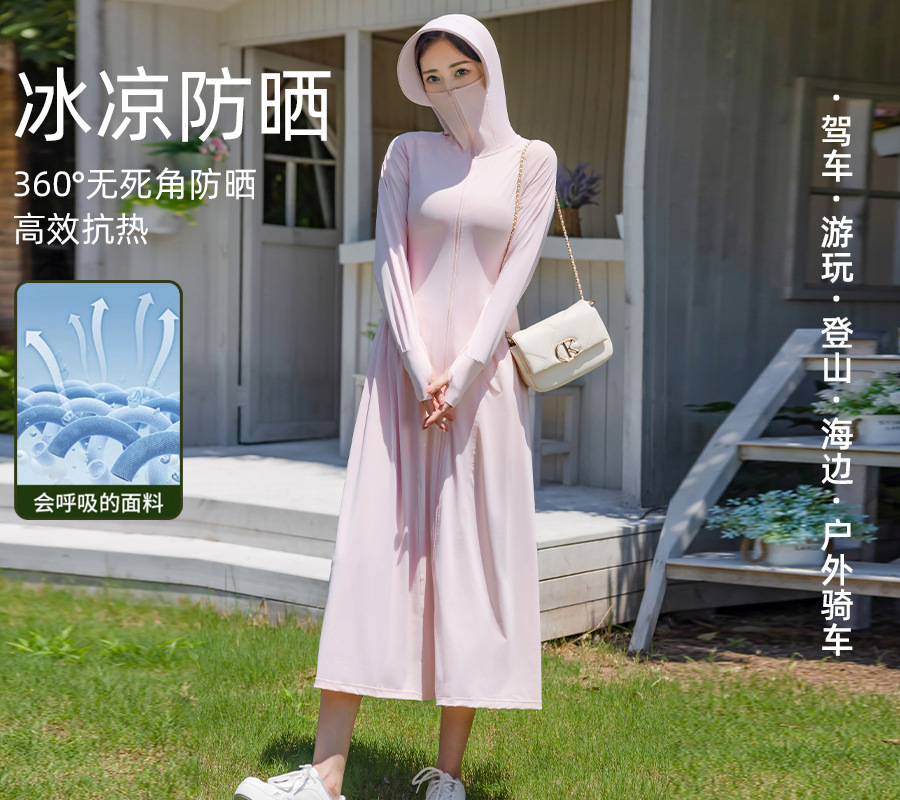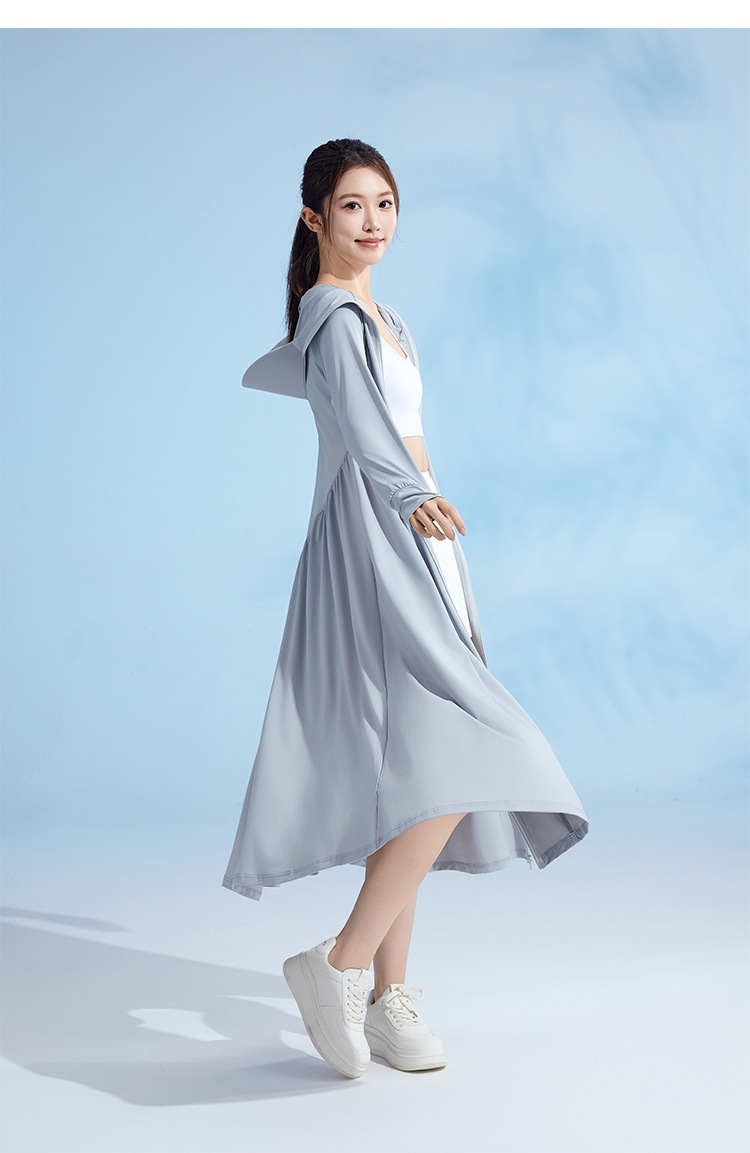 锦纶防晒衣长款女中长款全身电动车防紫外线UPF50+收腰防晒服批发