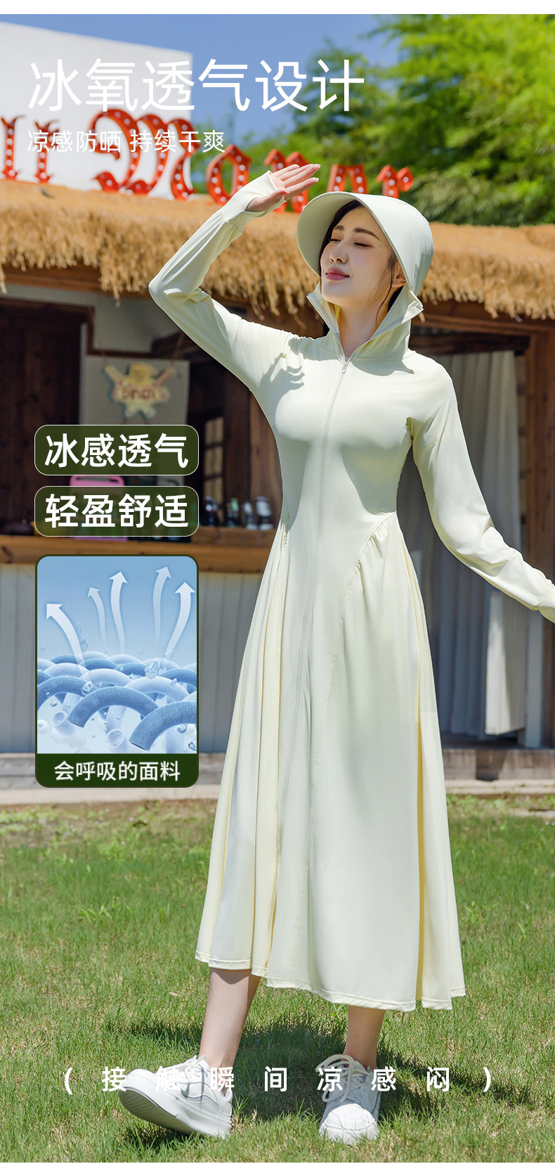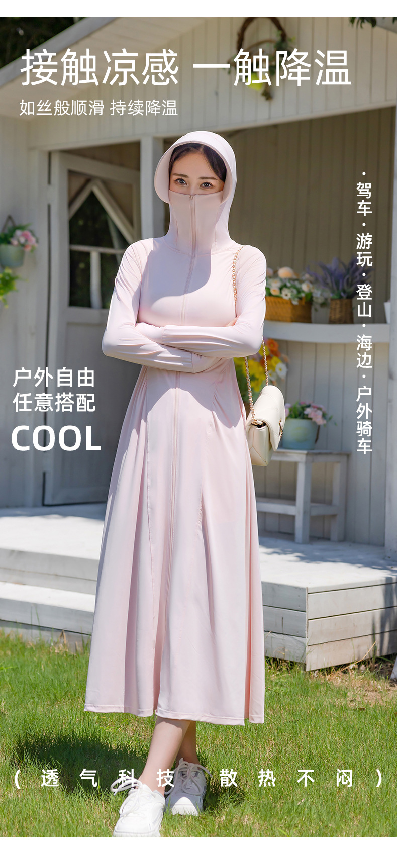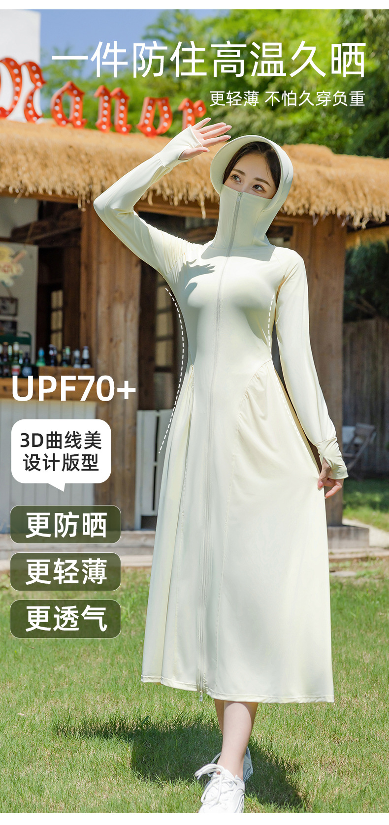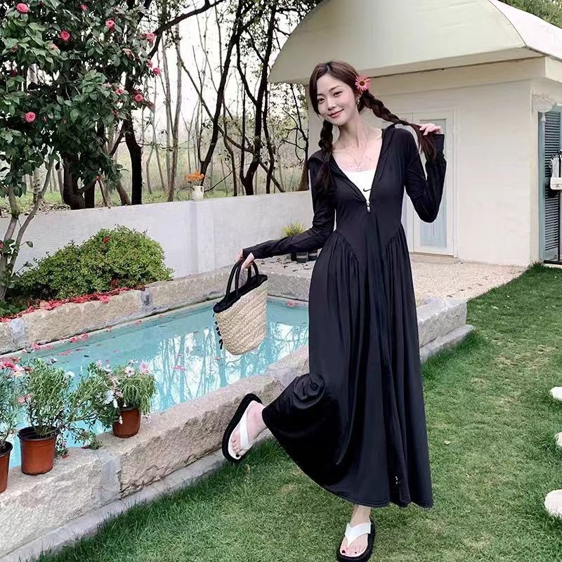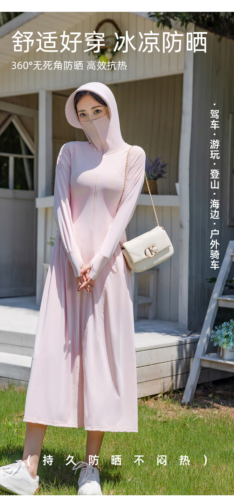 锦纶防晒衣长款女中长款全身电动车防紫外线UPF50+收腰防晒服批发