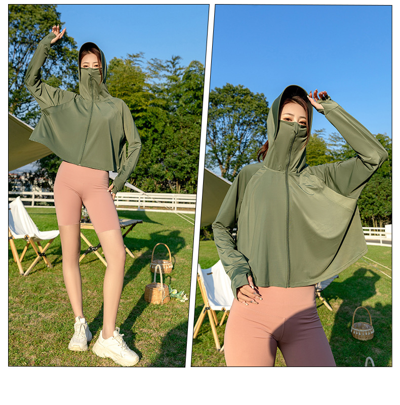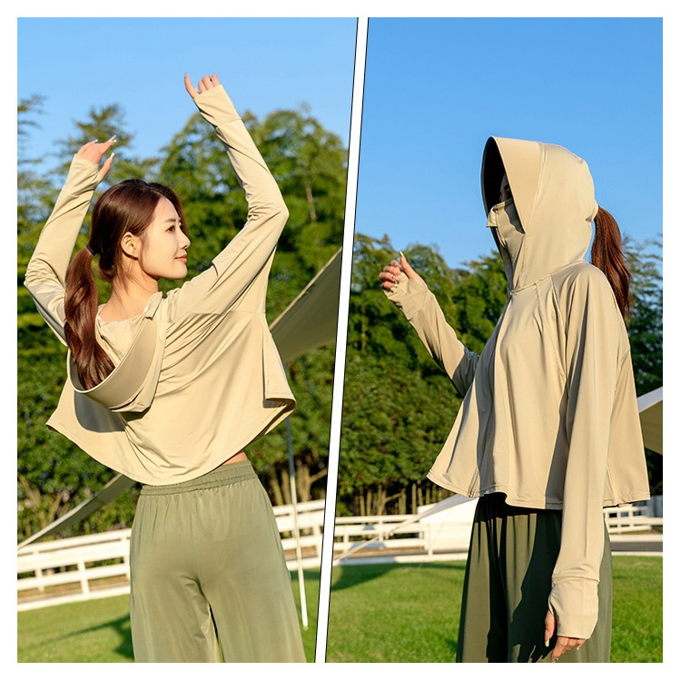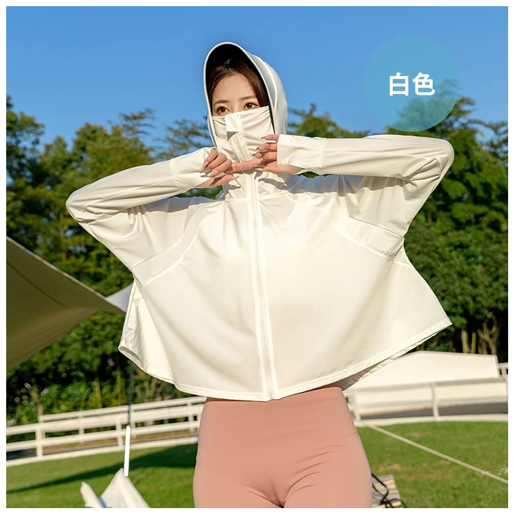 黑胶防晒衣2024夏季新款冰丝防紫外线防晒服斗篷款女士骑行防晒衫