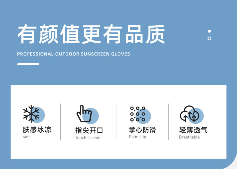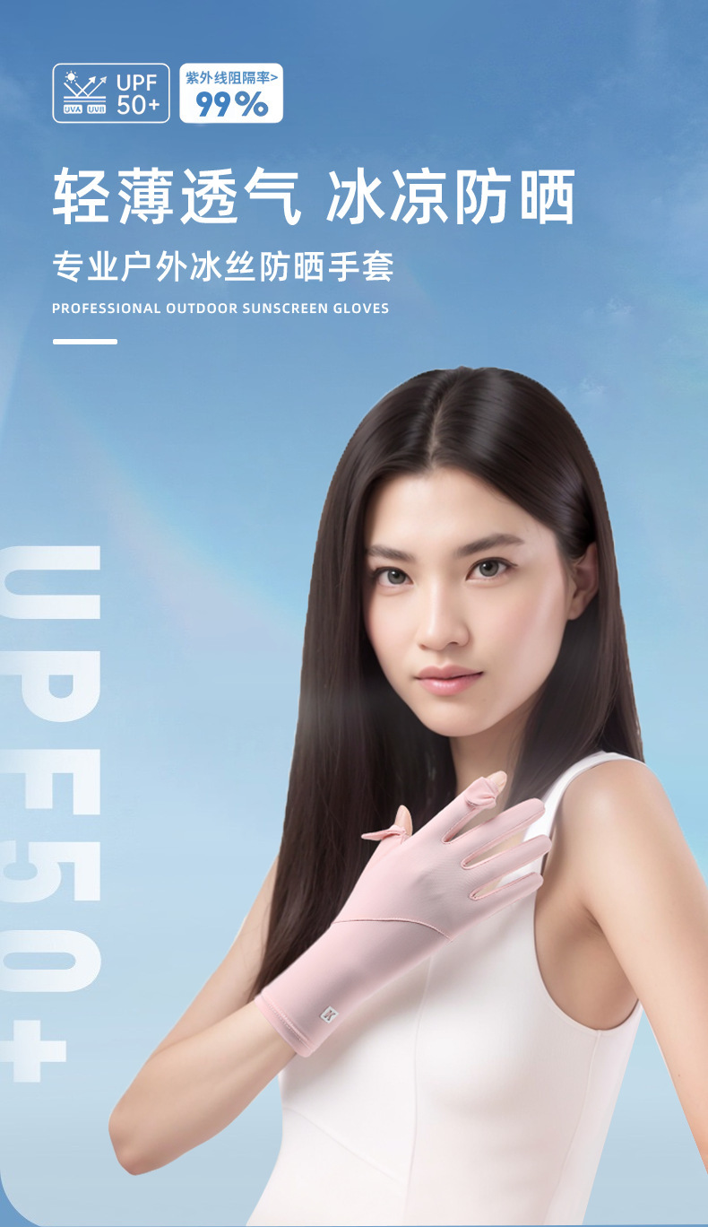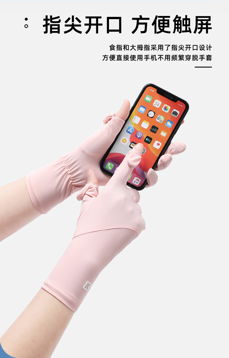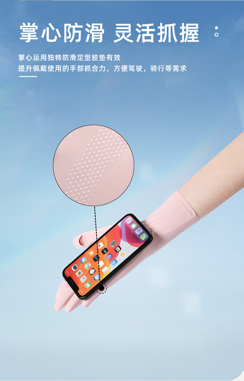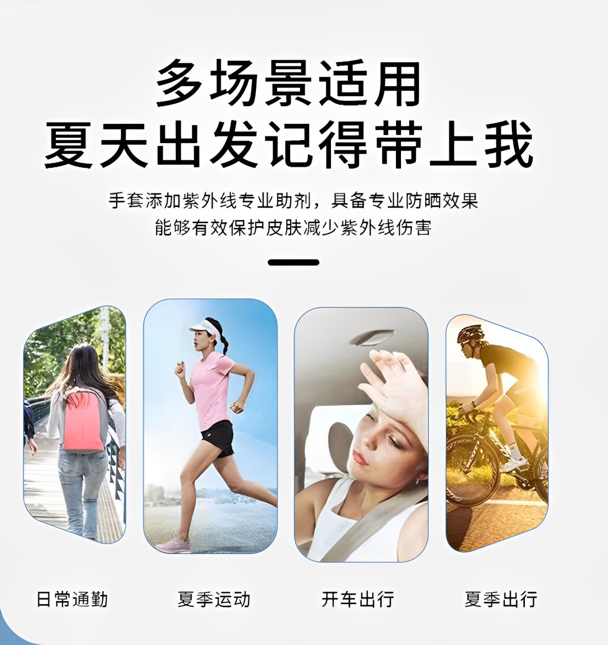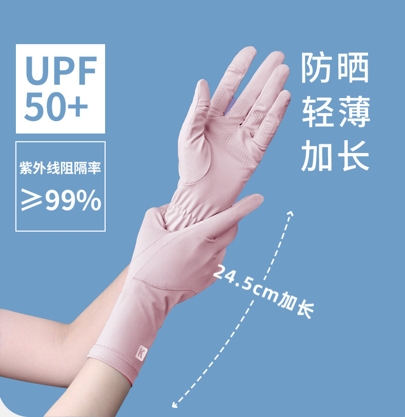 新款加长冰丝凉感防晒手套薄款夏季可触屏电瓶车防滑骑行手套批发