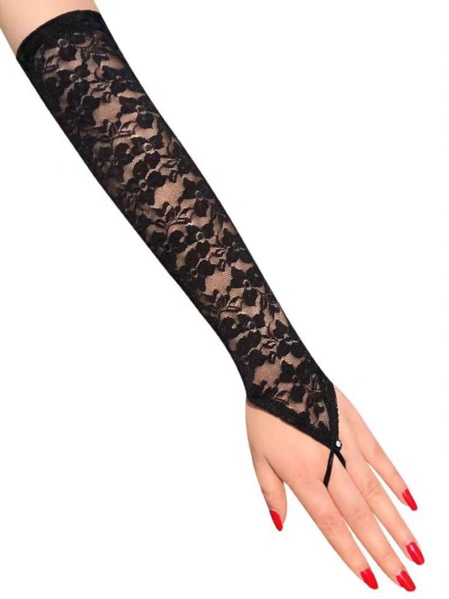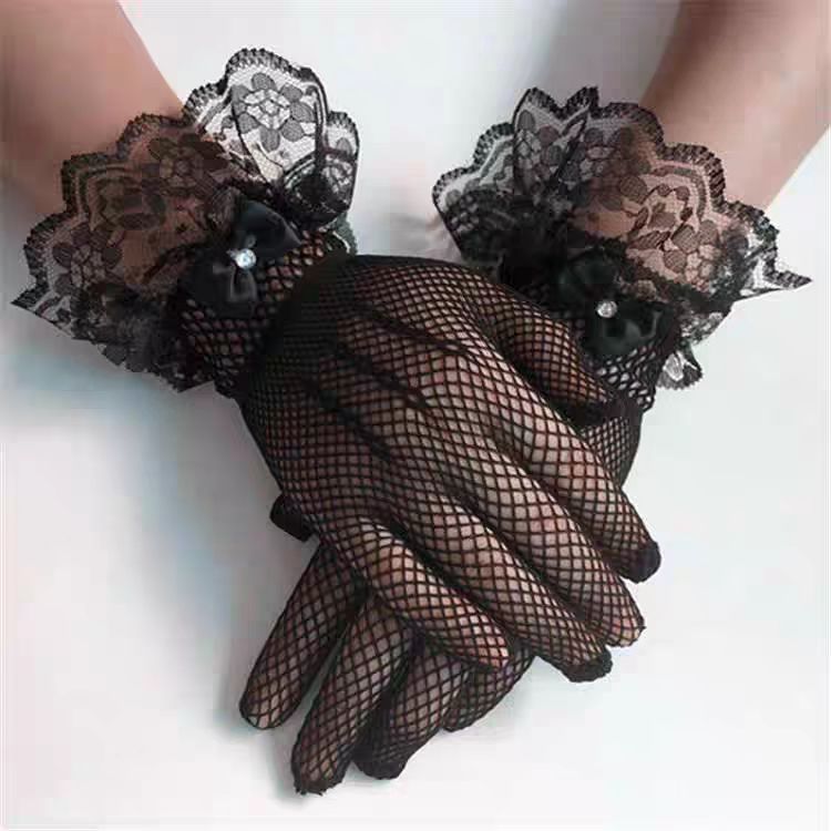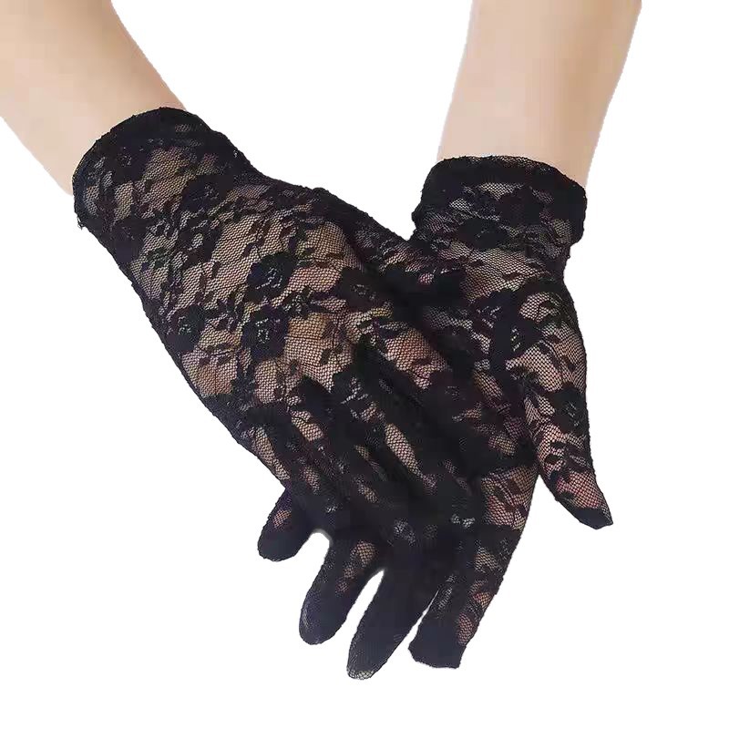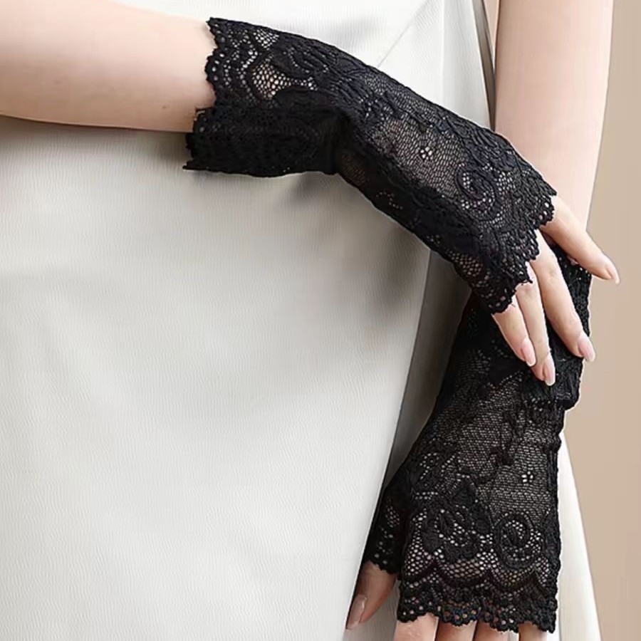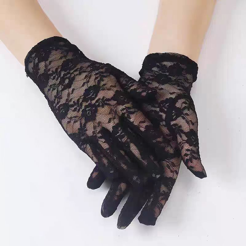 夏季防晒手套 女士蕾丝花边防紫外线开车女短款新娘婚礼黑白手套