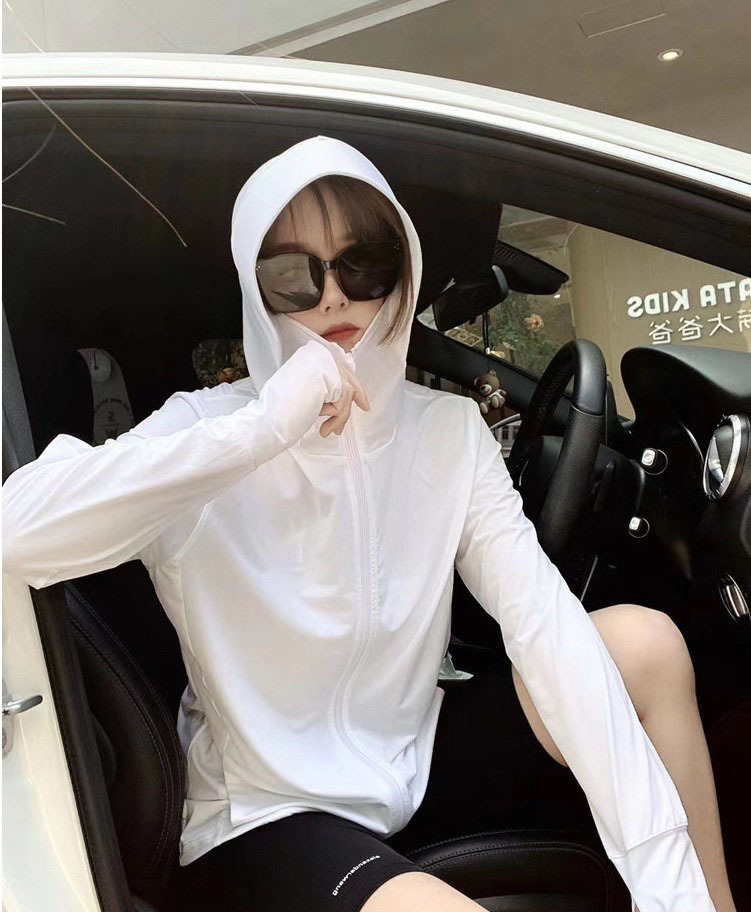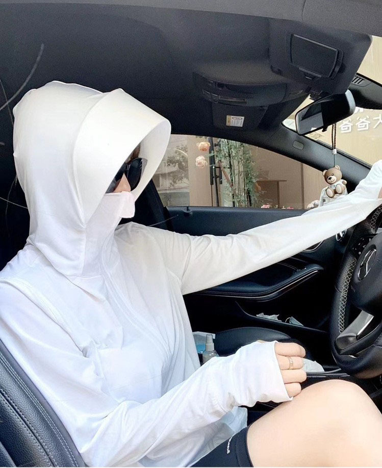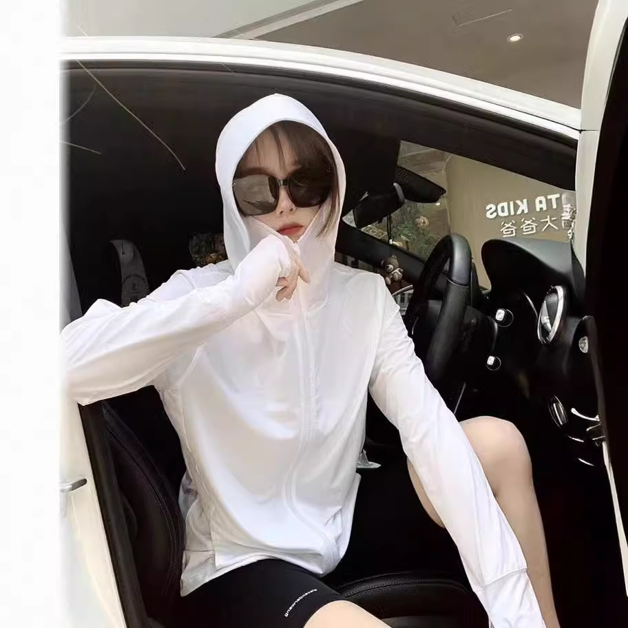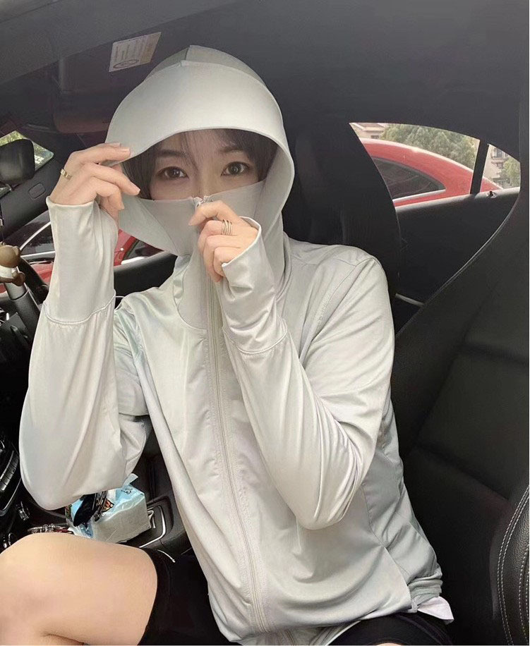 防晒衫女连帽蒙脸防紫外线兔冰丝防晒衣夹克衫子大帽檐遮脸遮阳