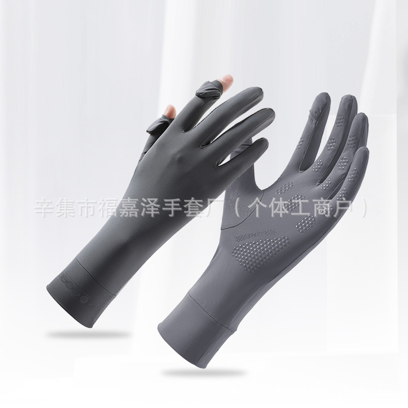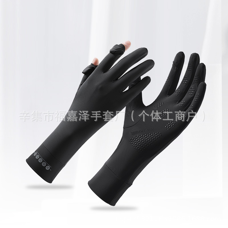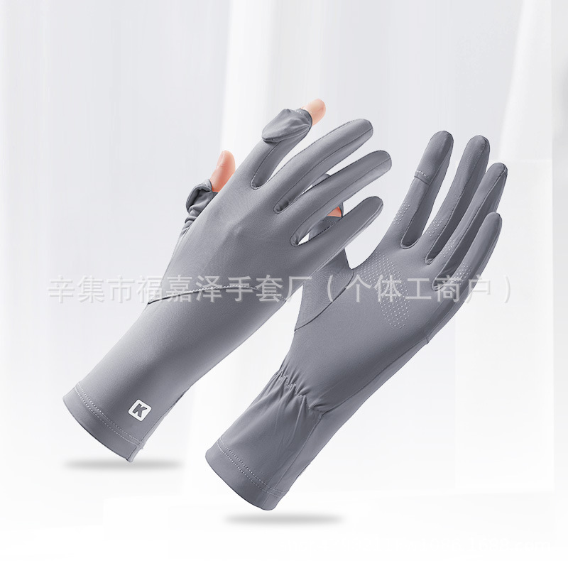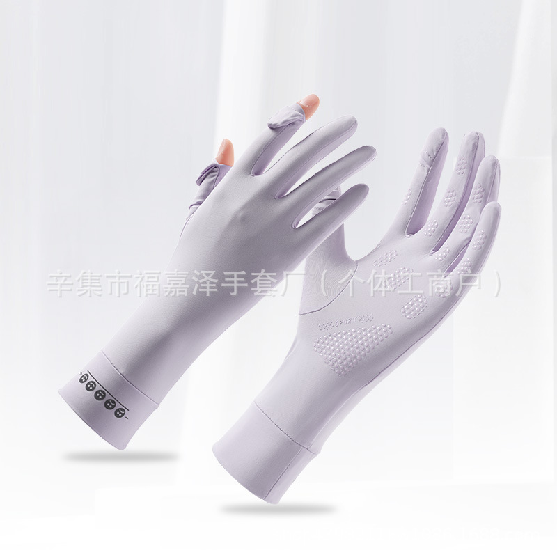 跨境新款防晒手套翻盖手套防磨笑脸冰丝手套凉感薄款夏季女款手套