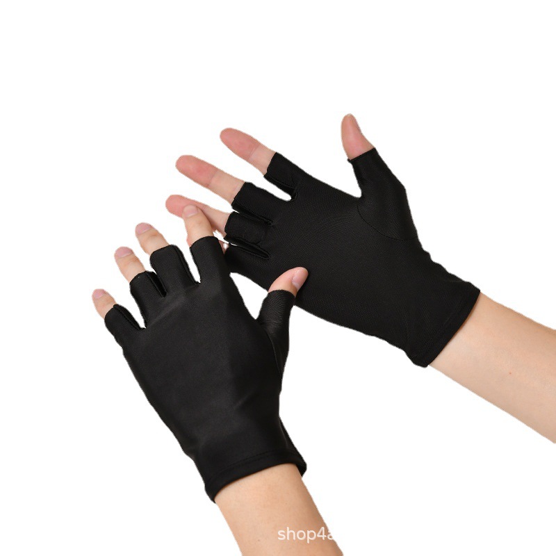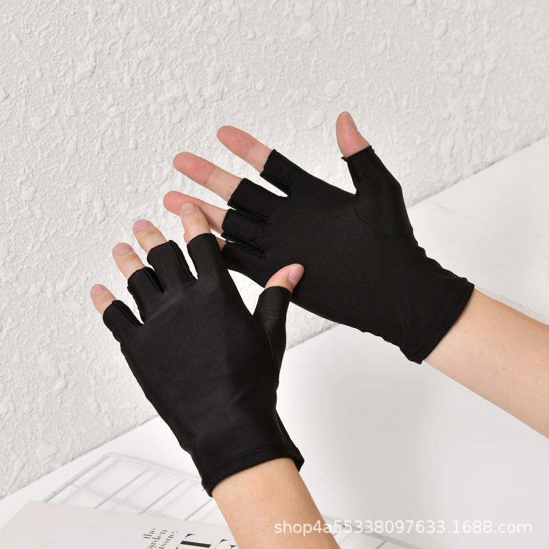美甲专用半指手套男女弹力薄款冰丝防晒开车骑行美容手套短款手套