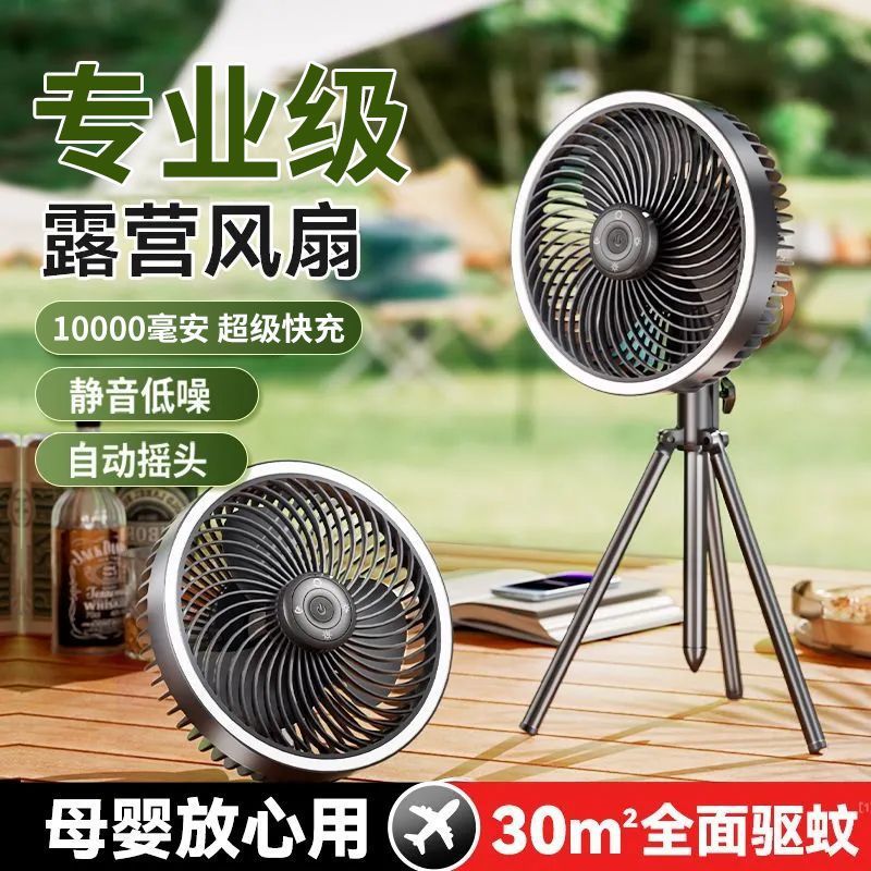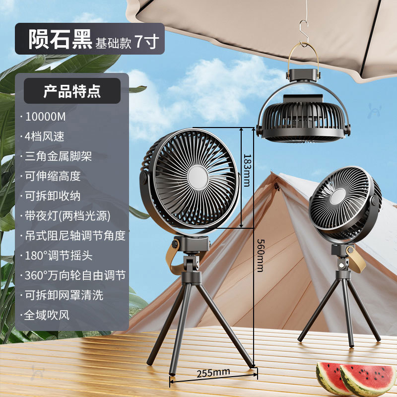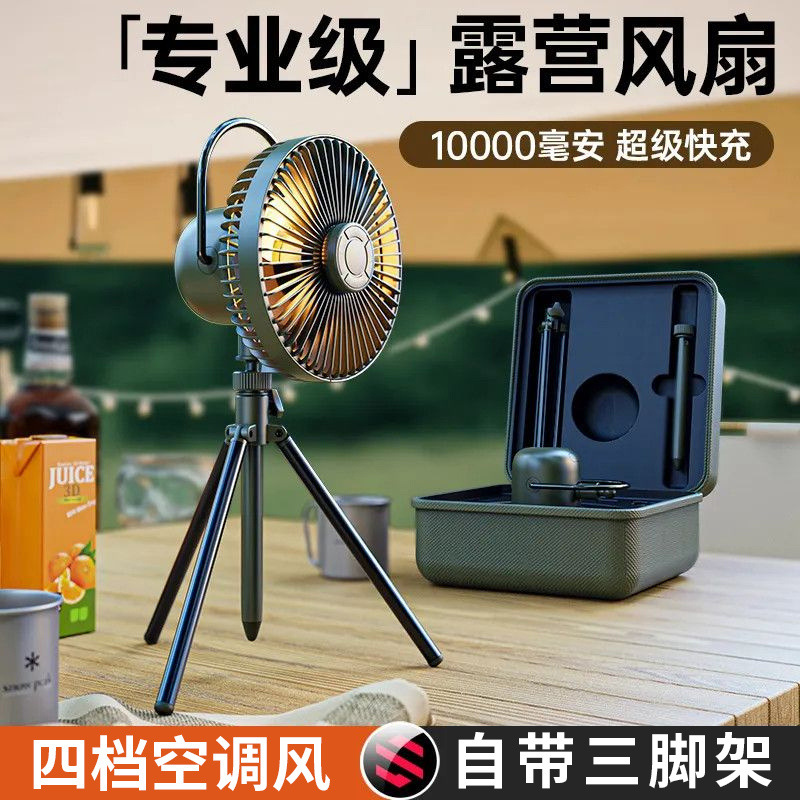 户外露营风扇随身携带野营usb充电吊扇桌面升降桌上小型夜灯跨境