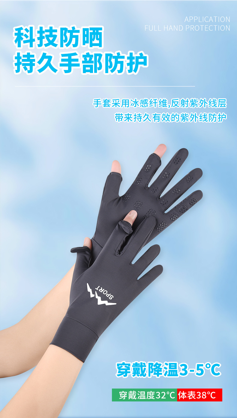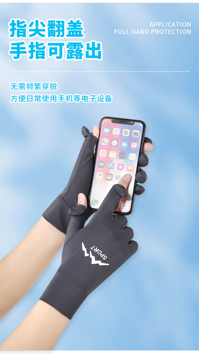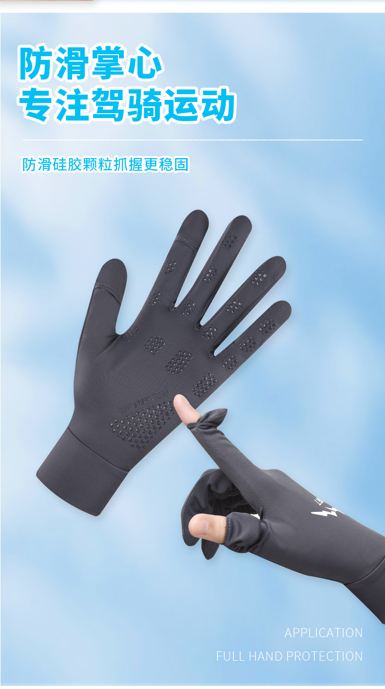 防晒手套女冰丝薄款防紫外线夏季电动车防滑可触屏女骑行手套批发